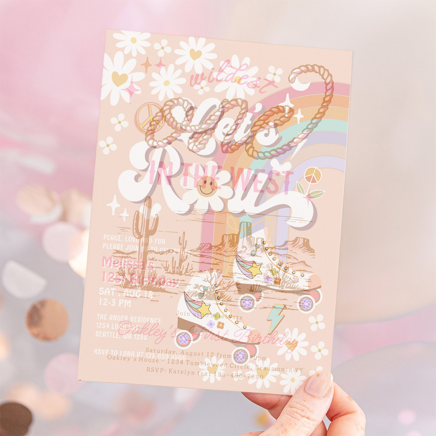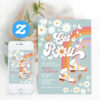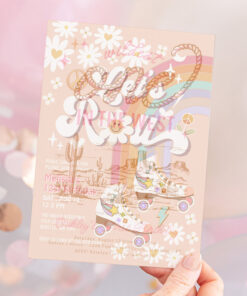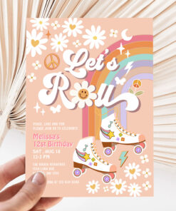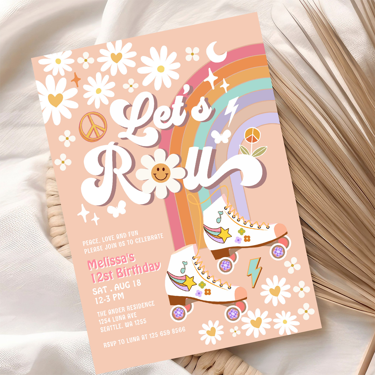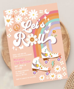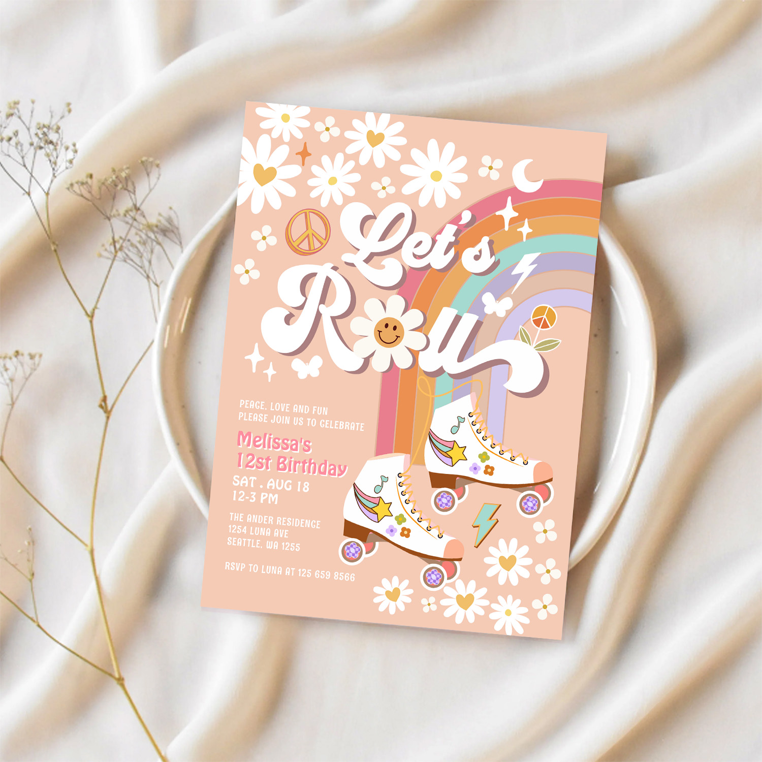 Lets Roll Retro Groovy Roller Skate Daisy Birthday Invitation - Related products