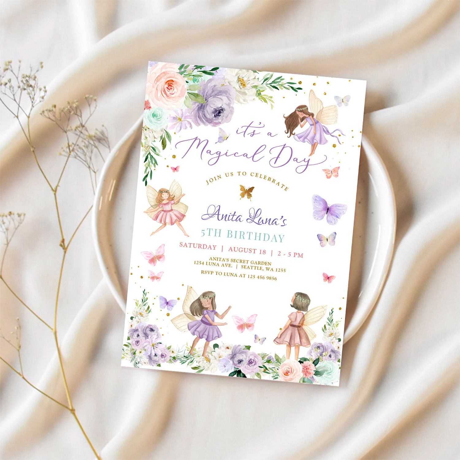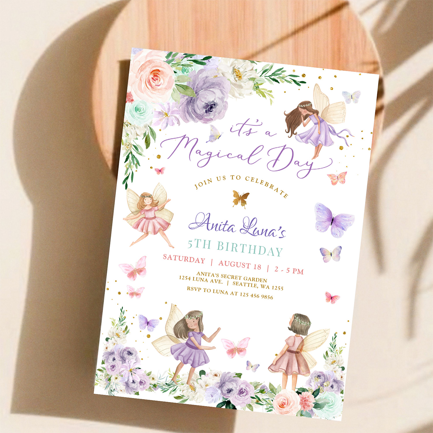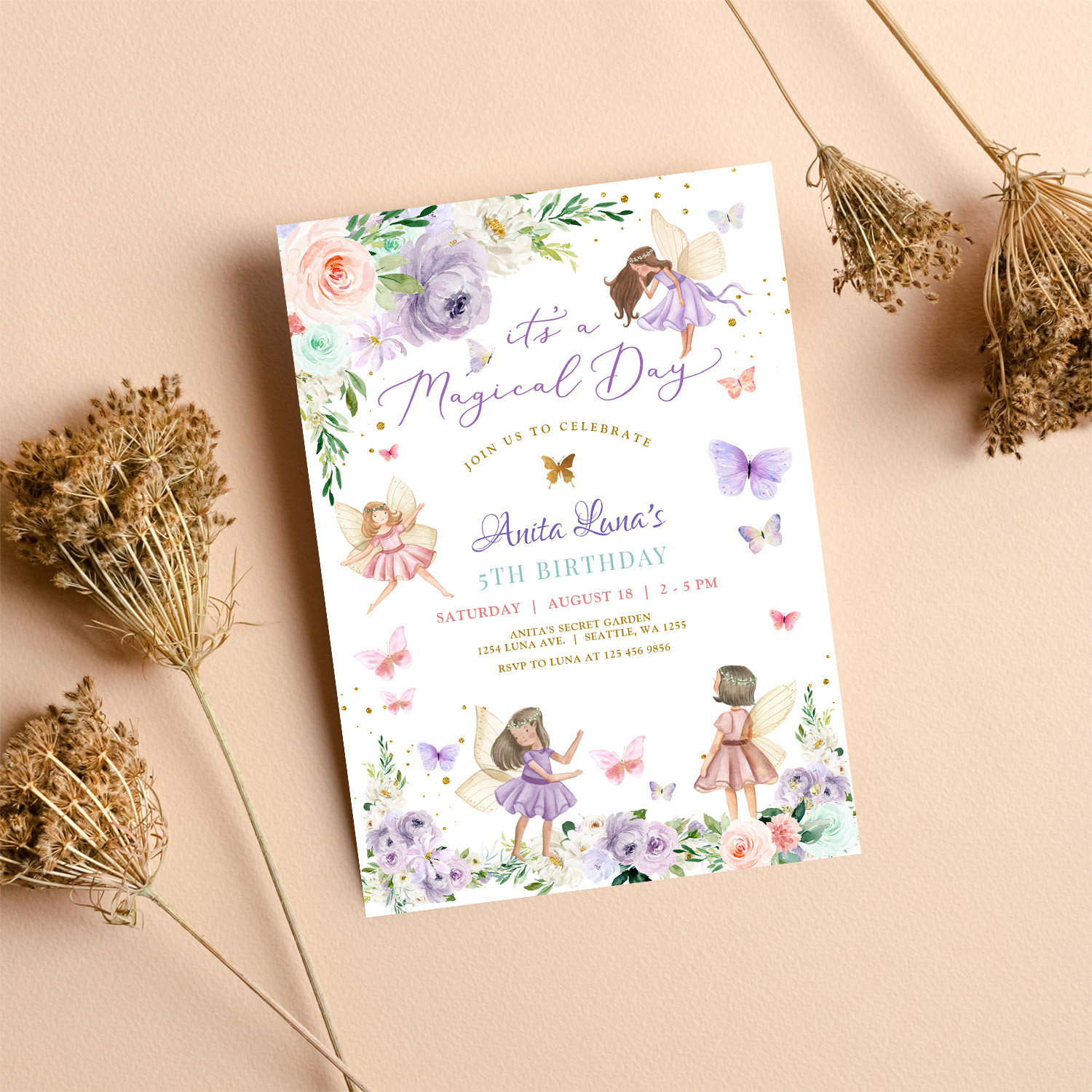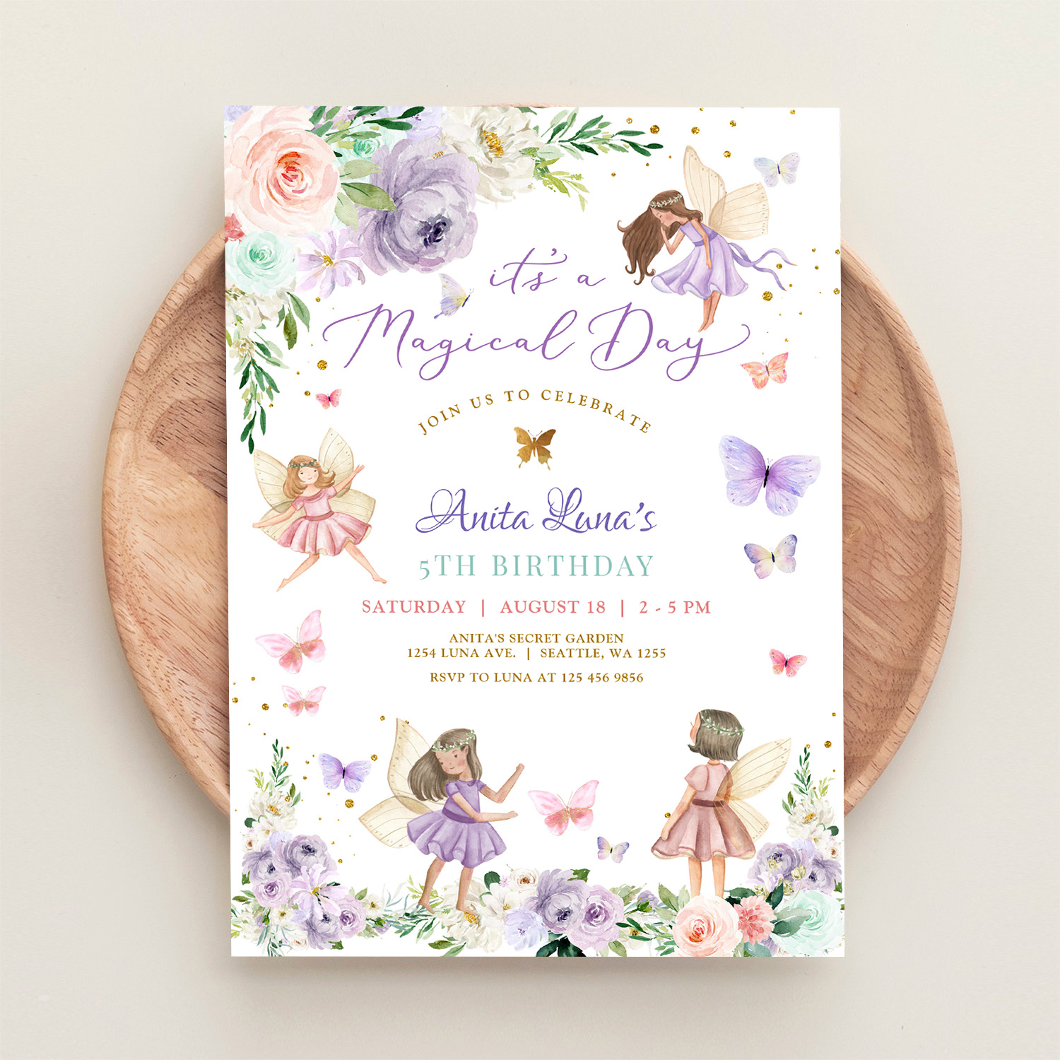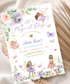 Magic One Purple Pink Fairy Butterfly Birthday Invitation - Related products