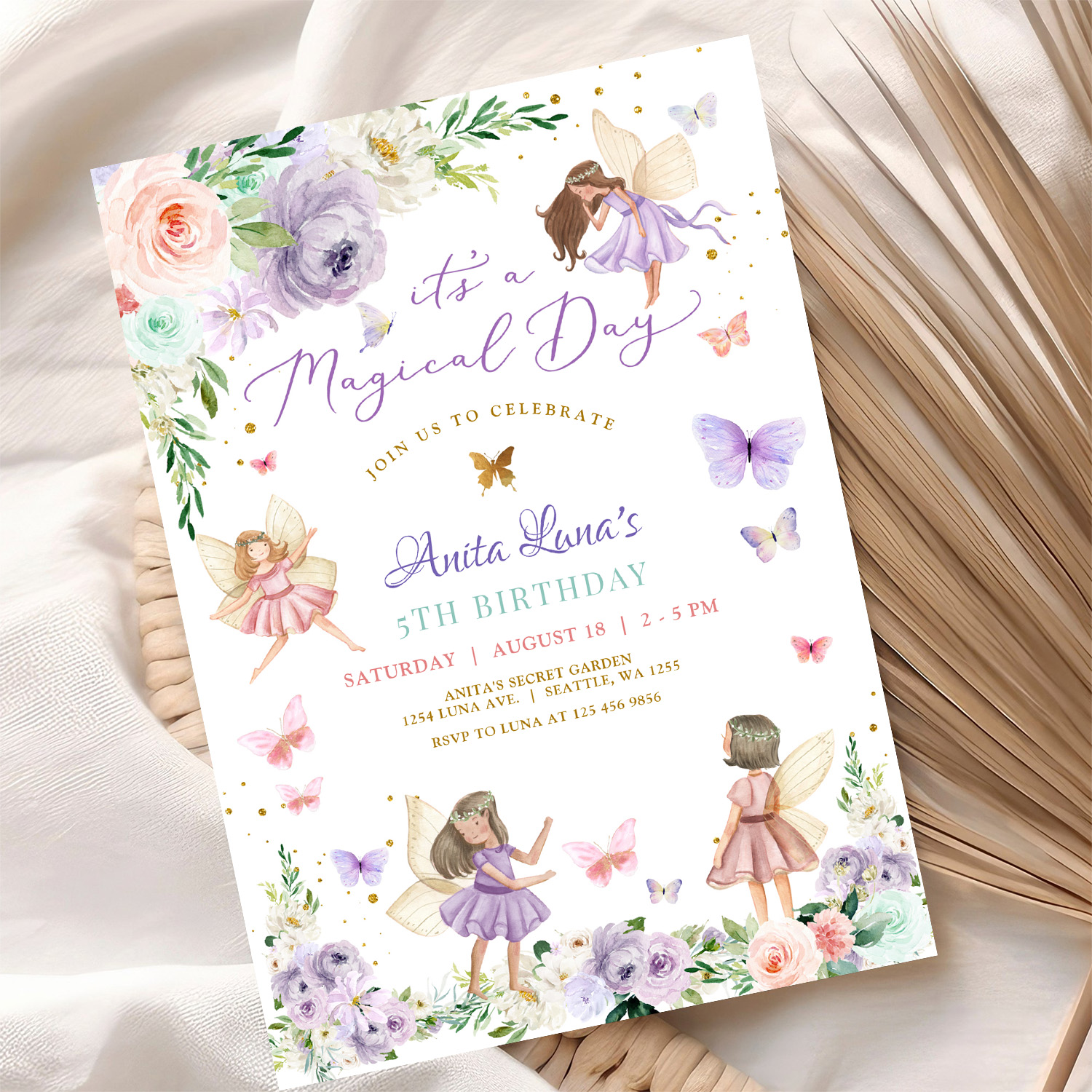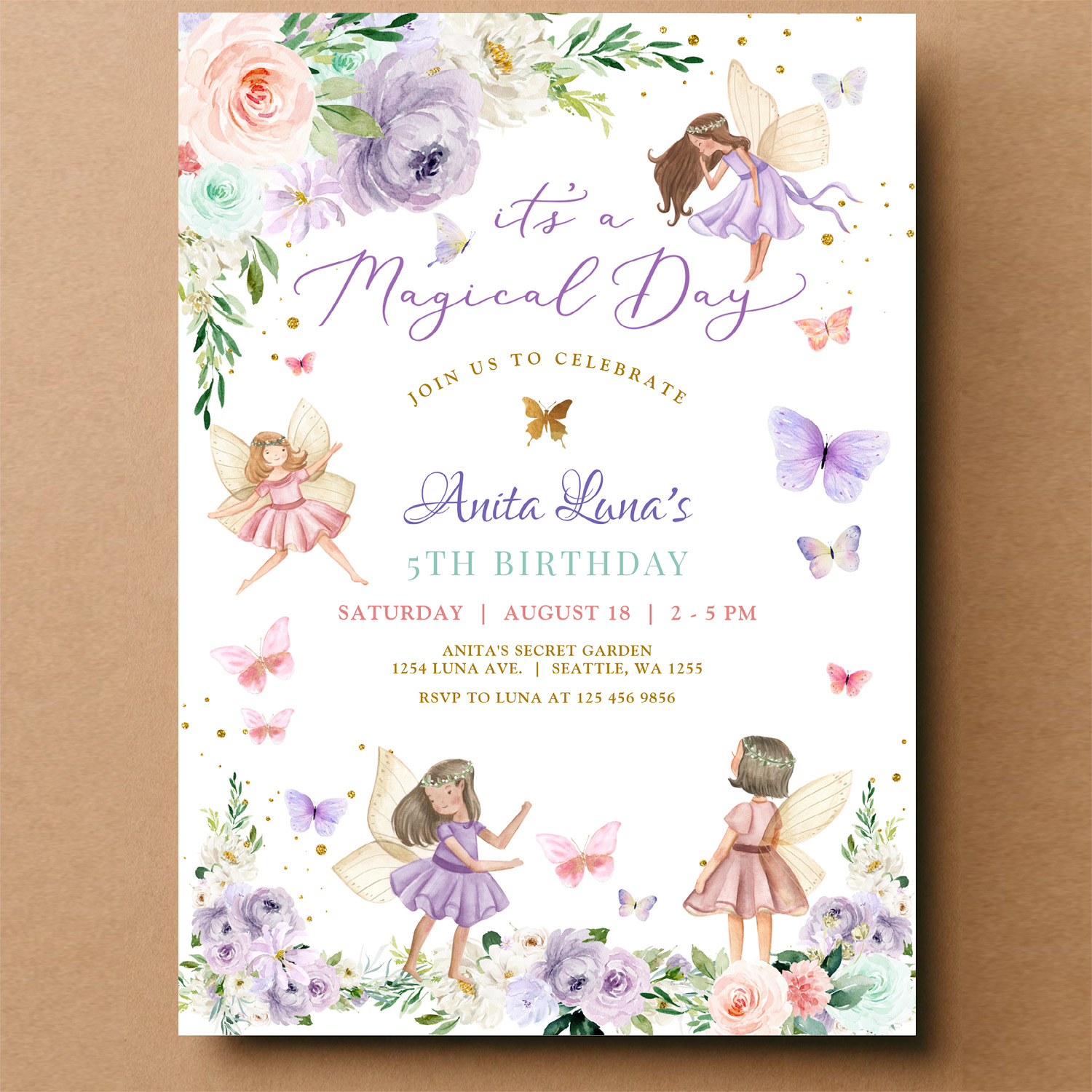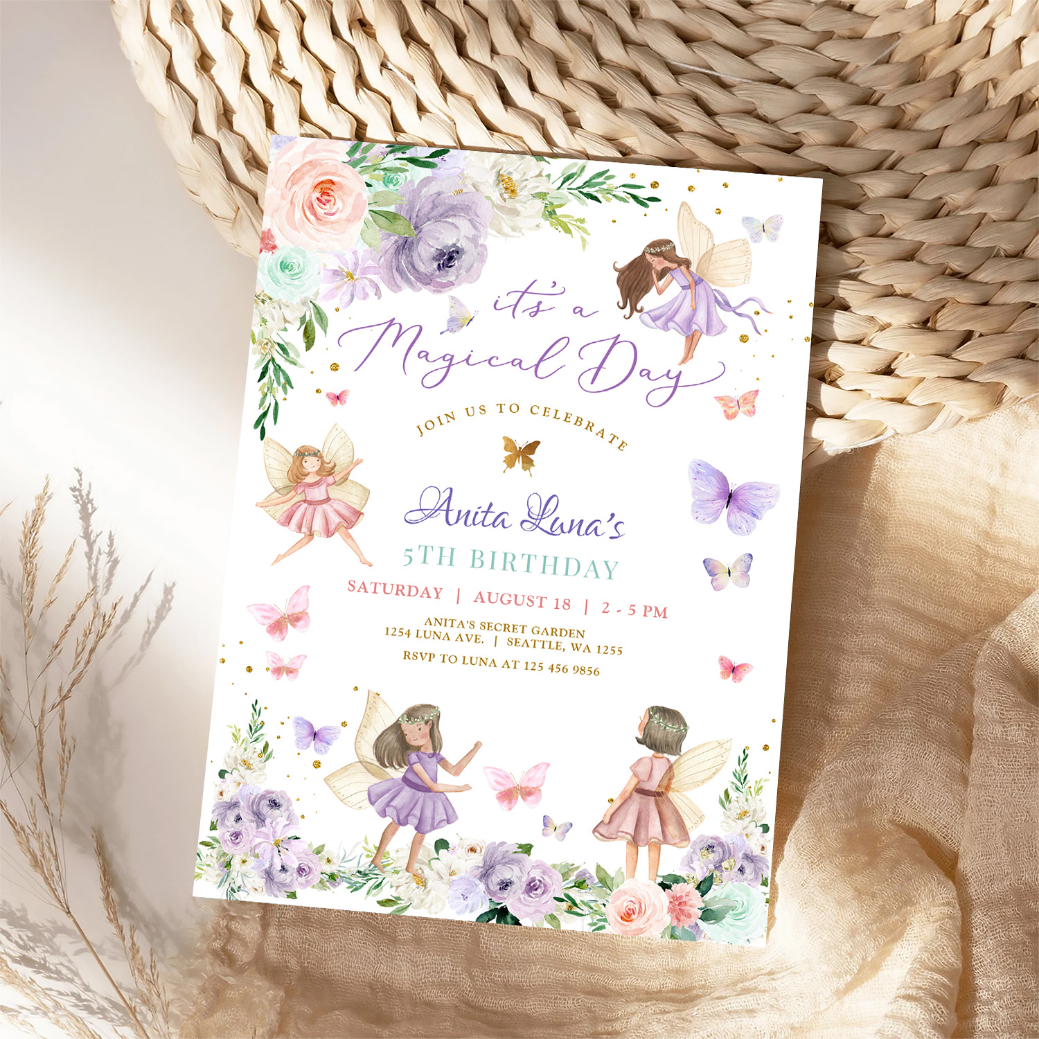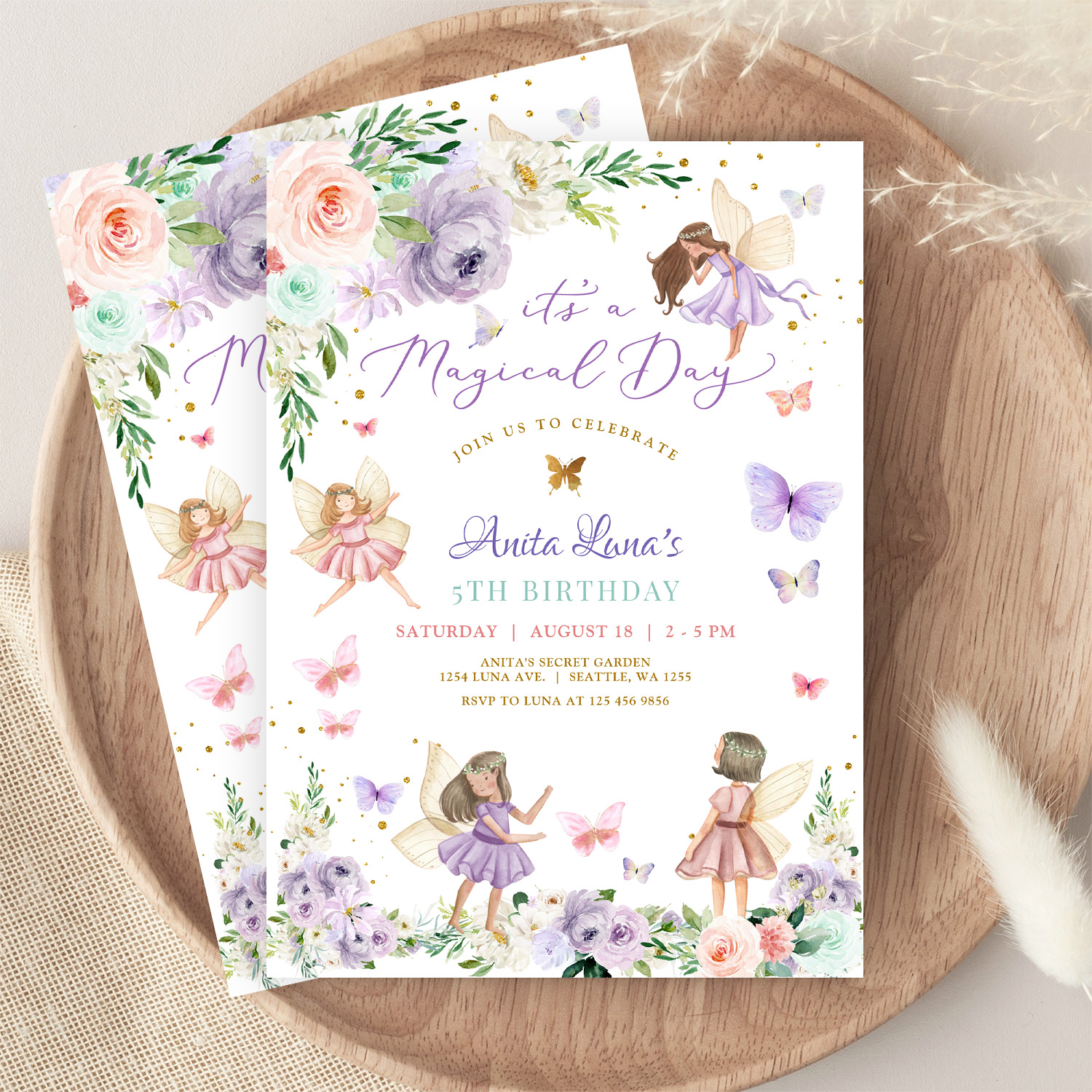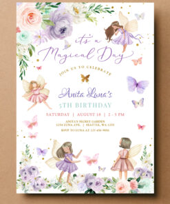 Magic One Purple Pink Fairy Butterfly Birthday Invitation - Related products