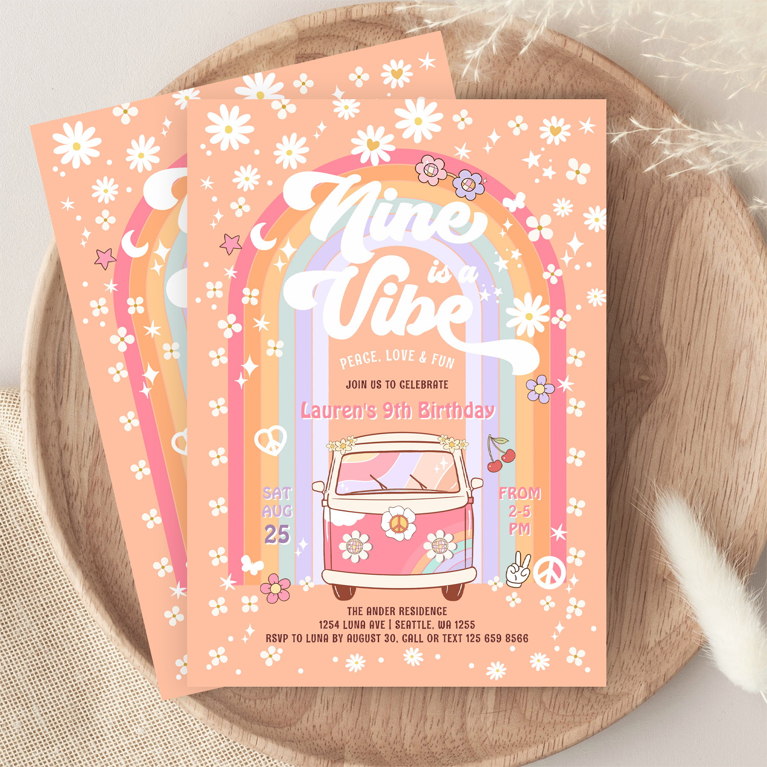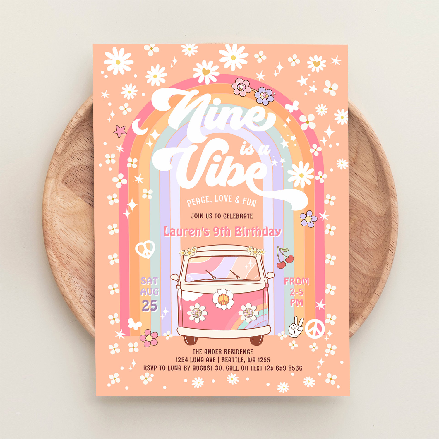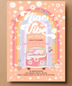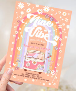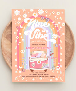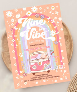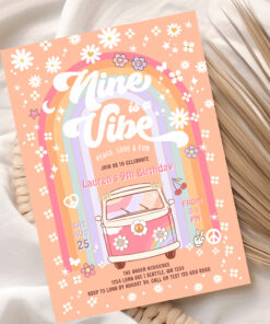 Nine Is A Vibe Daisy Groovy Van 9th Birthday Invitation - Related products