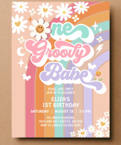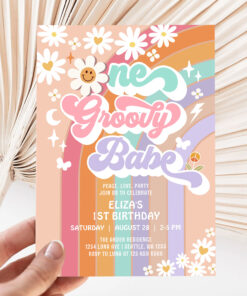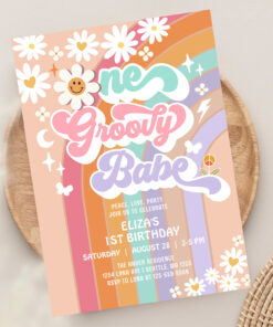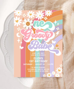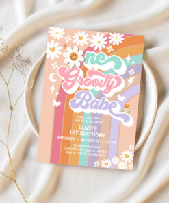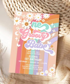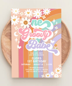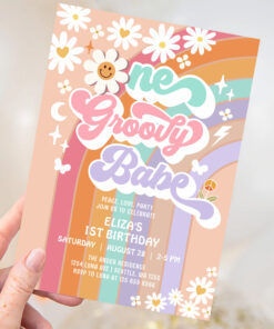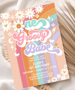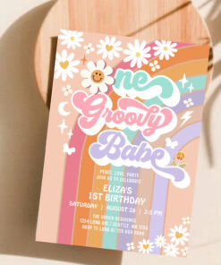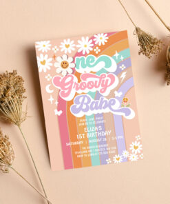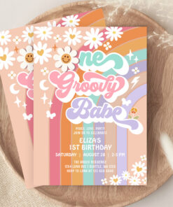 One Groovy Babe 1st Daisy Rainbow Birthday Invitation - Related products