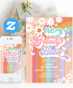 One Groovy Babe 1st Daisy Rainbow Birthday Invitation - Related products