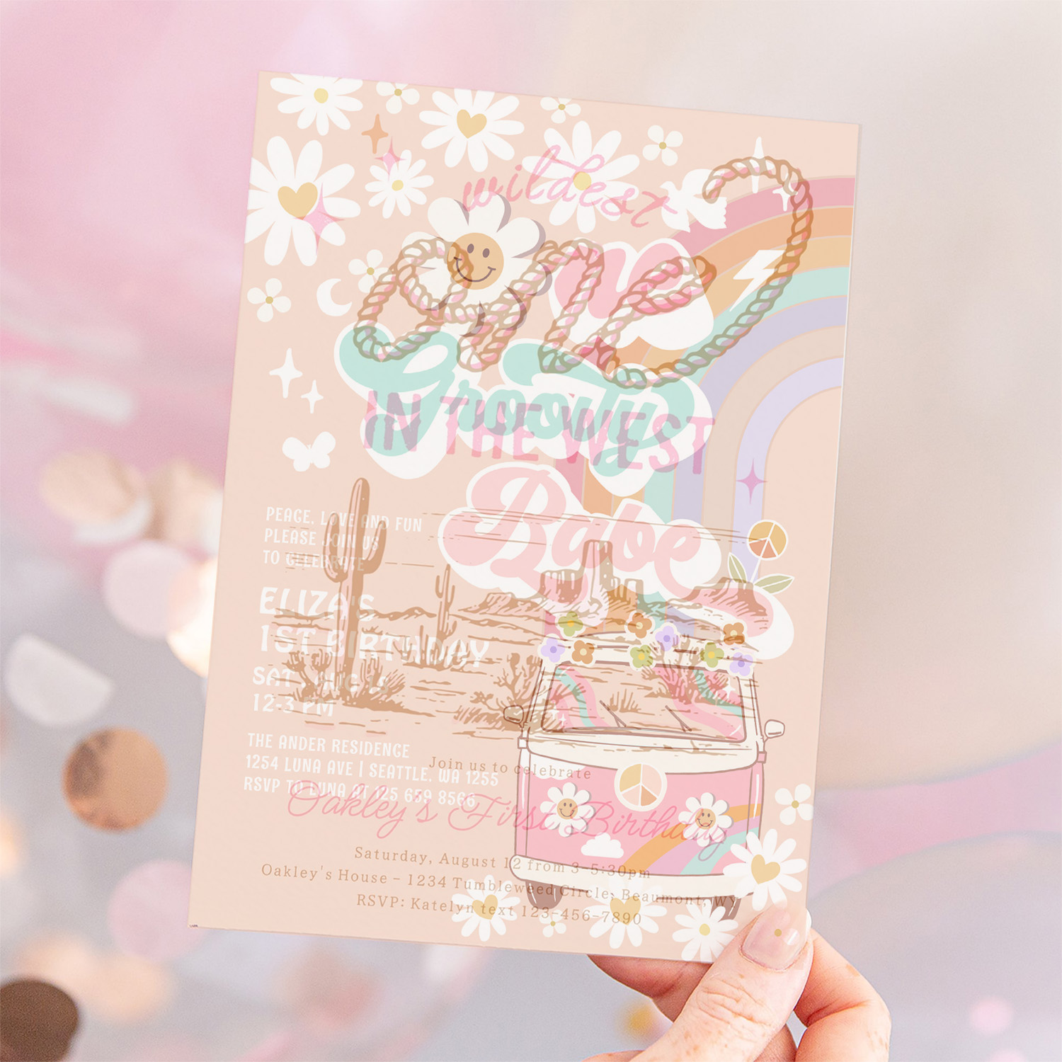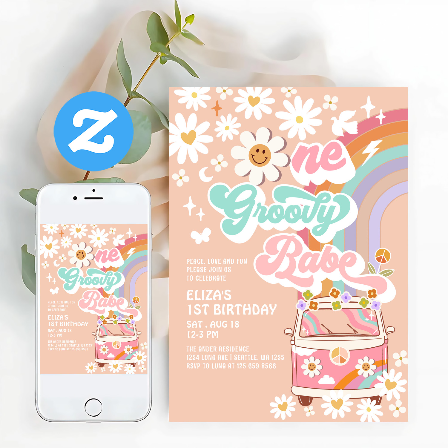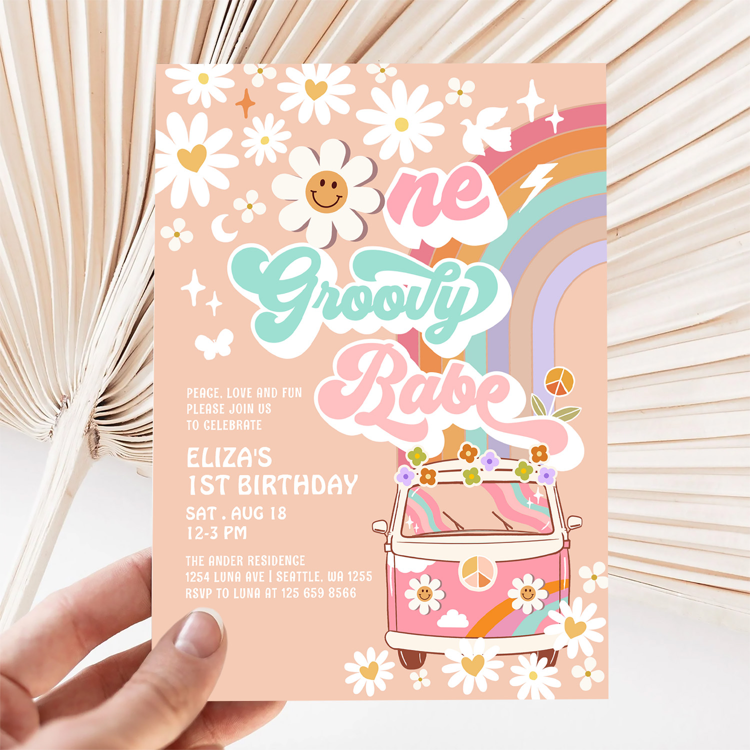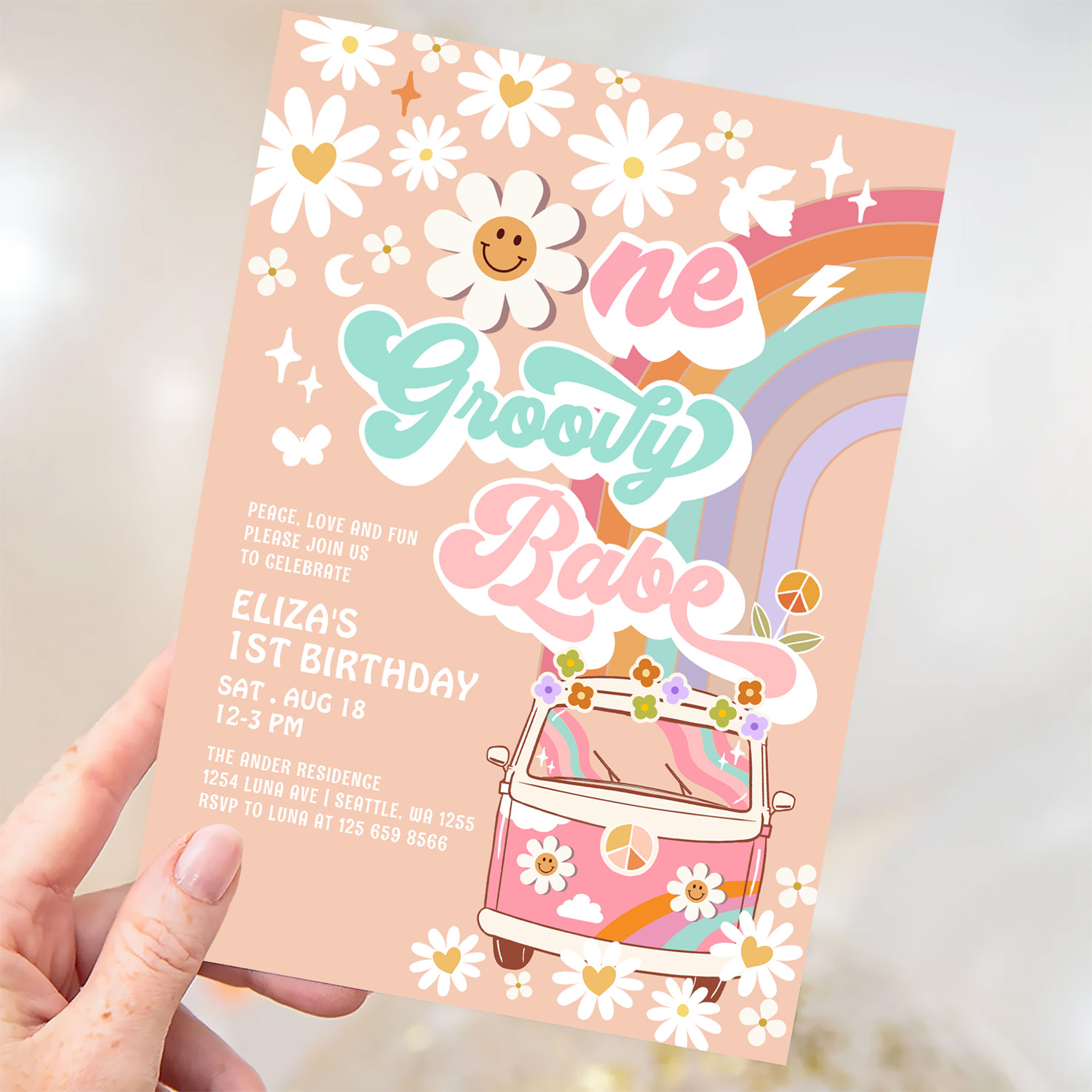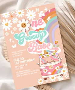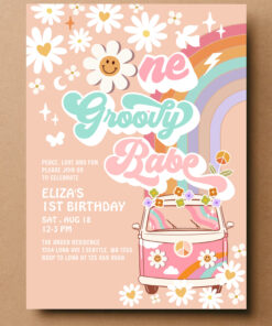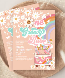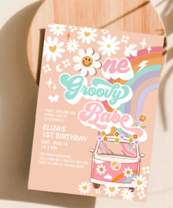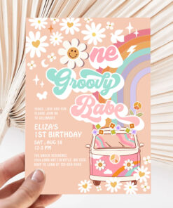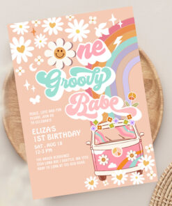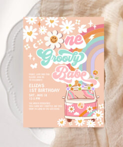 One Groovy Babe Pink Daisy Rainbow 1st Birthday Invitation - Related products