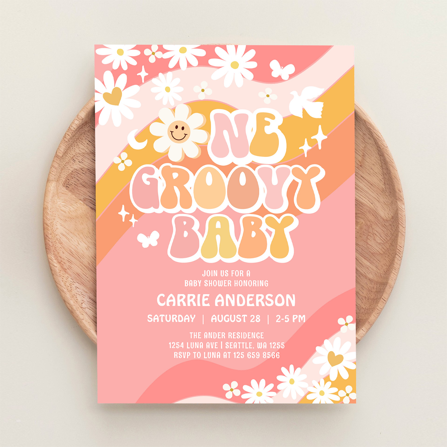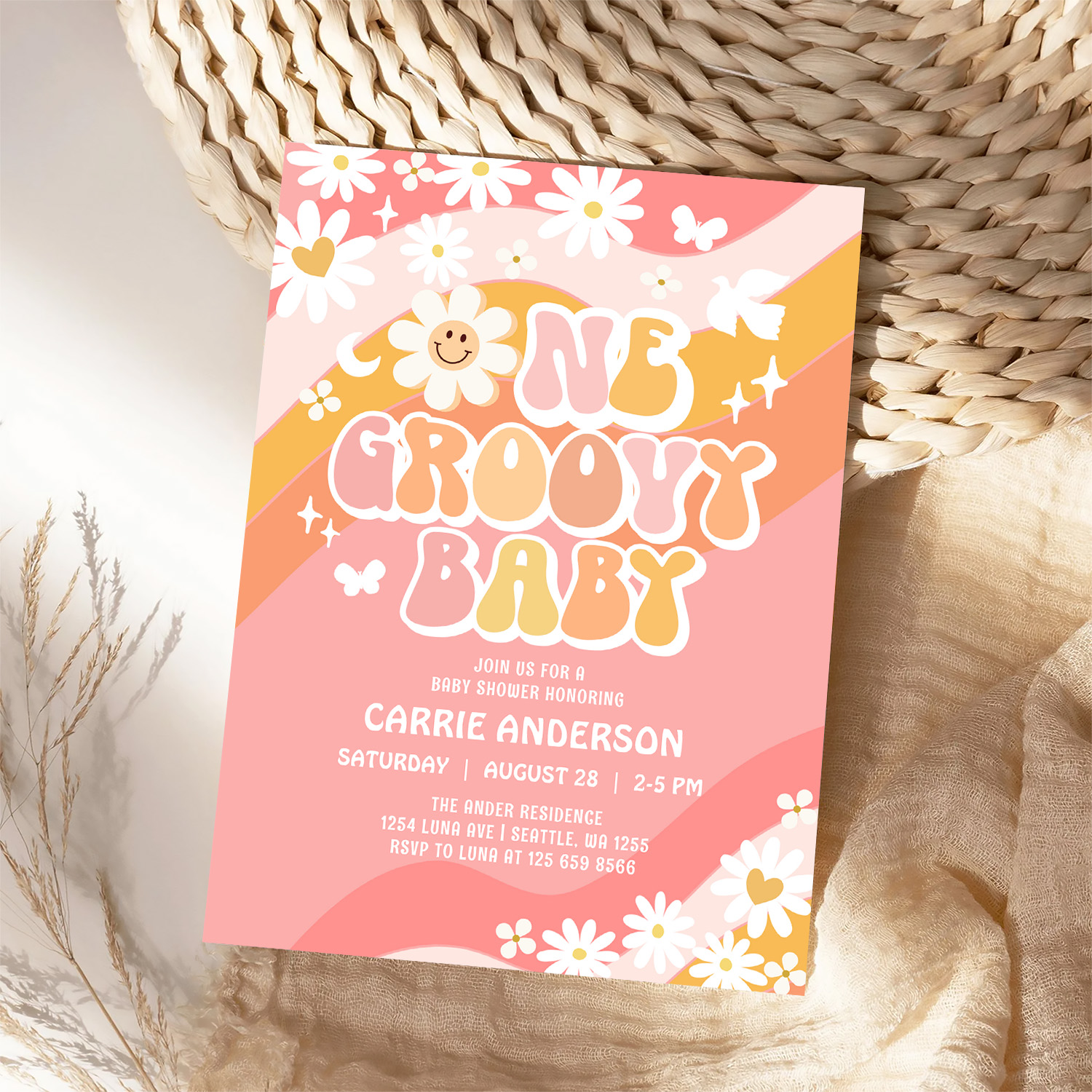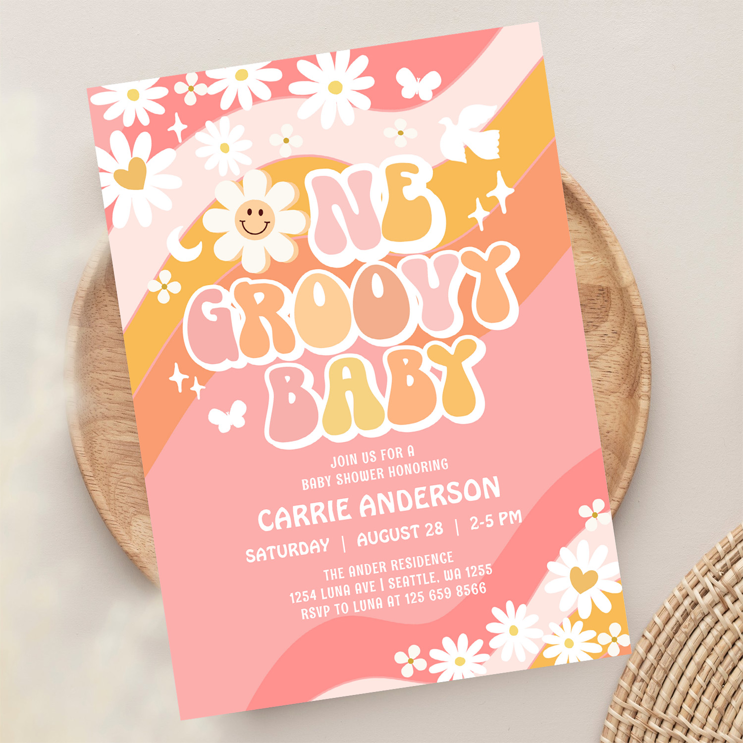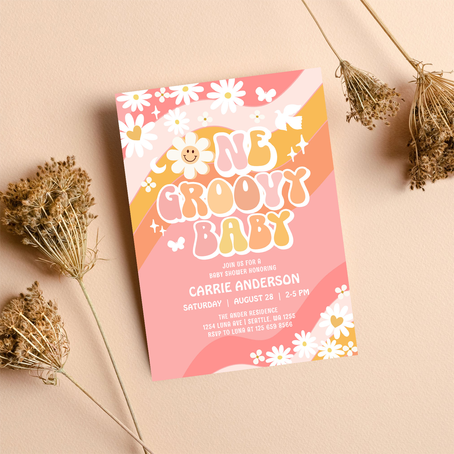 One Groovy Baby Daisy Hippie 70S Retro Baby Shower Invitation