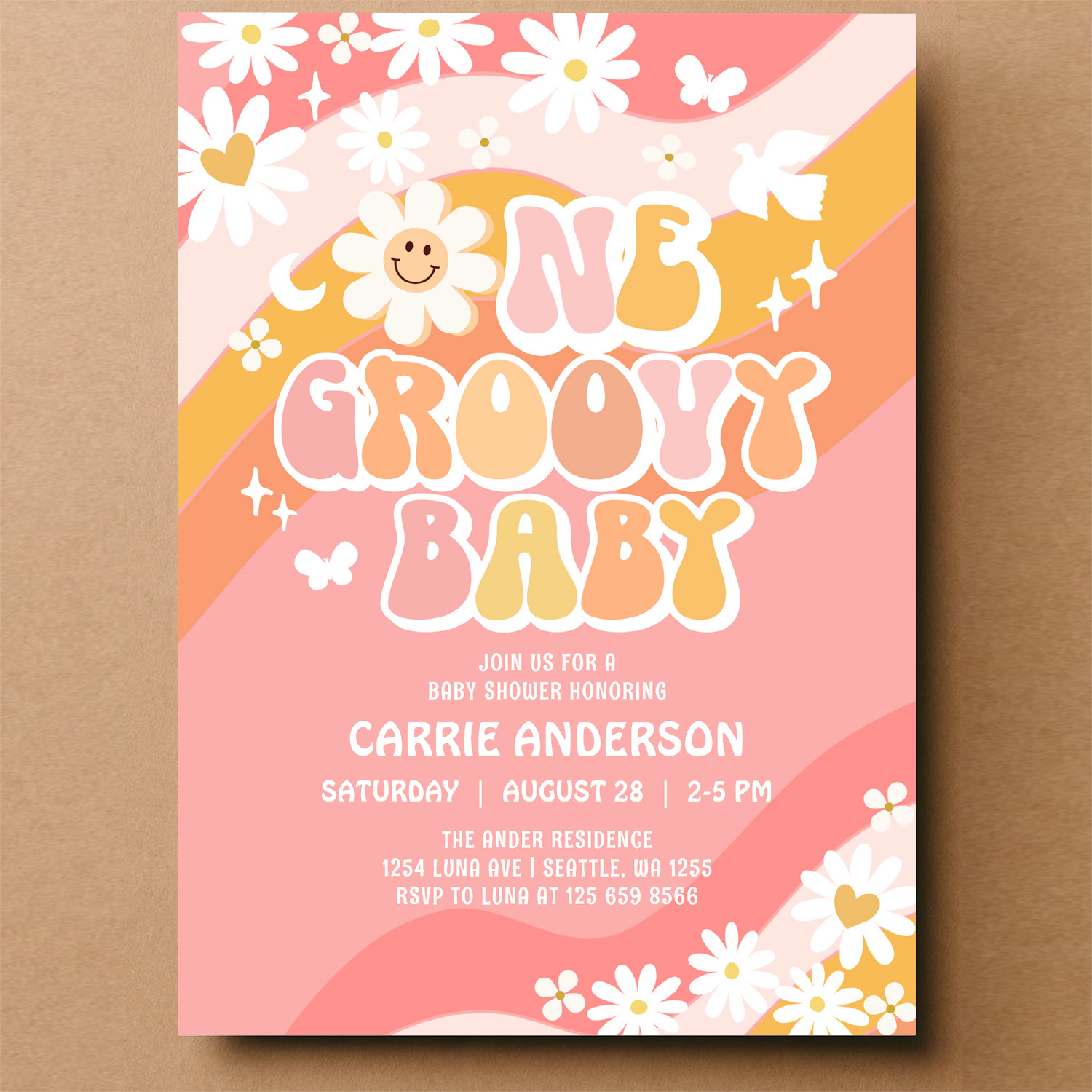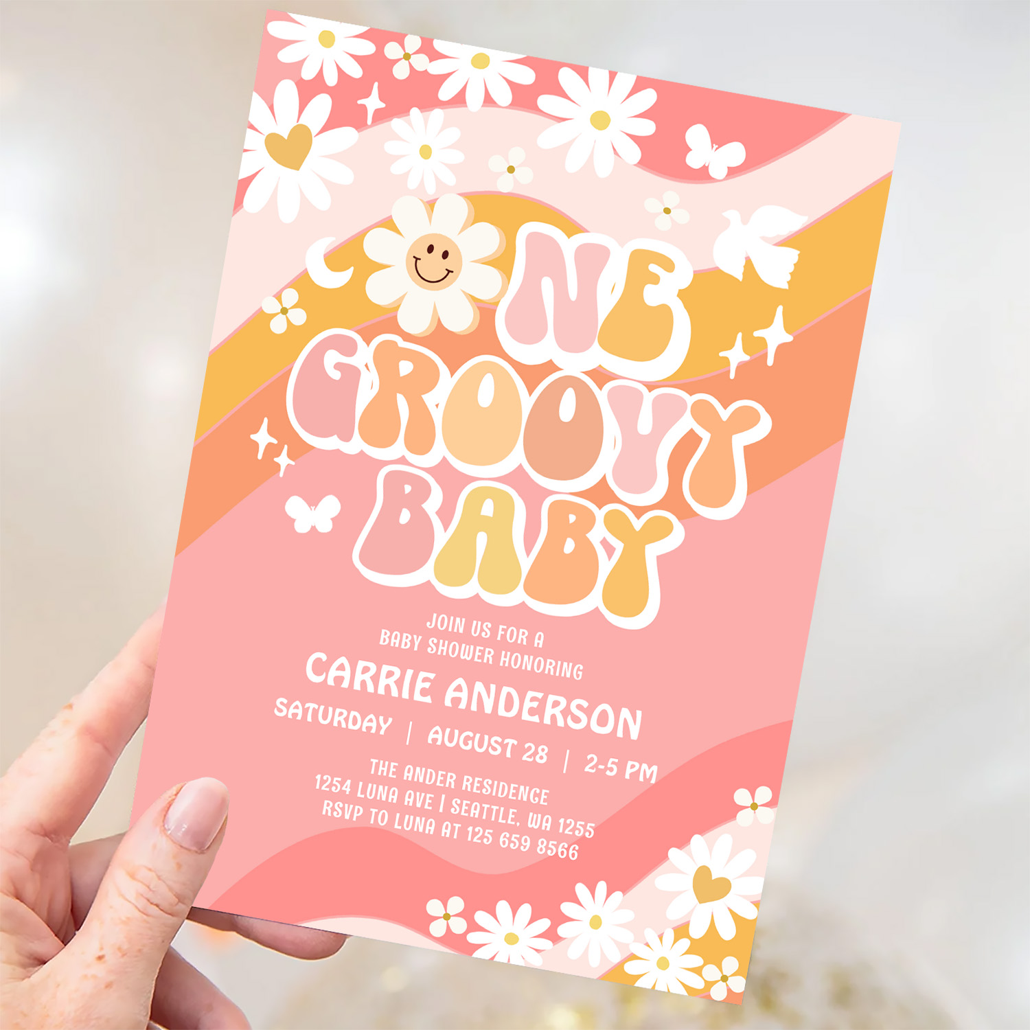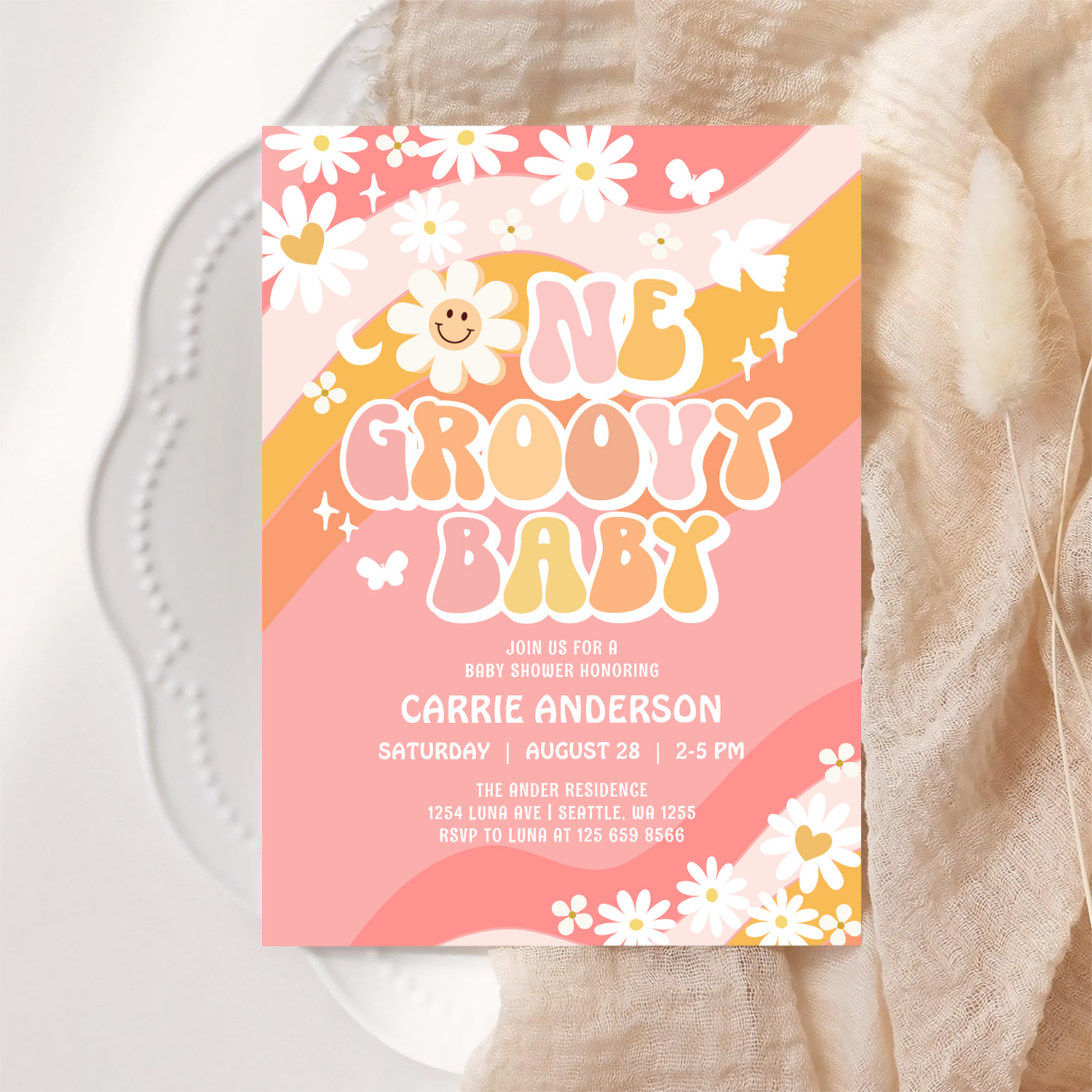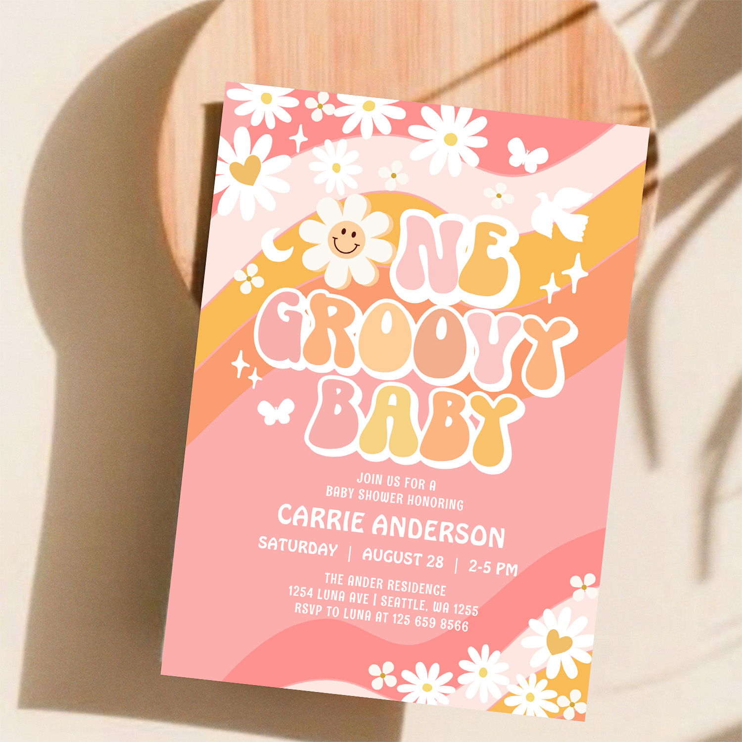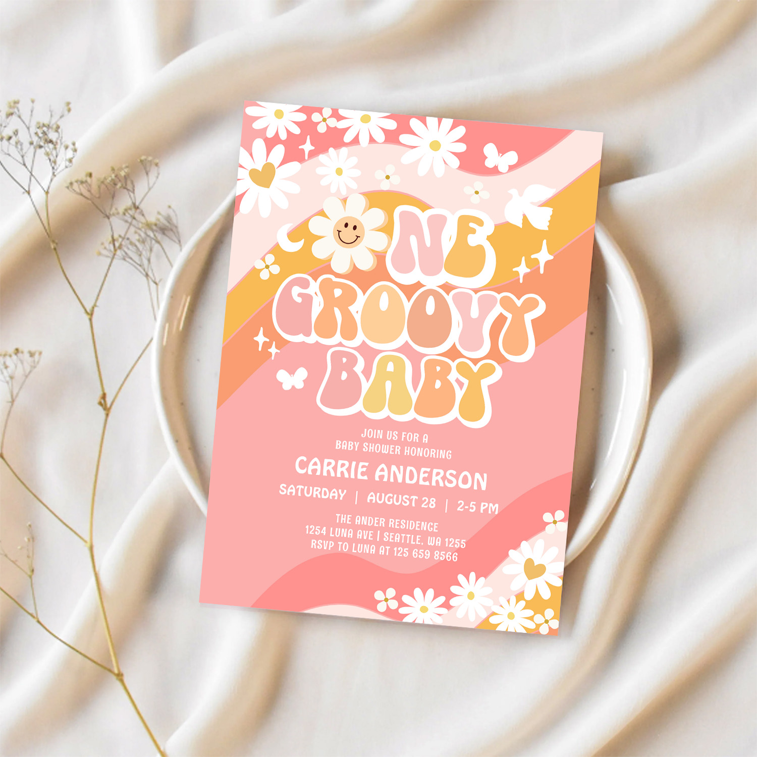One Groovy Baby Daisy Hippie 70S Retro Baby Shower Invitation
