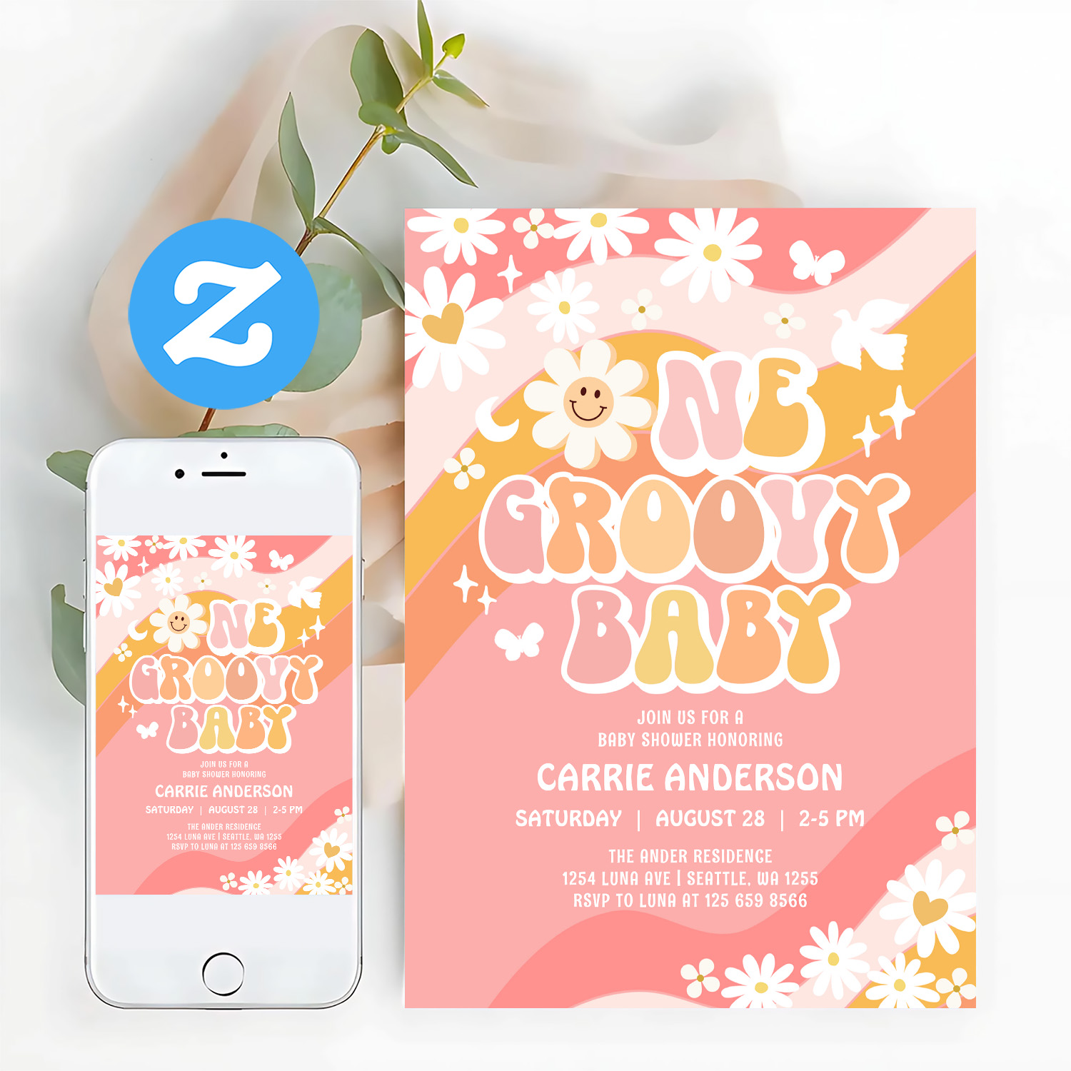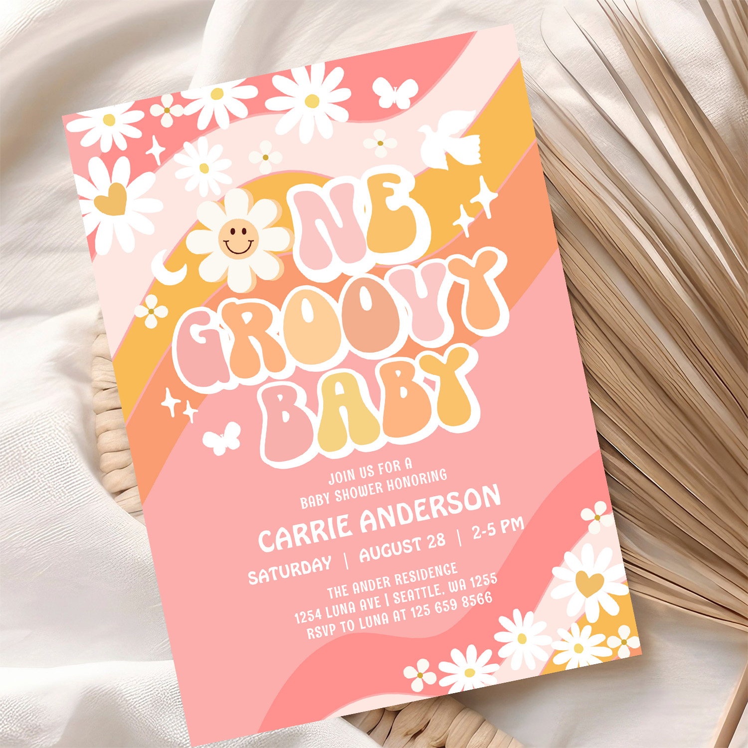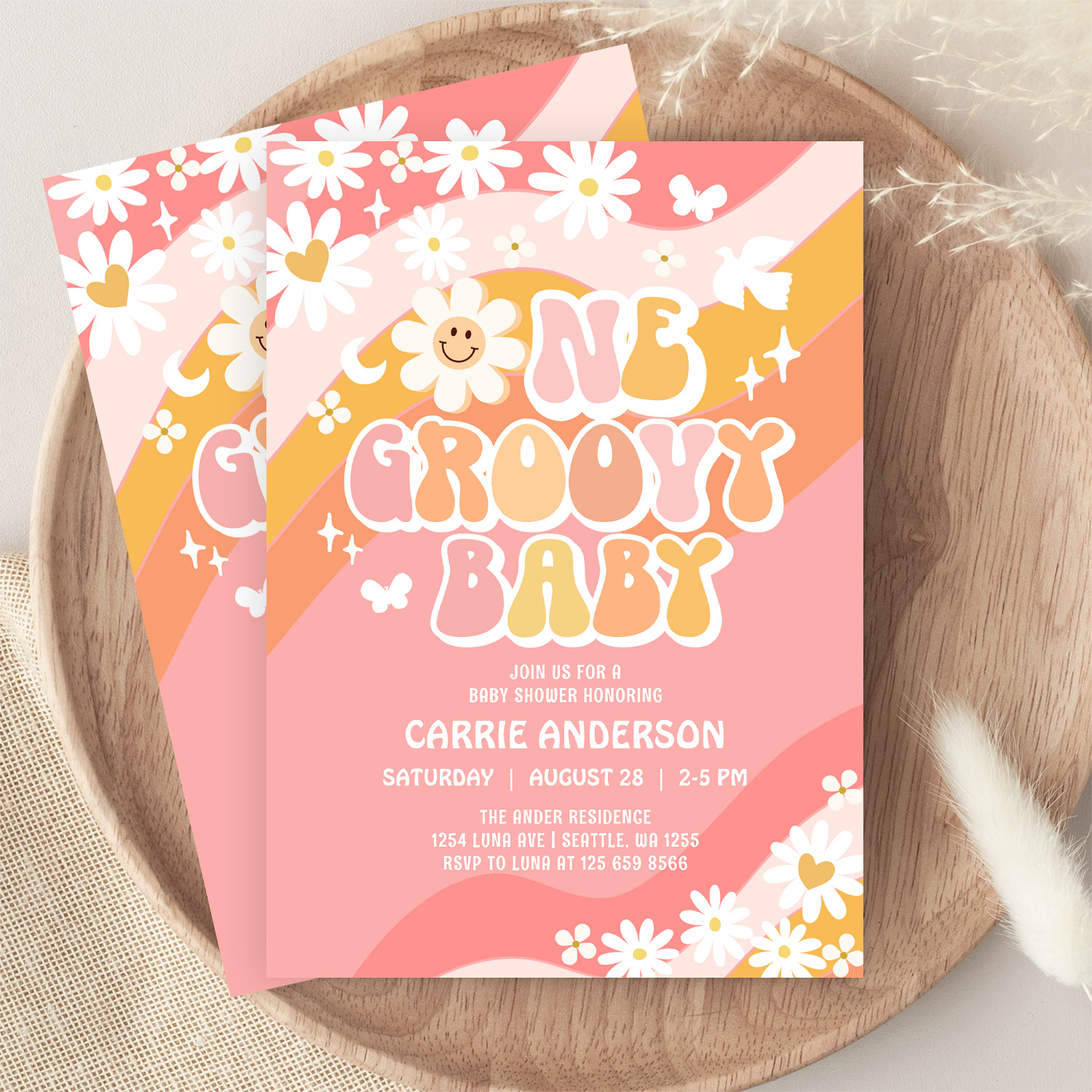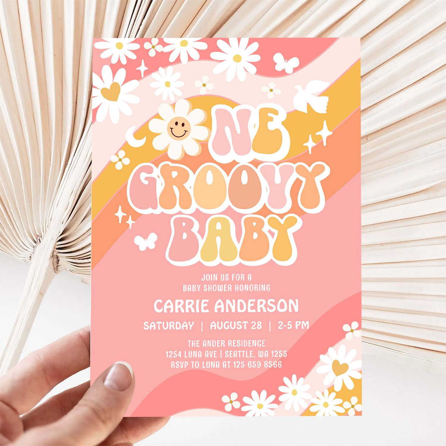 One Groovy Baby Daisy Hippie 70S Retro Baby Shower Invitation