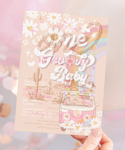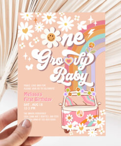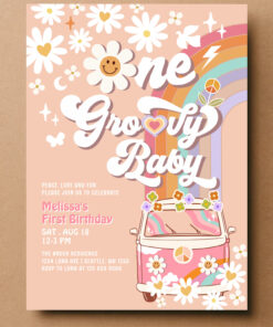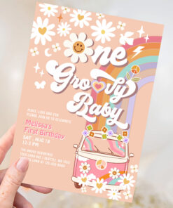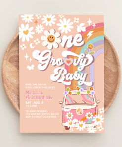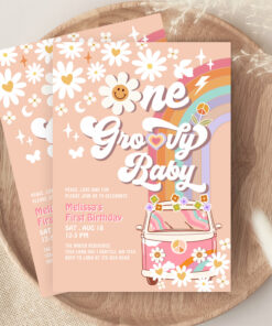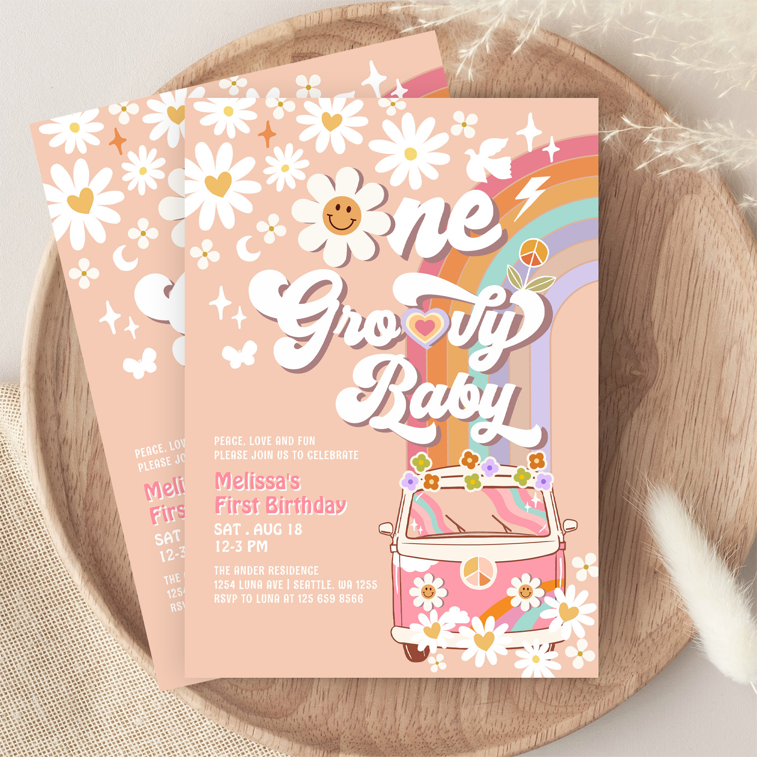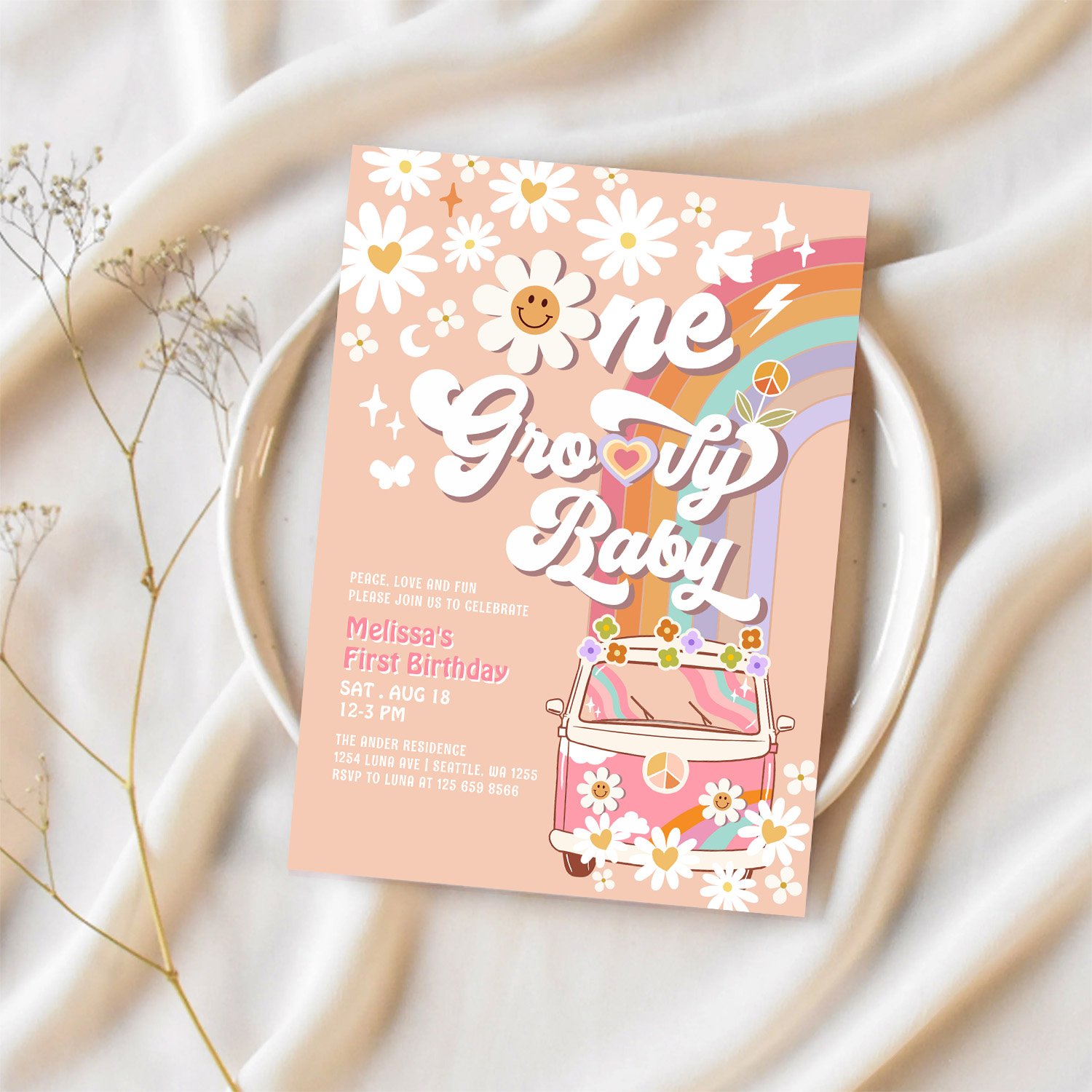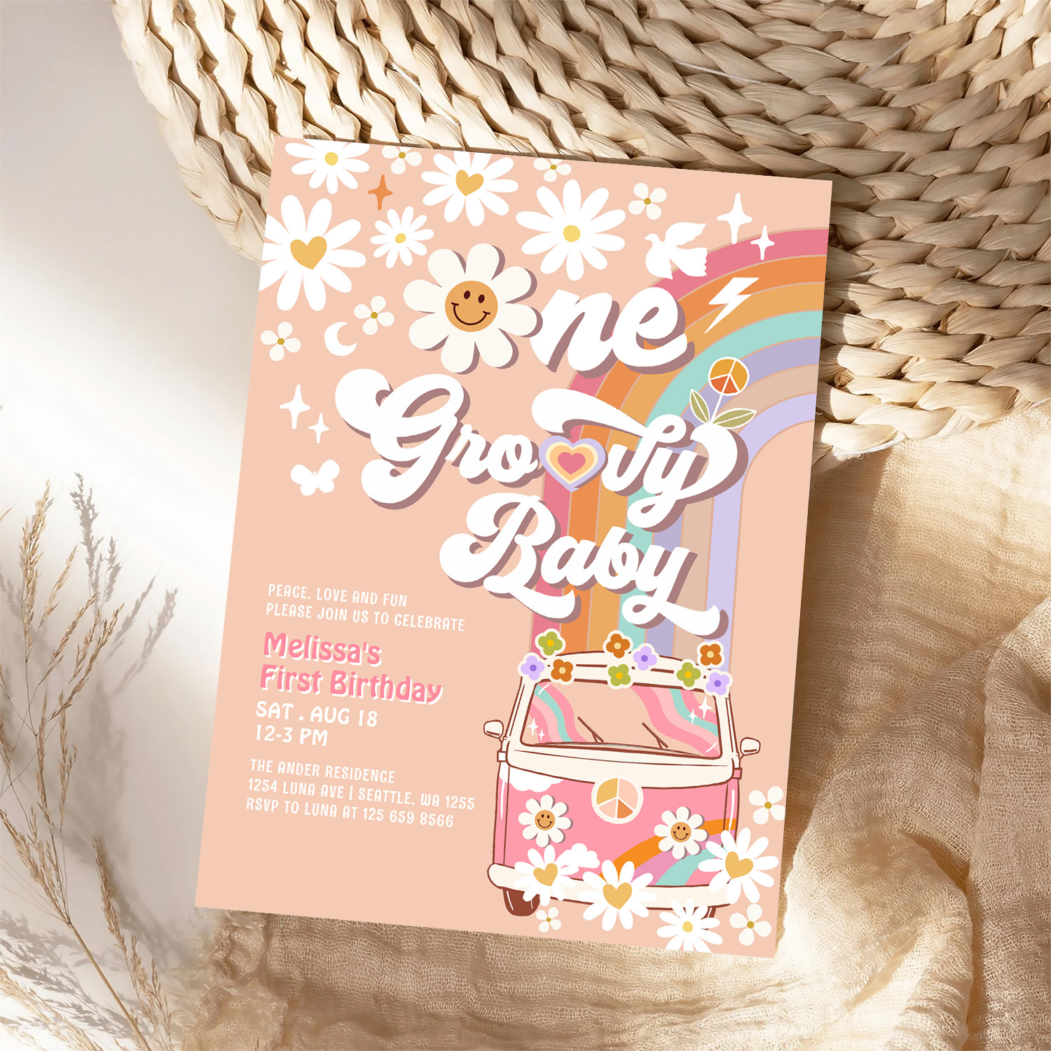 One Groovy Baby Daisy Rainbow 1st Birthday Invitation