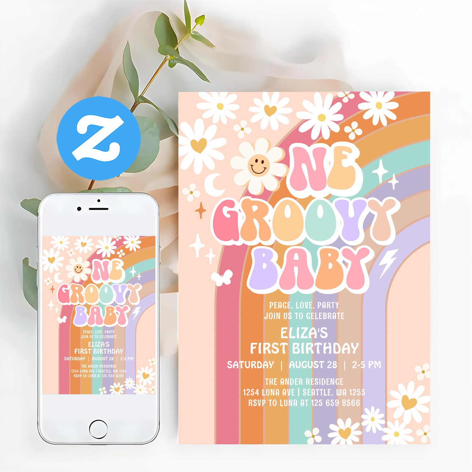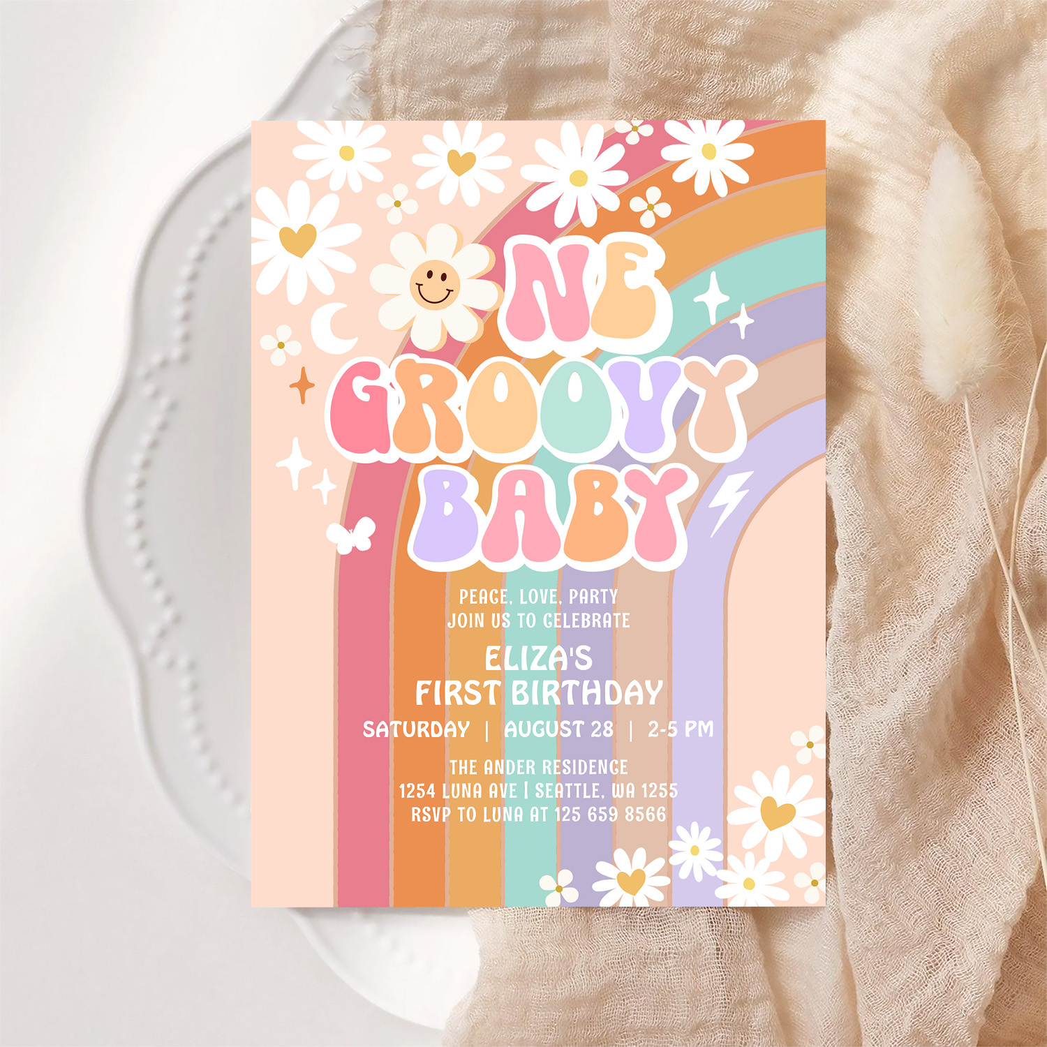 One Groovy Baby Hippie Retro 1st Birthday Invitation - Related products