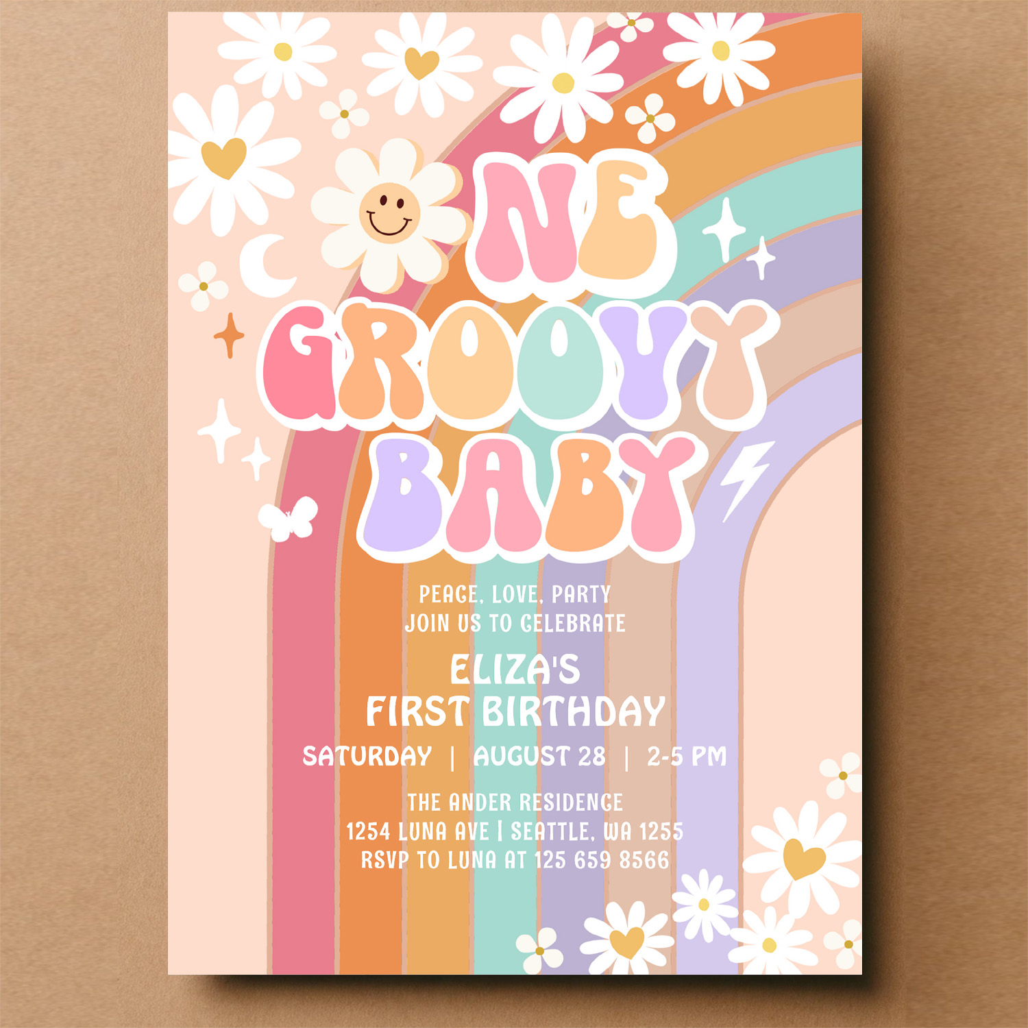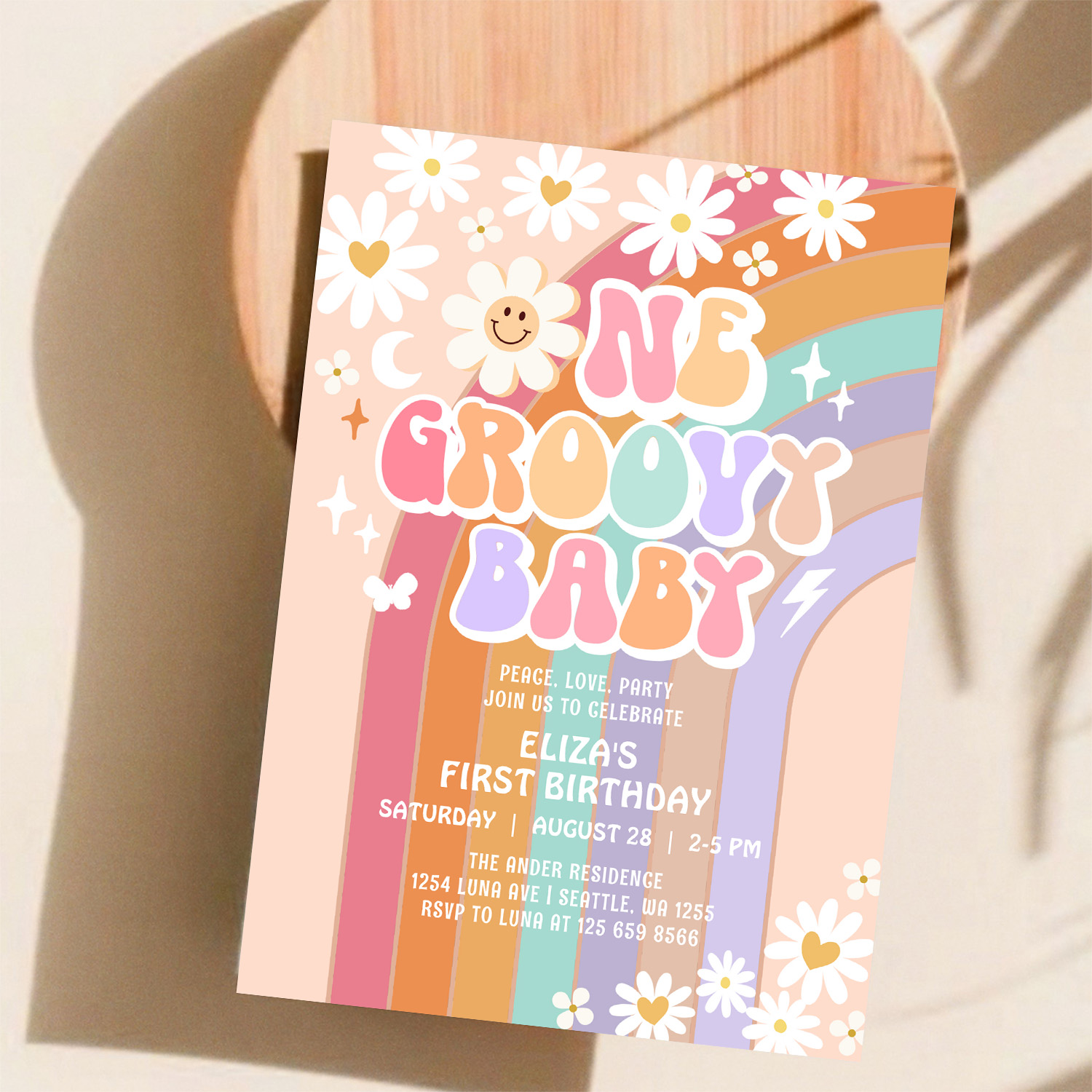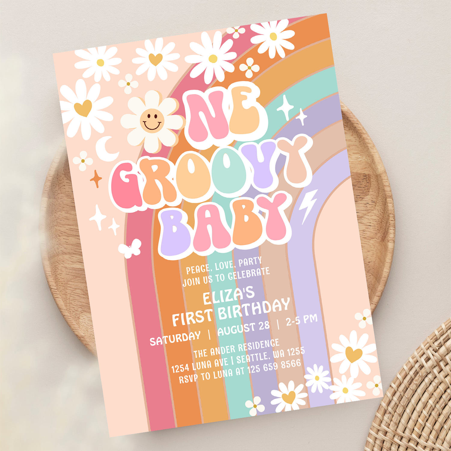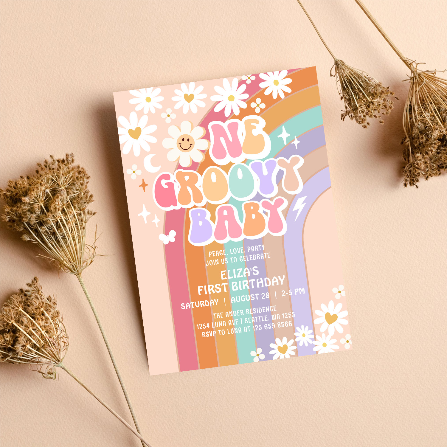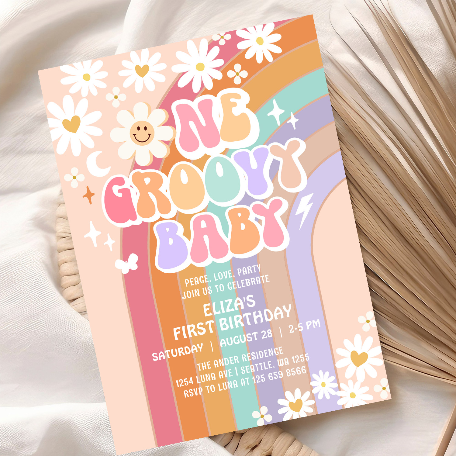 One Groovy Baby Hippie Retro 1st Birthday Invitation