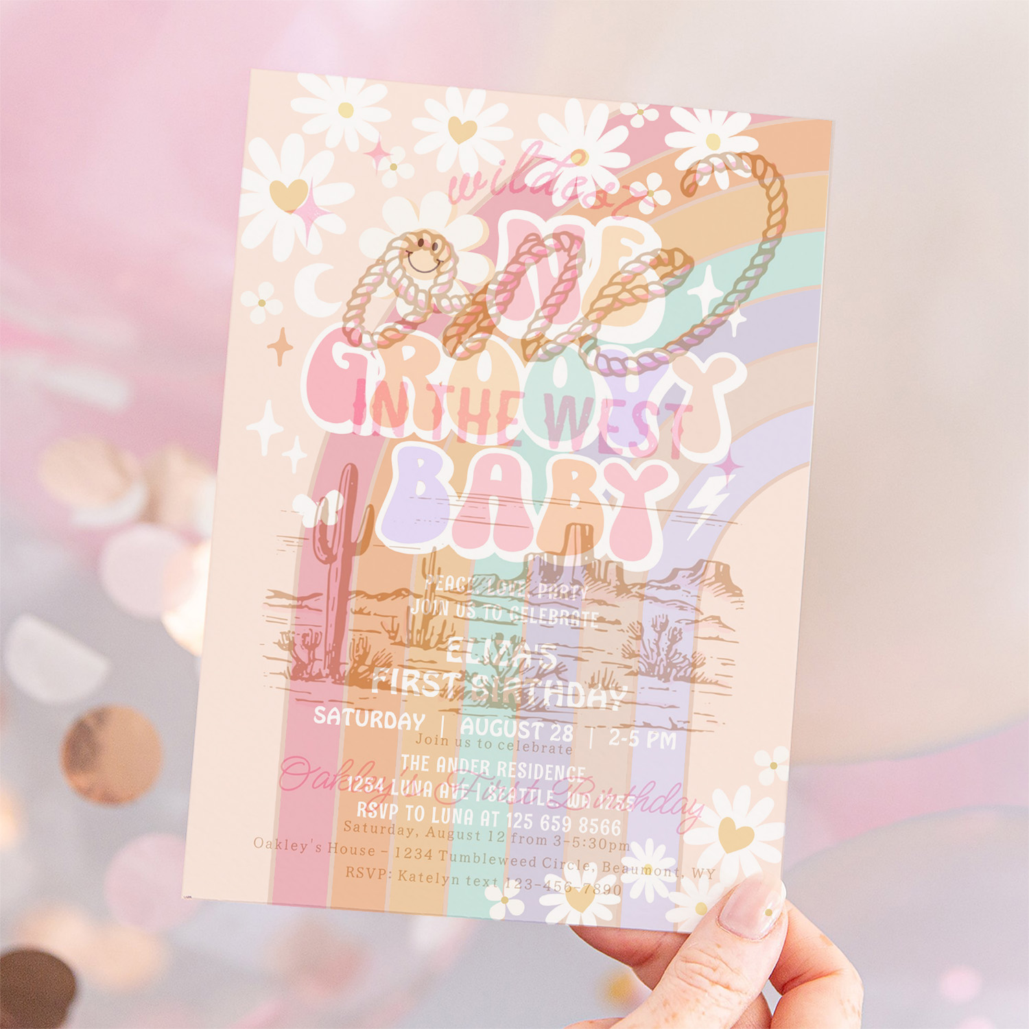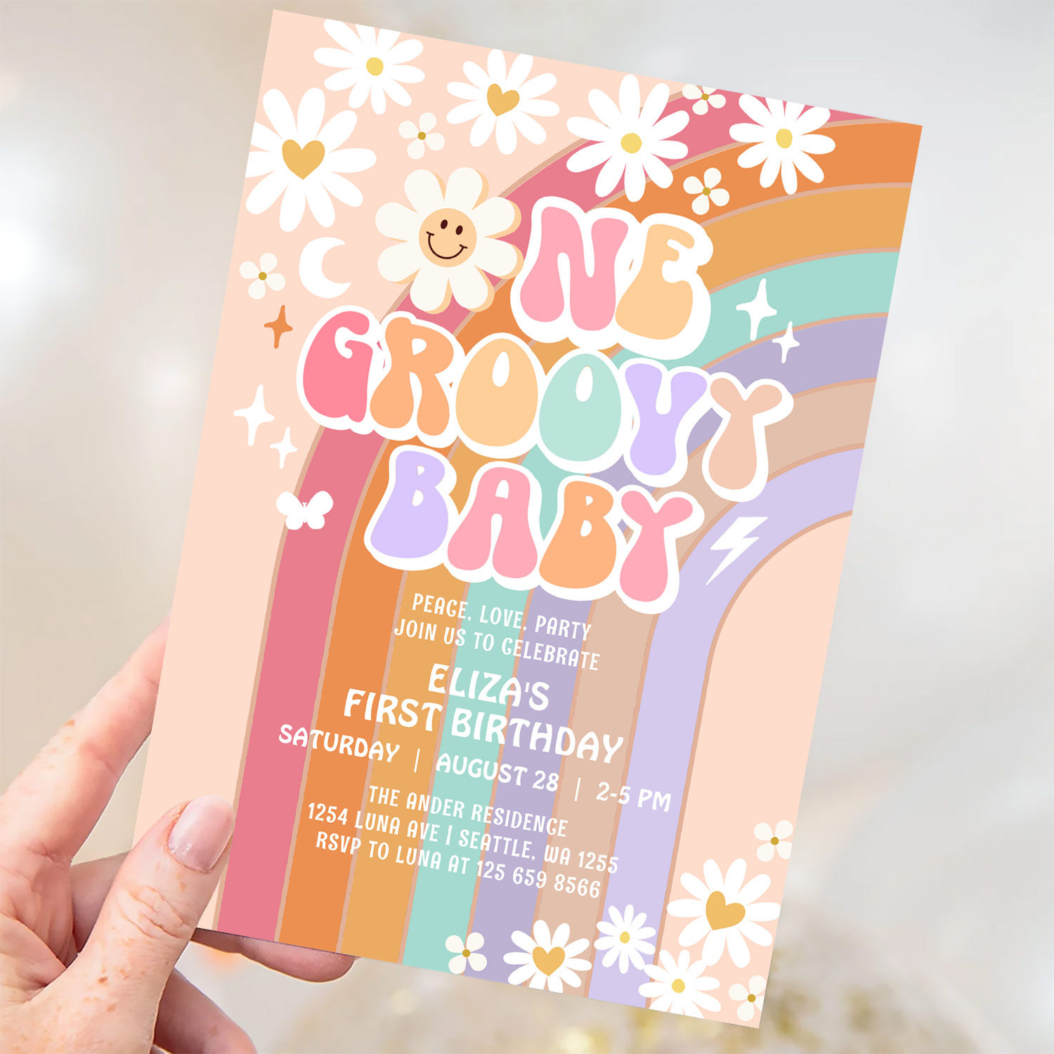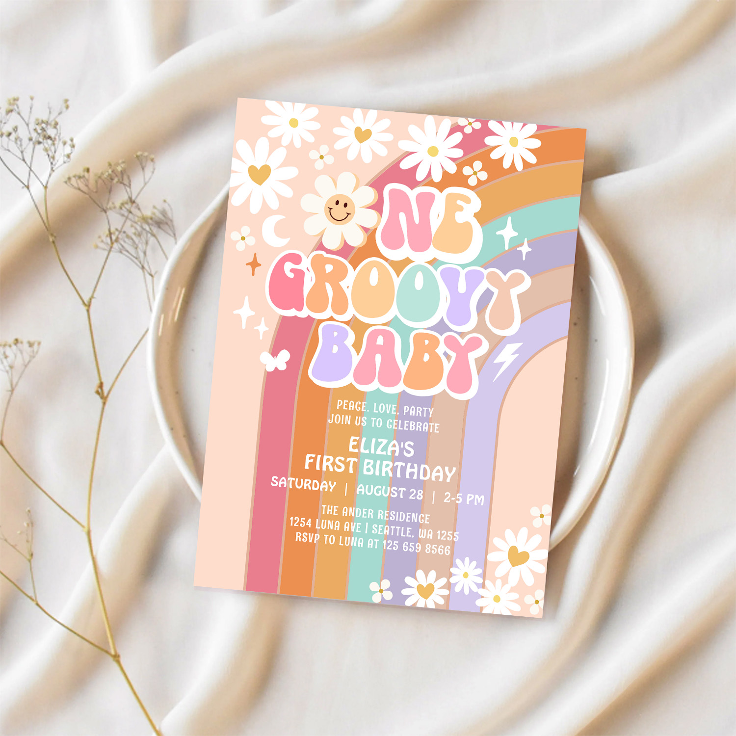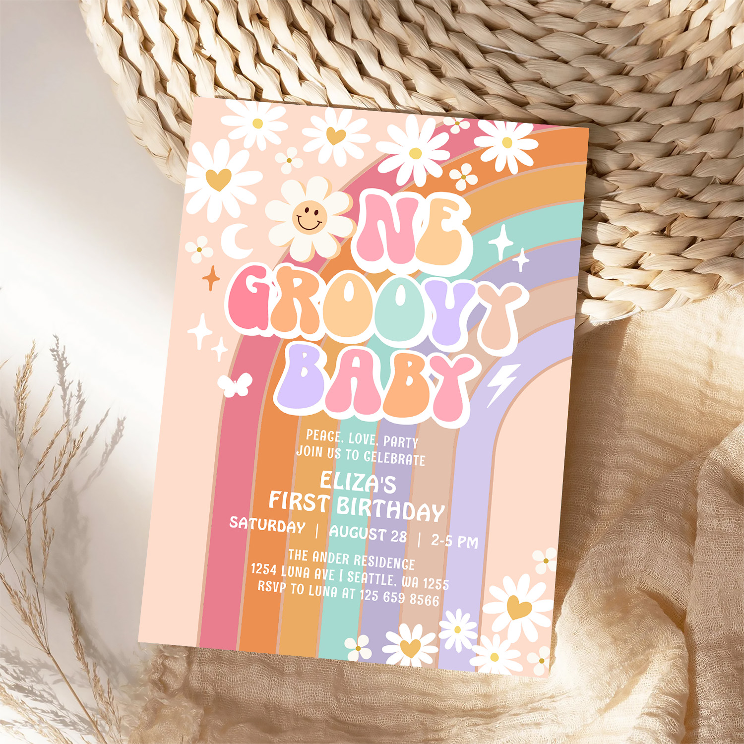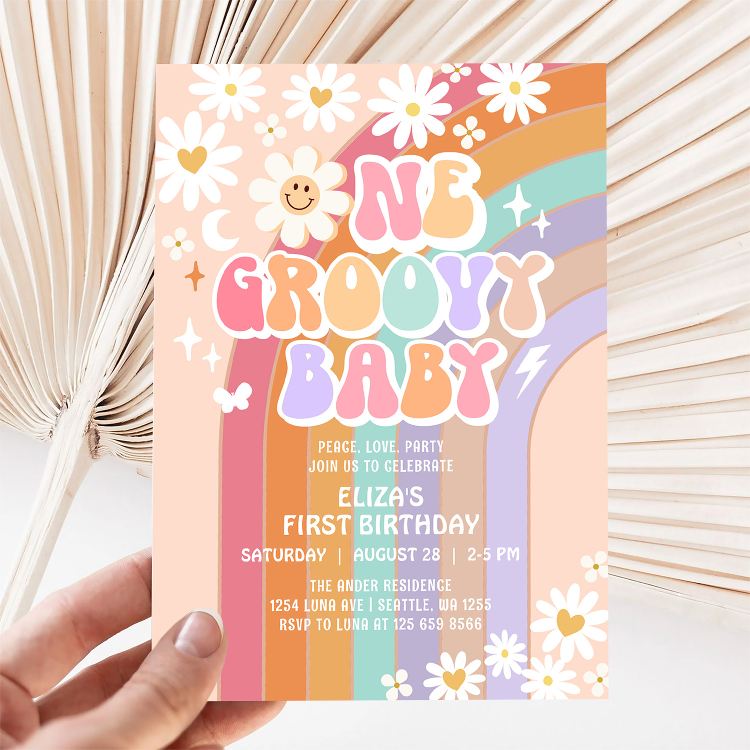 One Groovy Baby Hippie Retro 1st Birthday Invitation