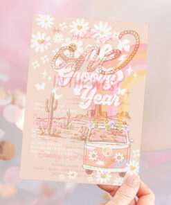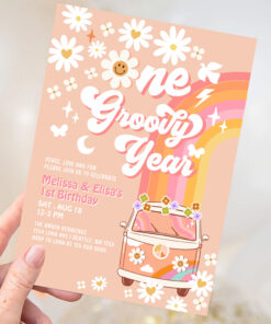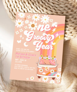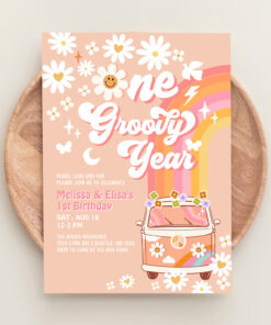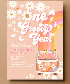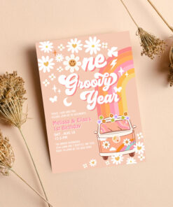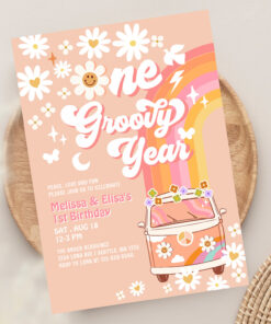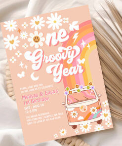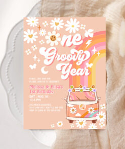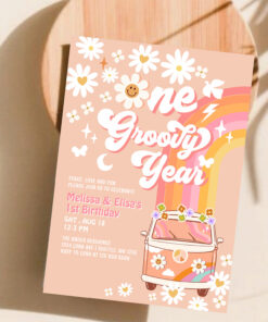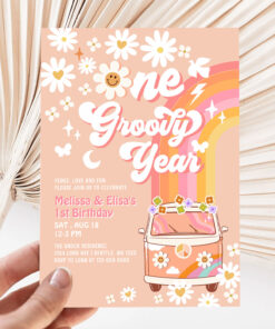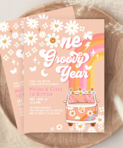 One Groovy Year Twin Pink Peach 1st Birthday Invitation - Related products