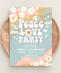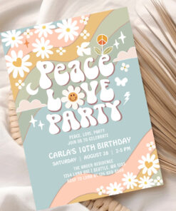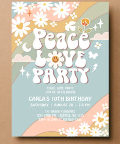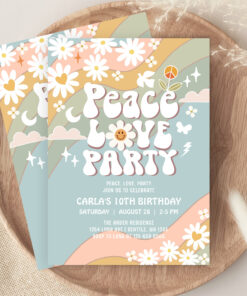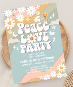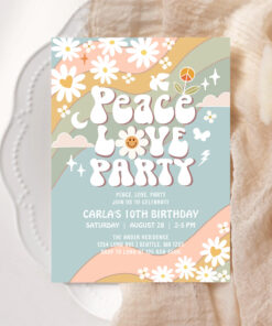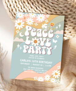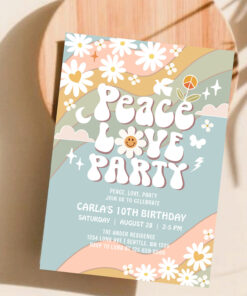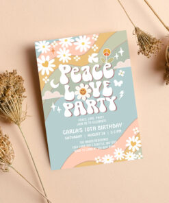 Peace Love Party Daisy Hippie 70S Birthday Invitation - Related products