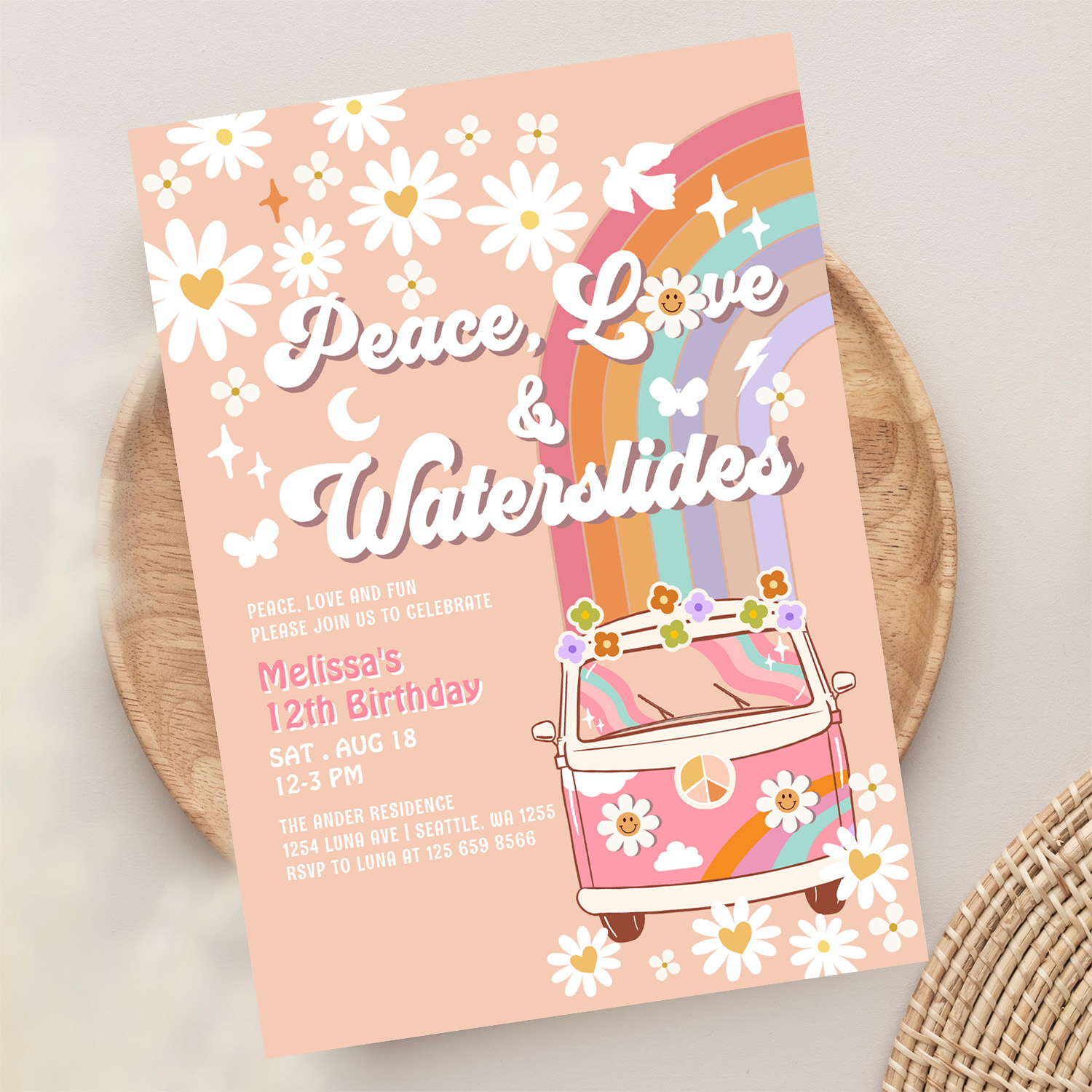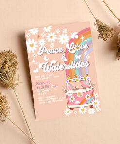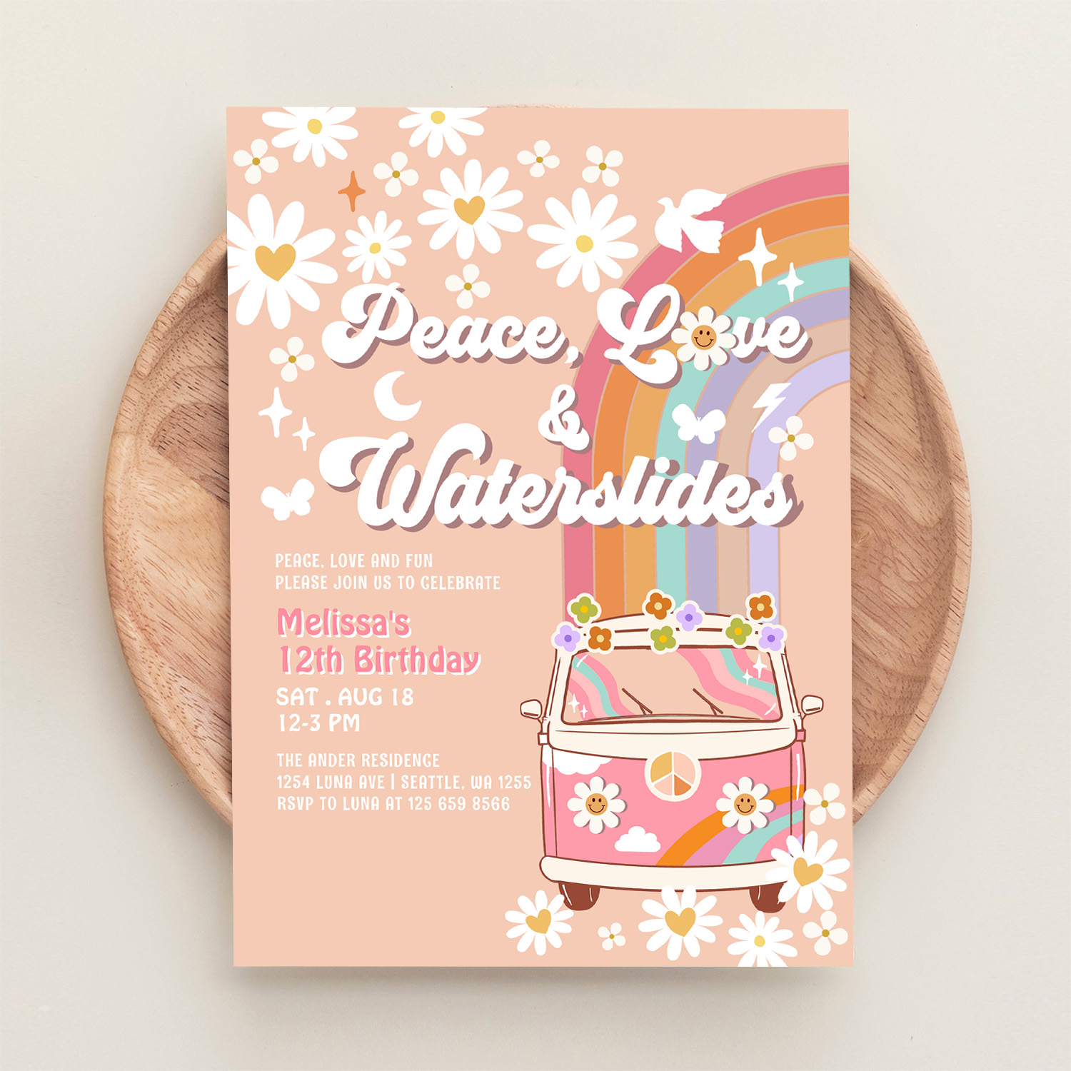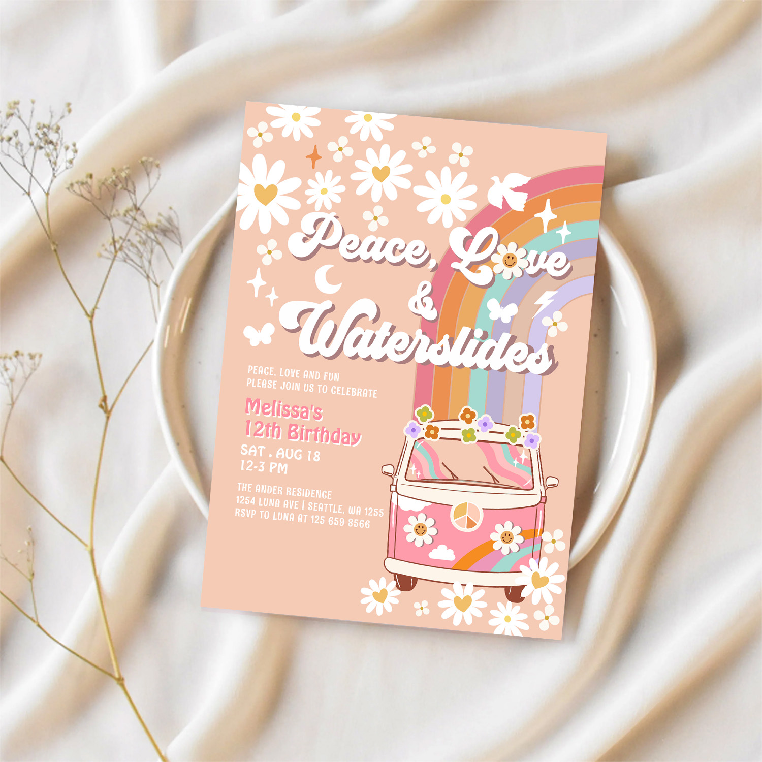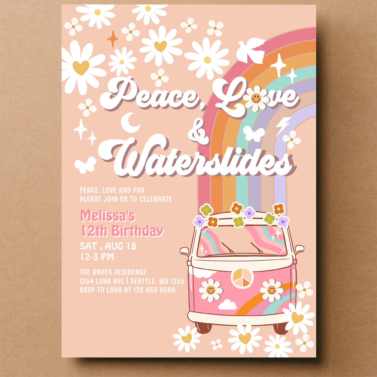 Peace Love Waterslides Water Groovy Birthday Invitation