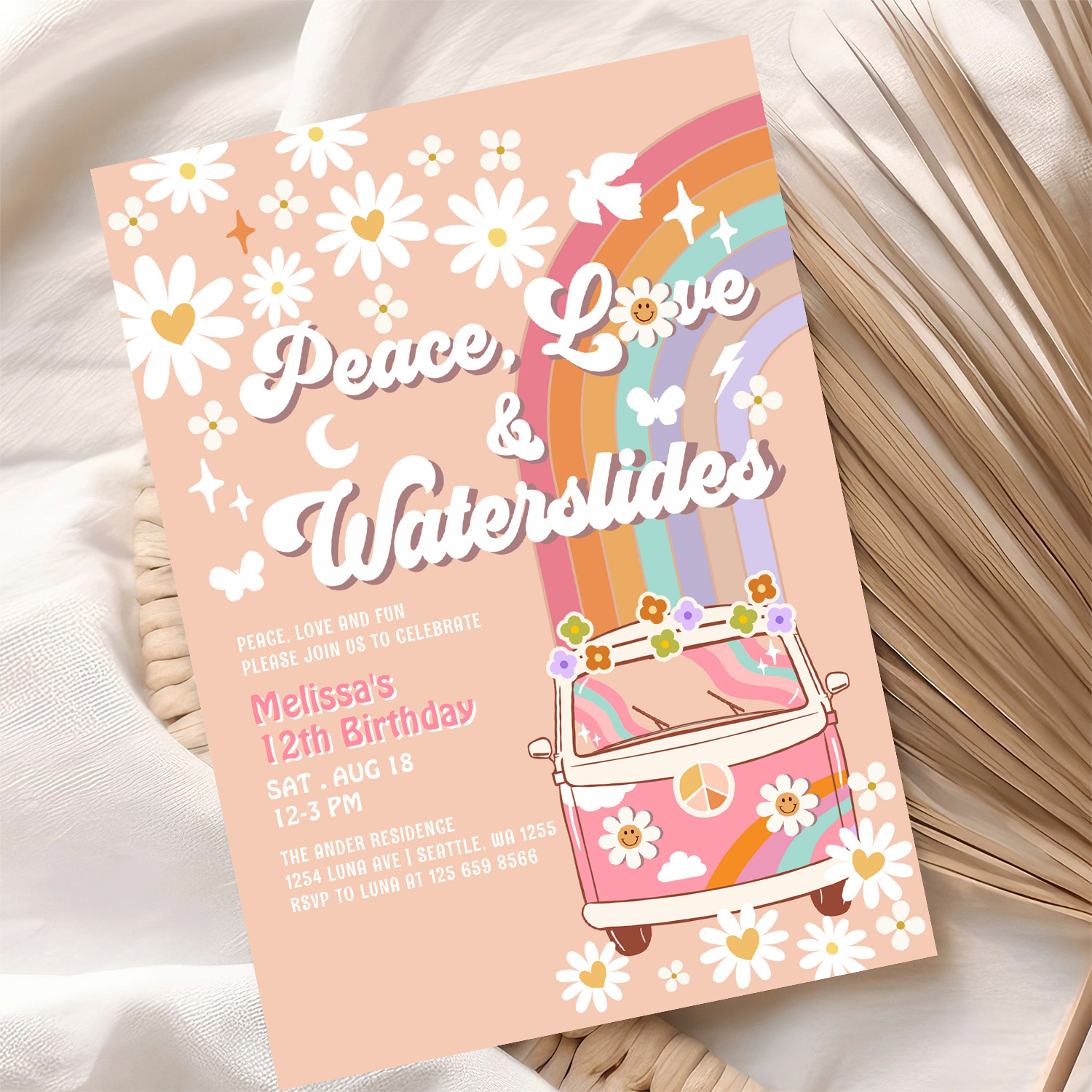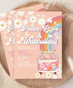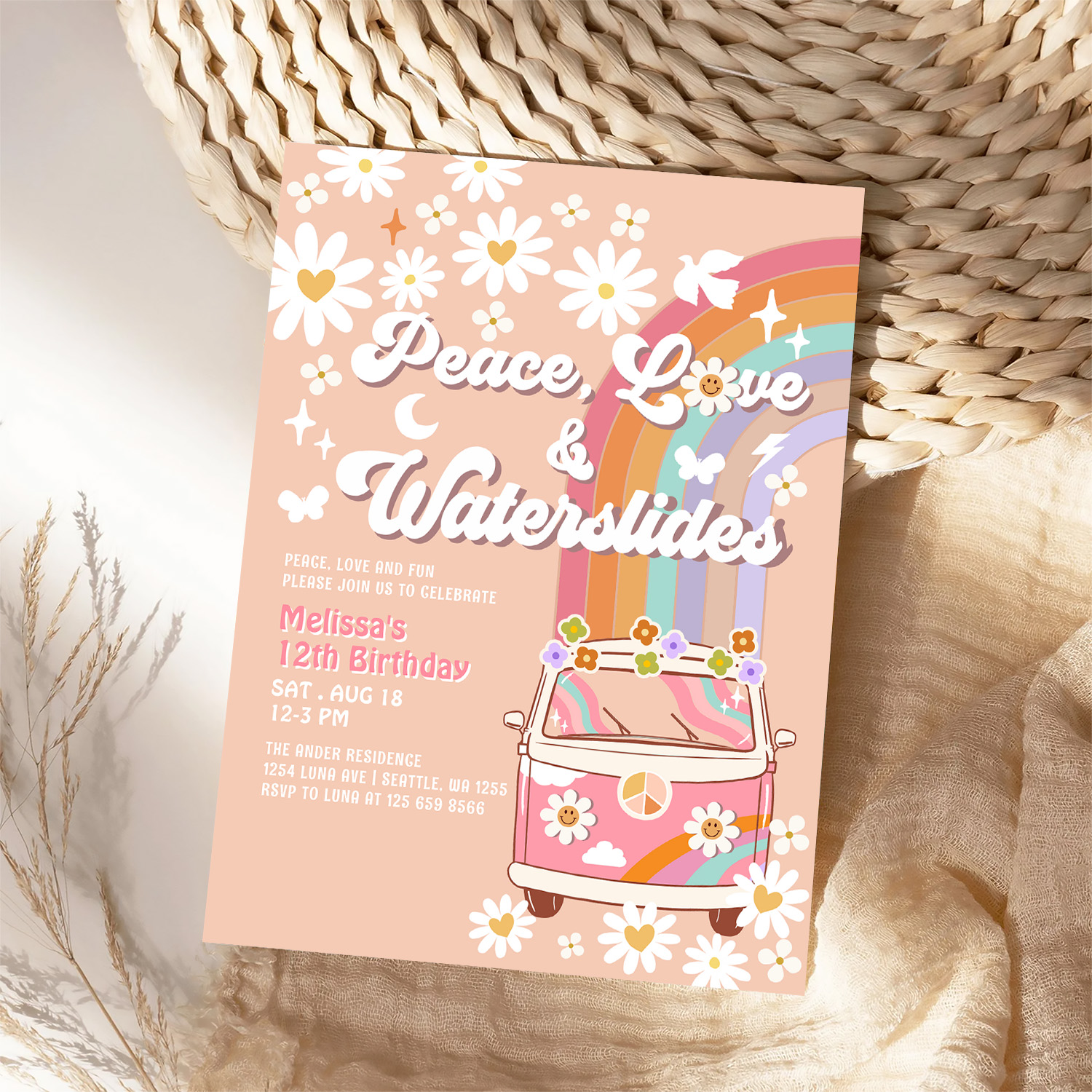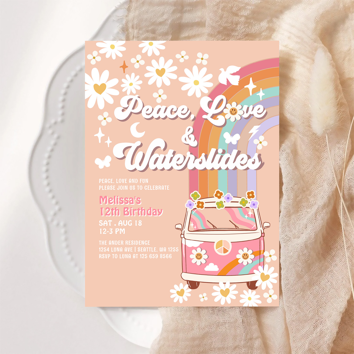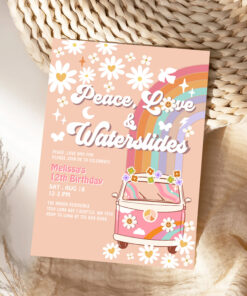 Peace Love Waterslides Water Groovy Birthday Invitation