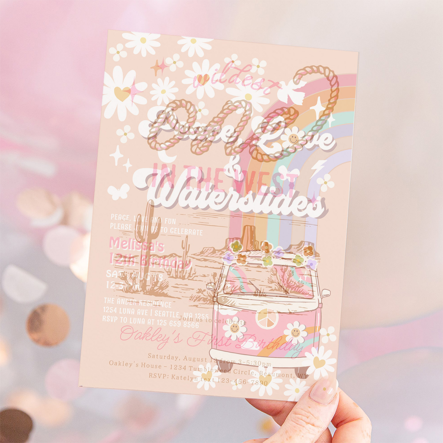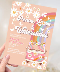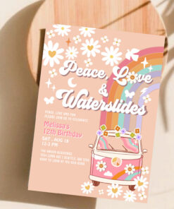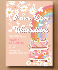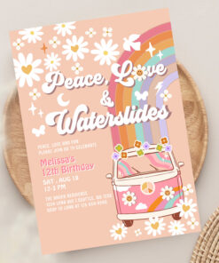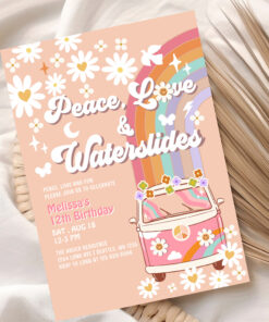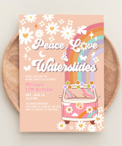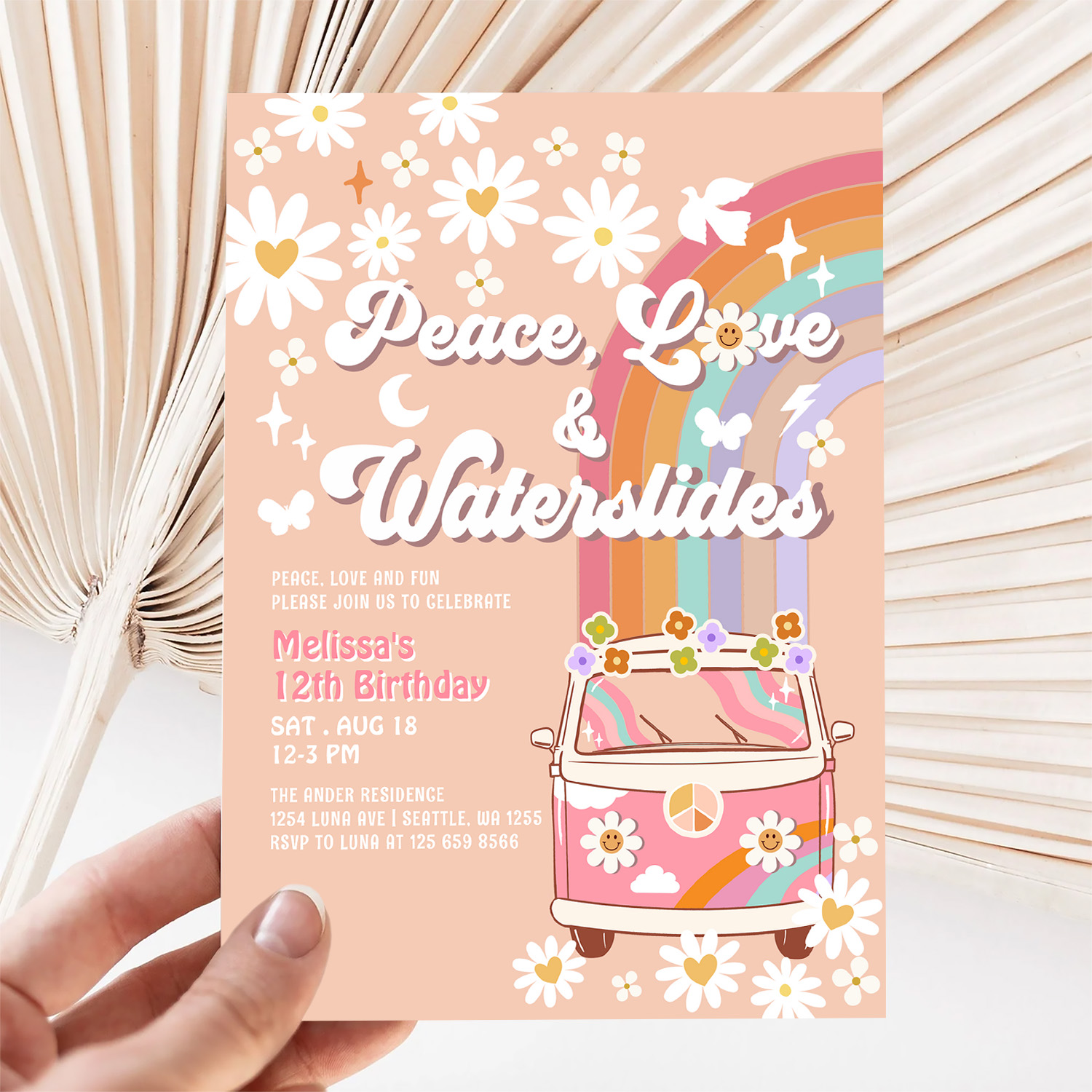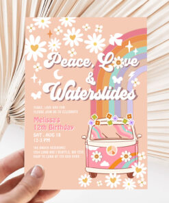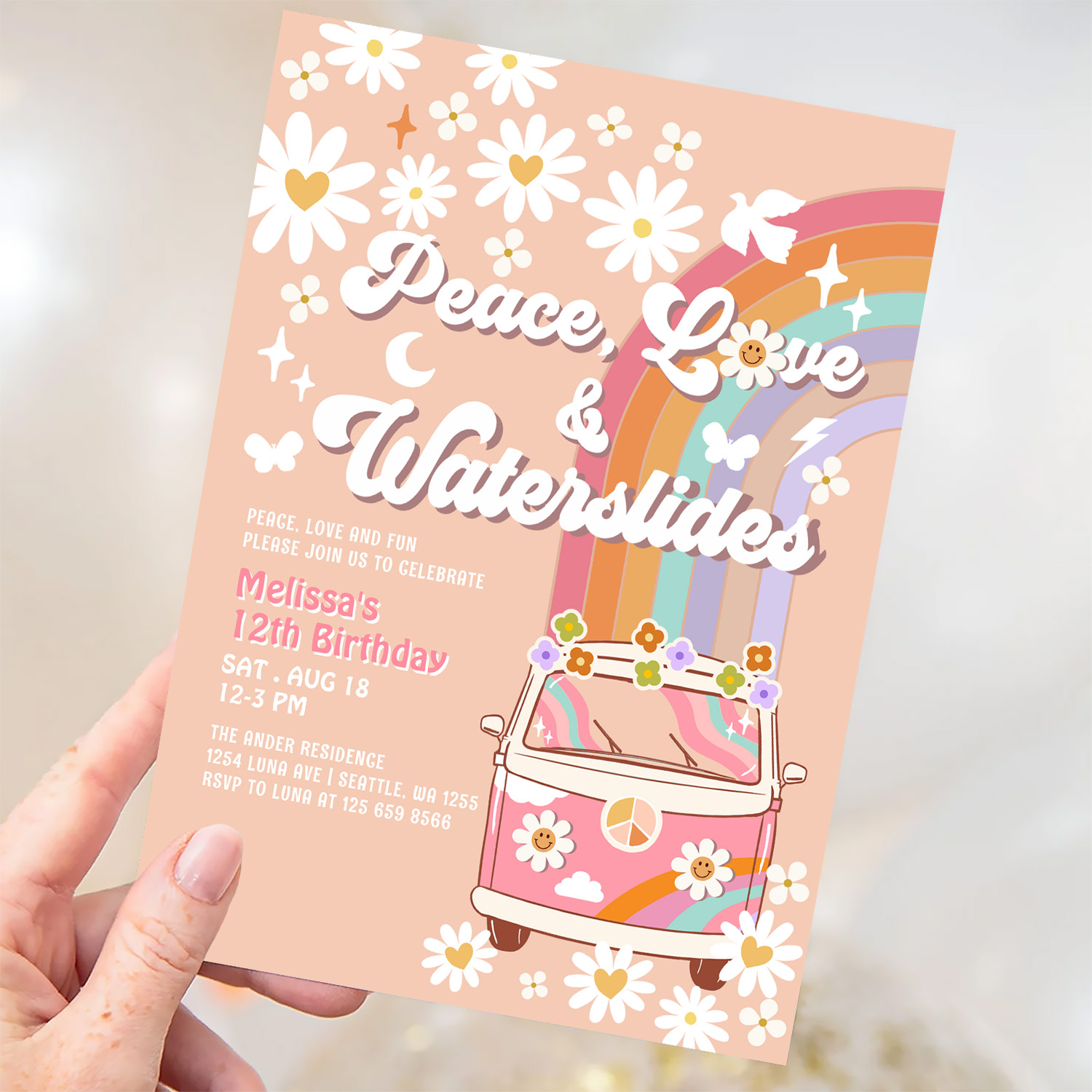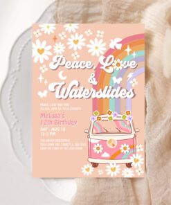 Peace Love Waterslides Water Groovy Birthday Invitation
