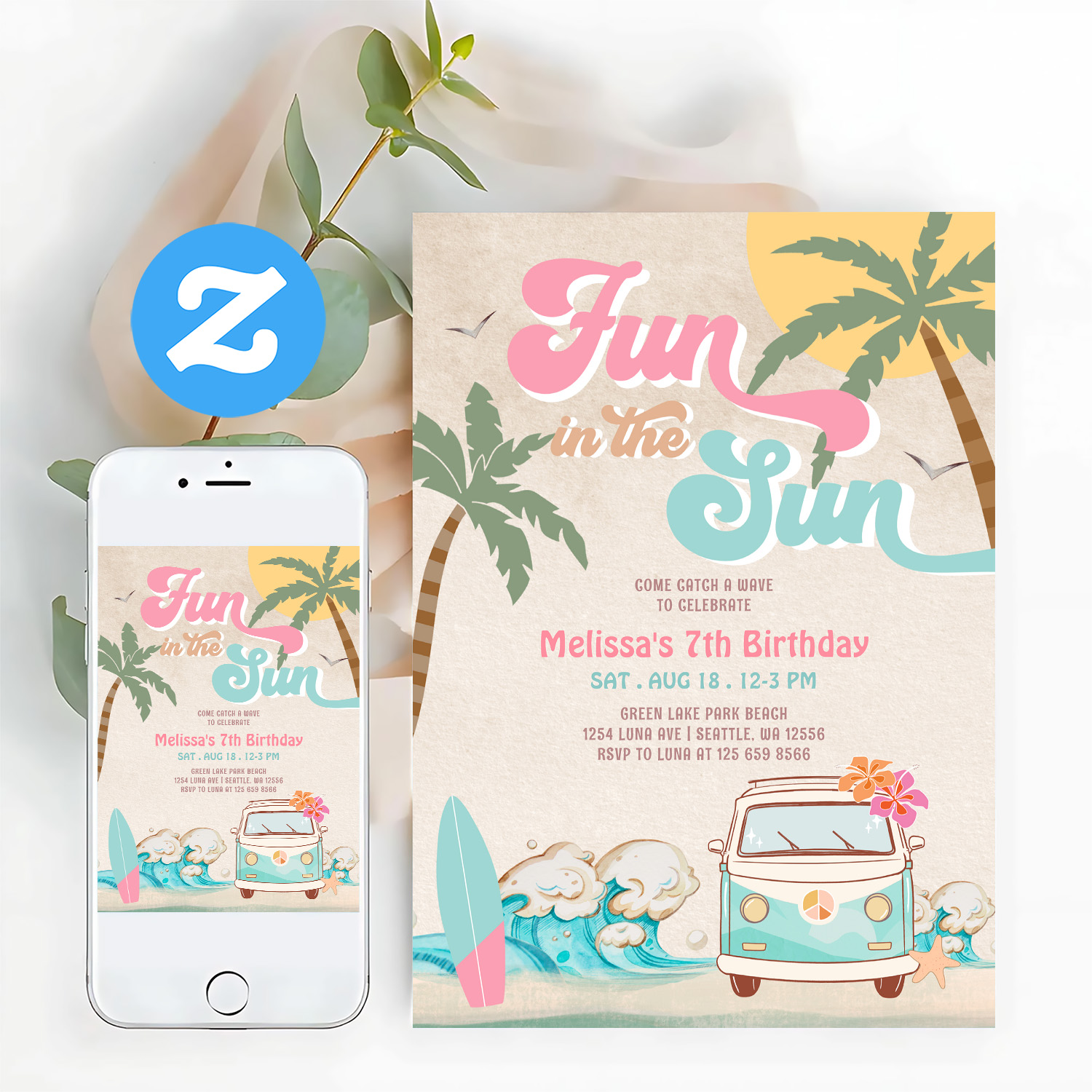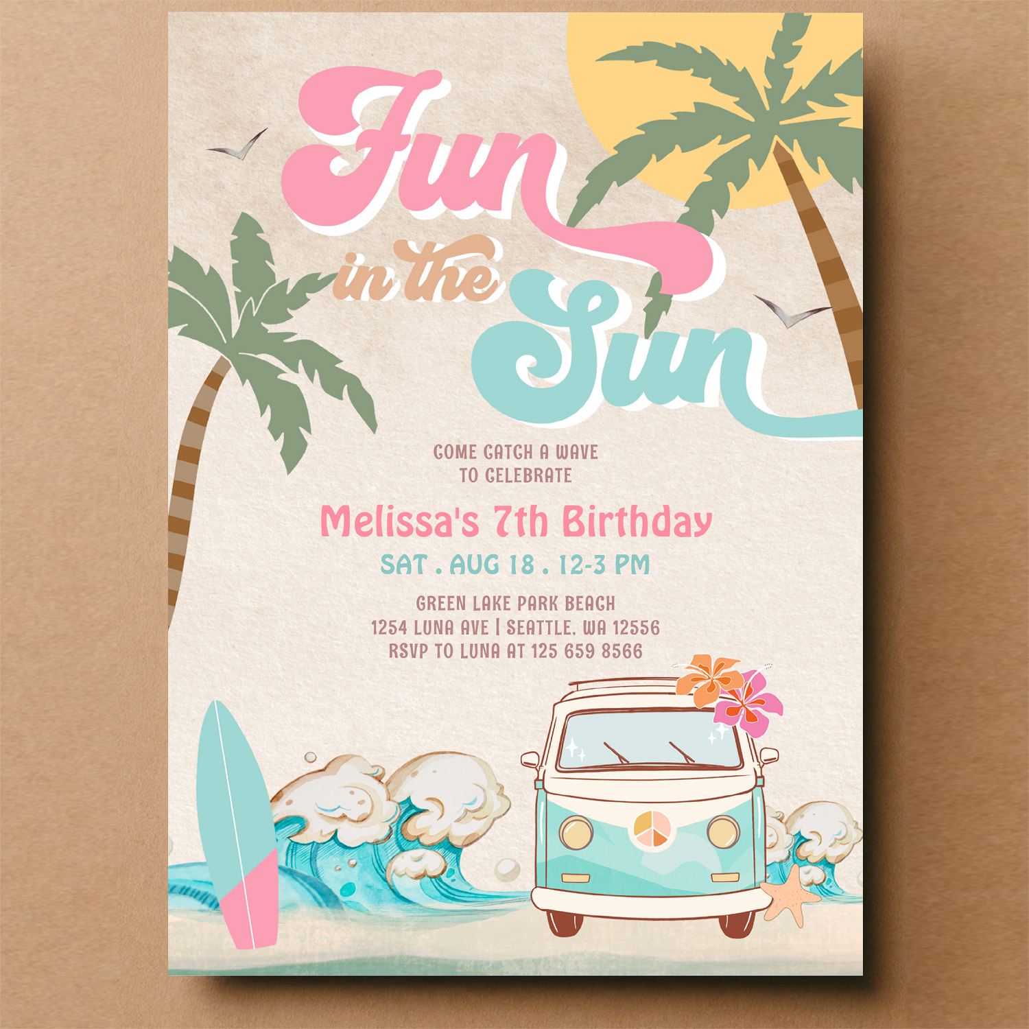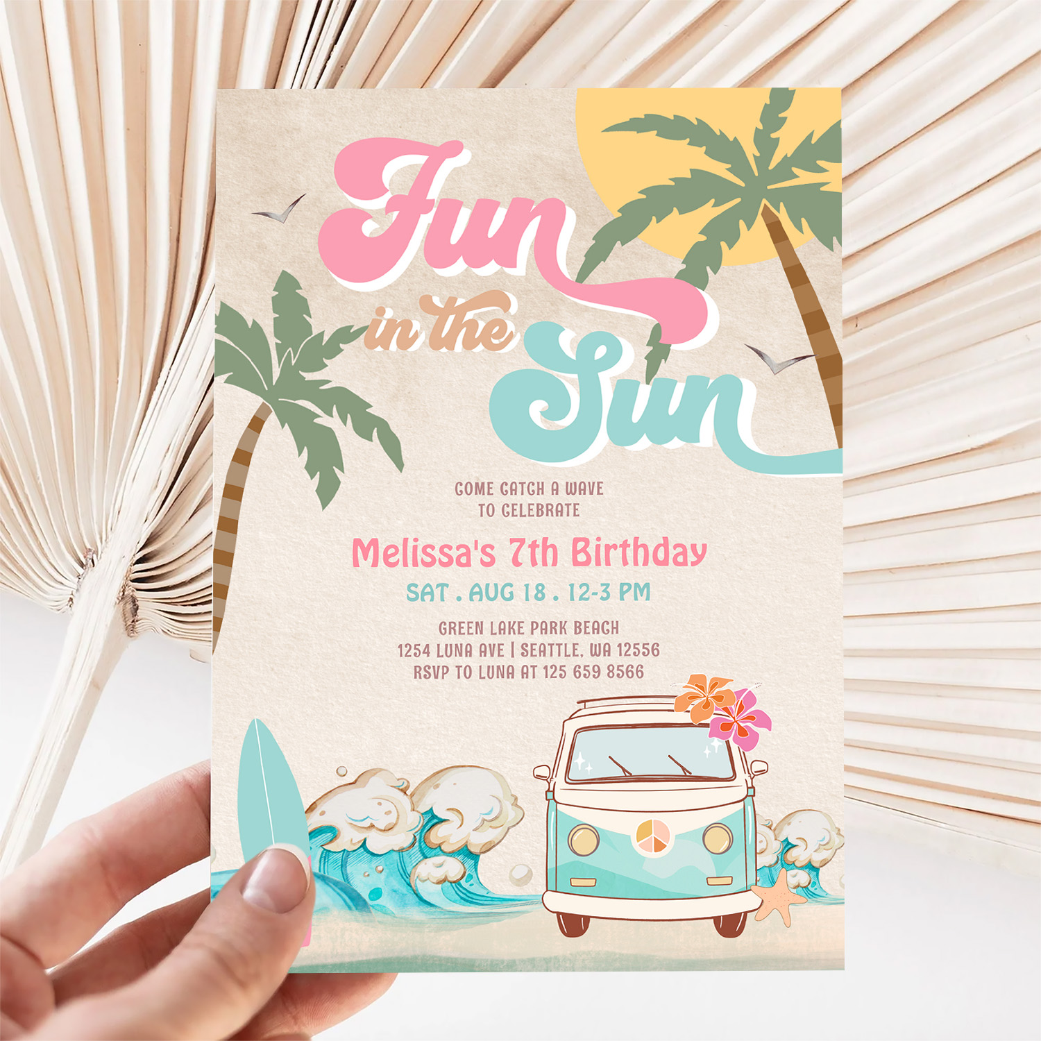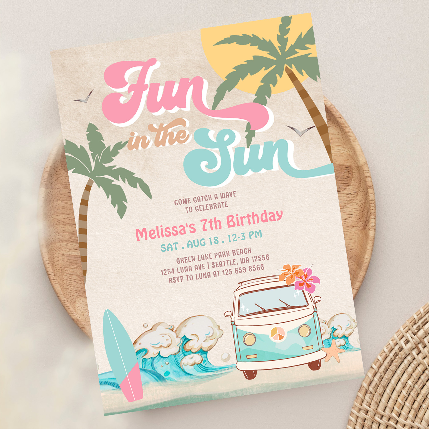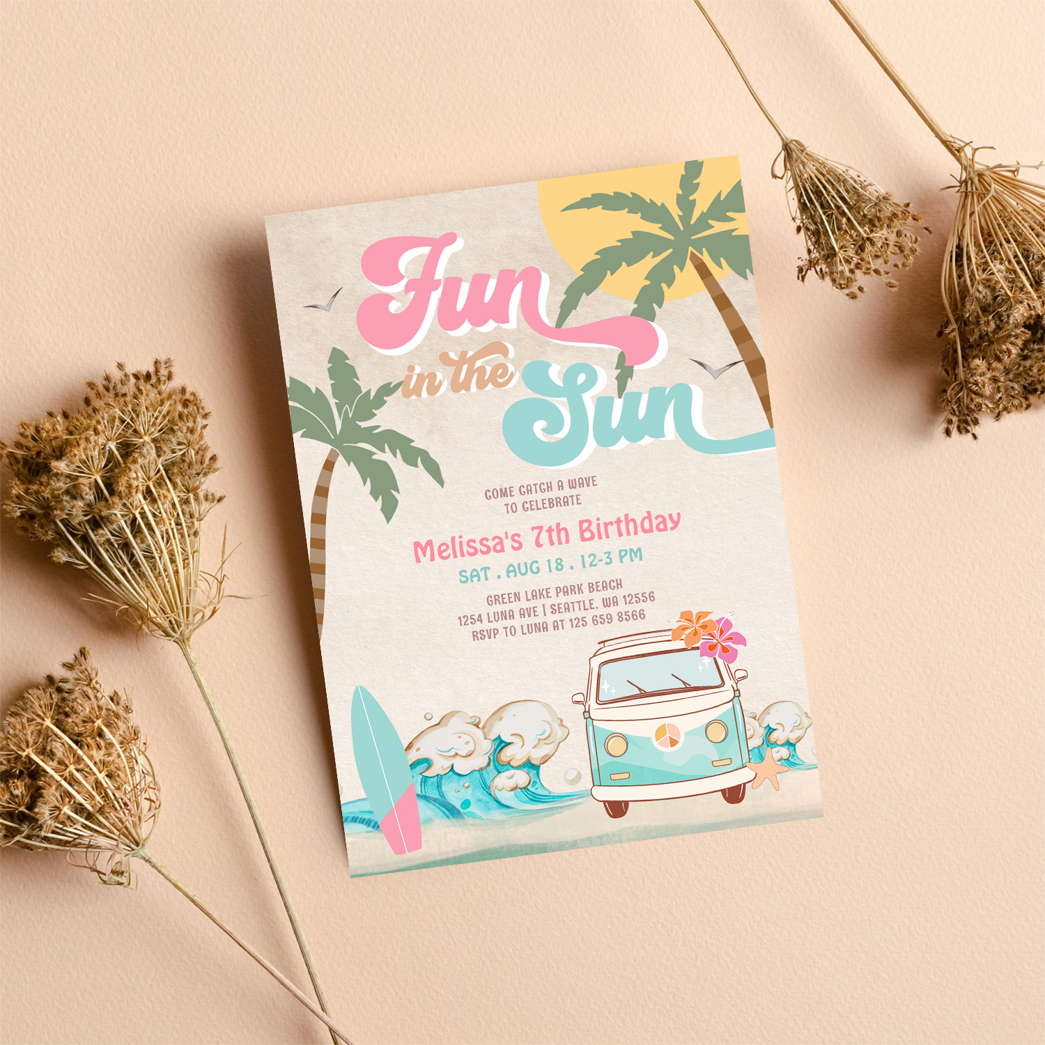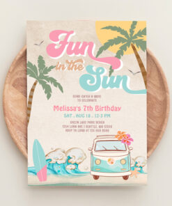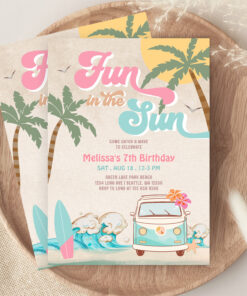 Pink Mint Aqua Girl Fun In The Sun Birthday Invitation