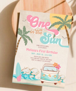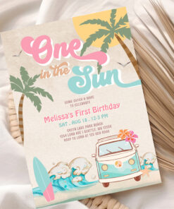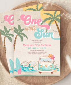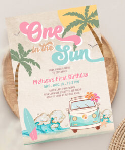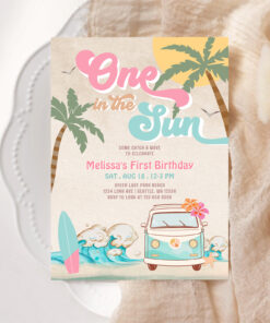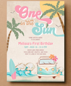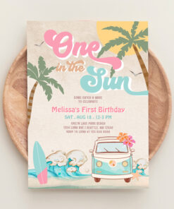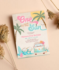 Pink Mint One In The Sun Surfing 1st Birthday Invitation - Related products