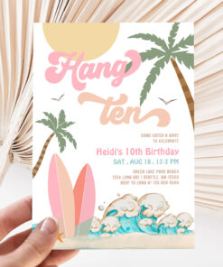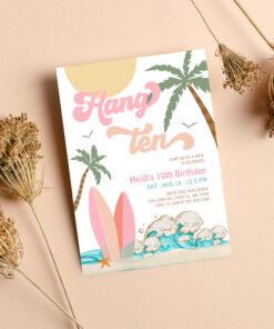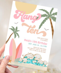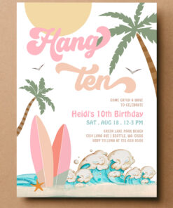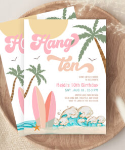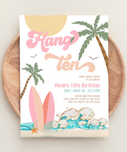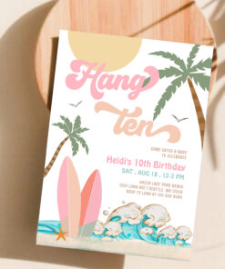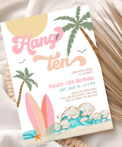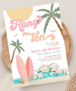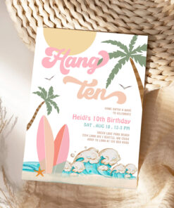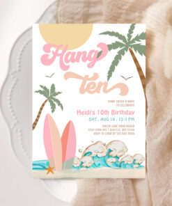 Pink Peach Girl Hang Ten Surfing Birthday Party Invitation - Related products