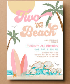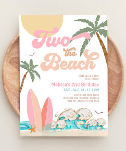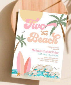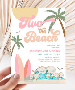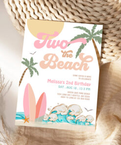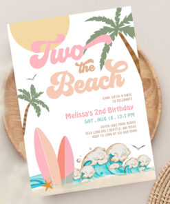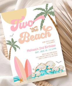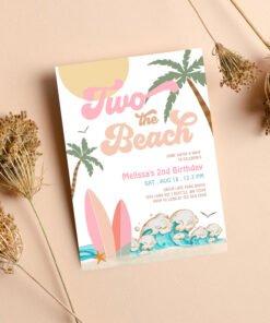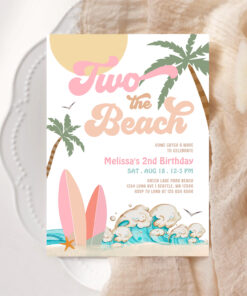 Pink Peach Girl Two The Beach Surfing 2nd Birthday Invitation - Related products