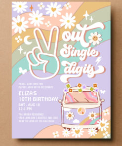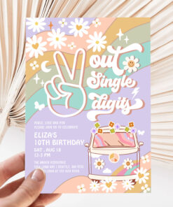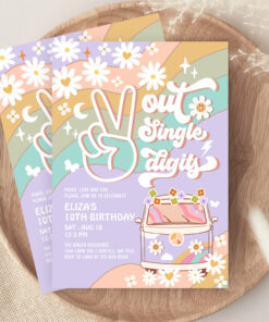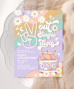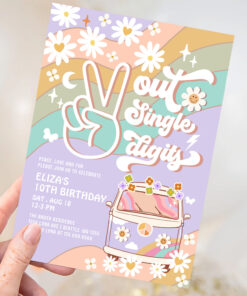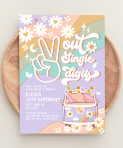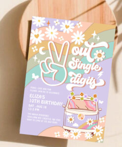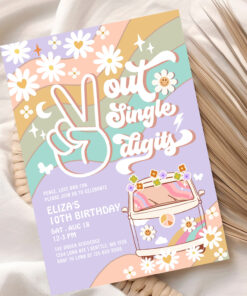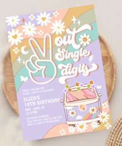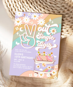 Purple Peace Out Single Digit Groovy 10th Birthday Invitation - Related products