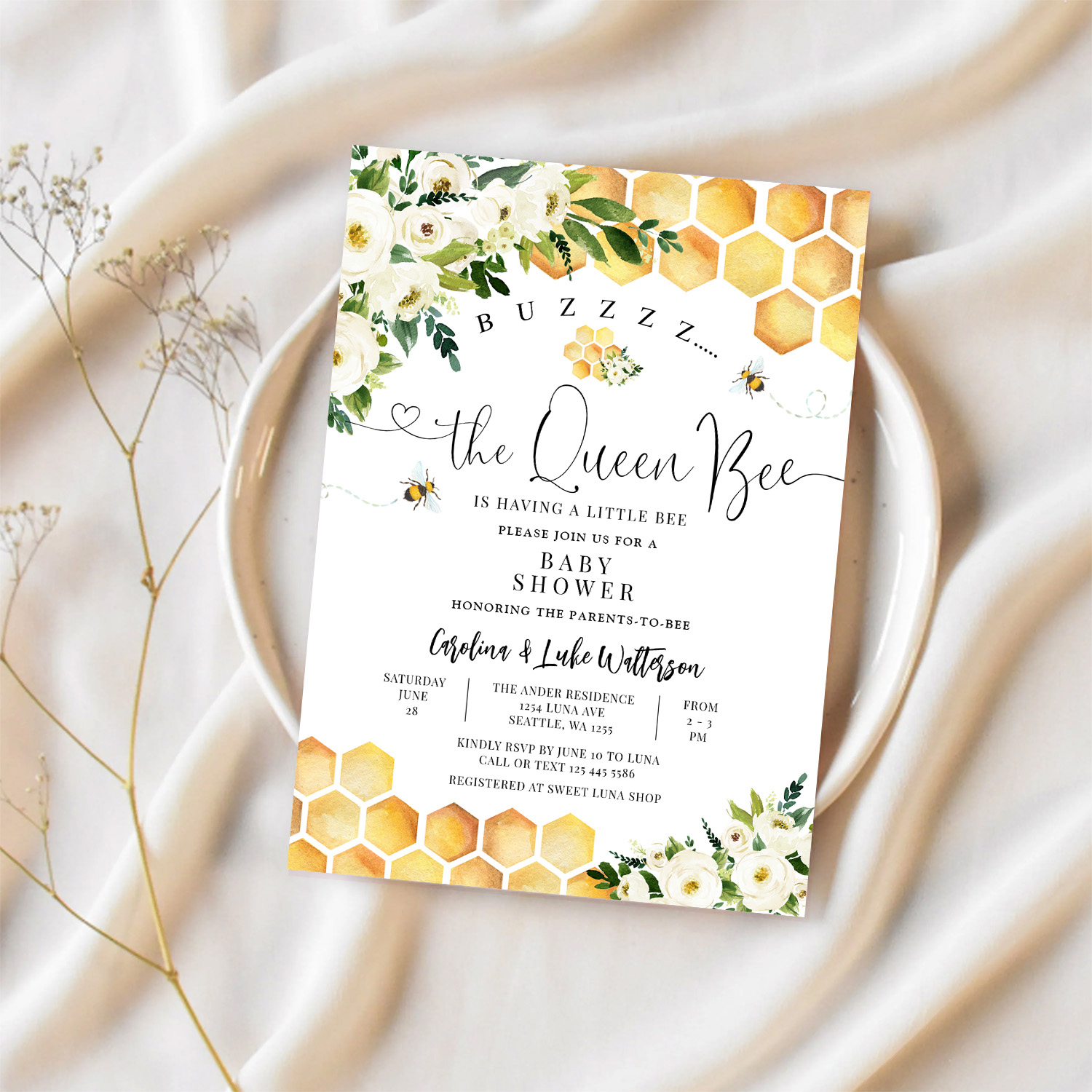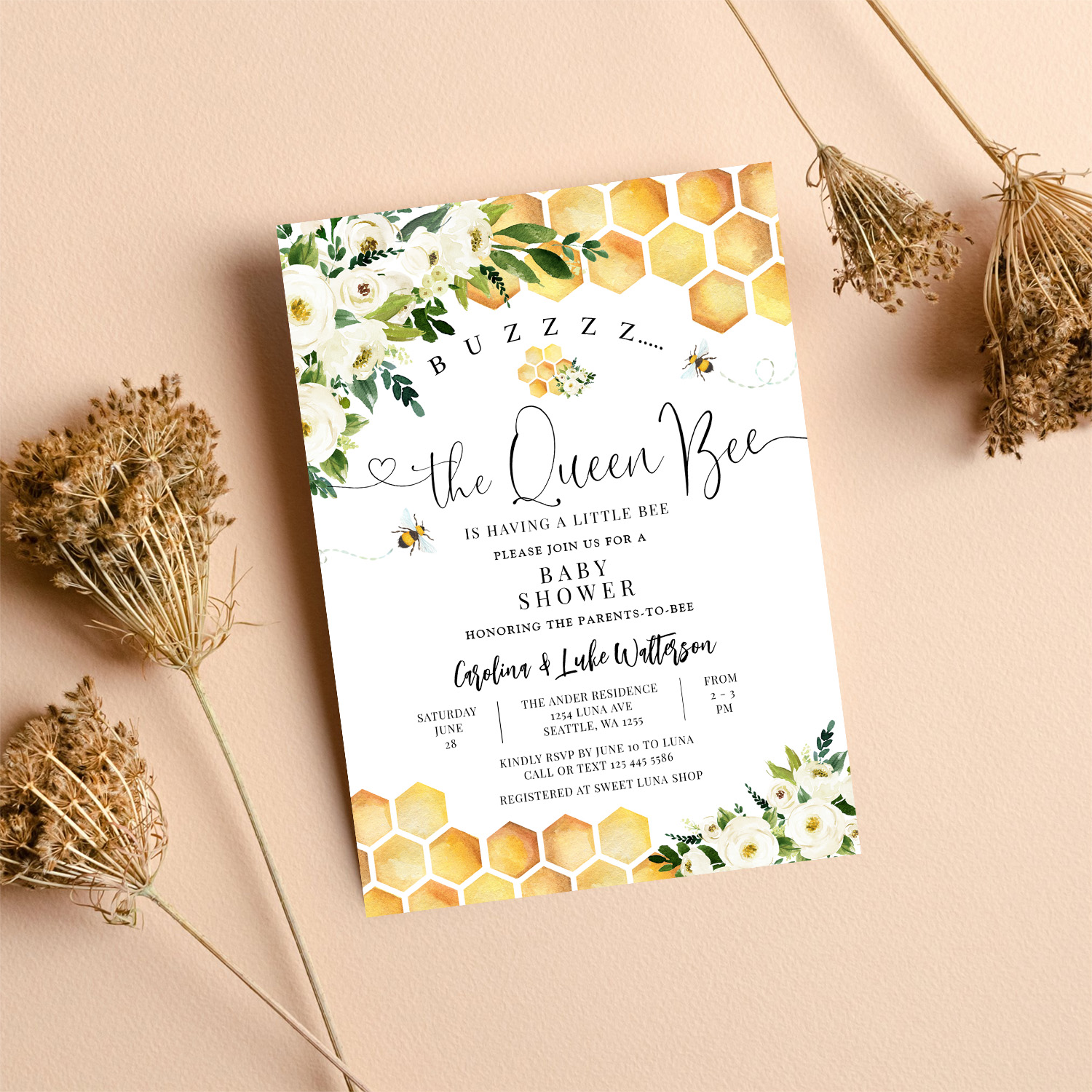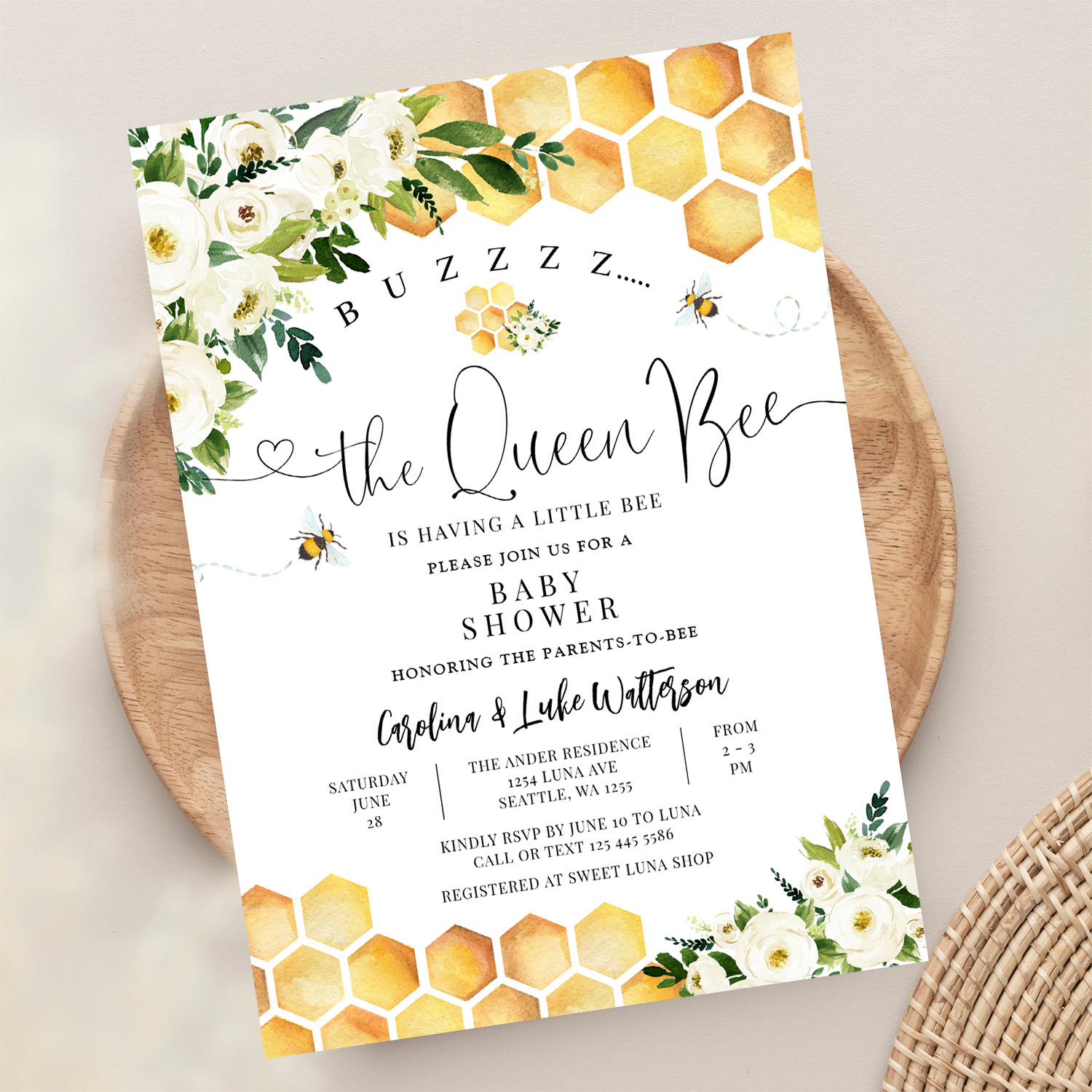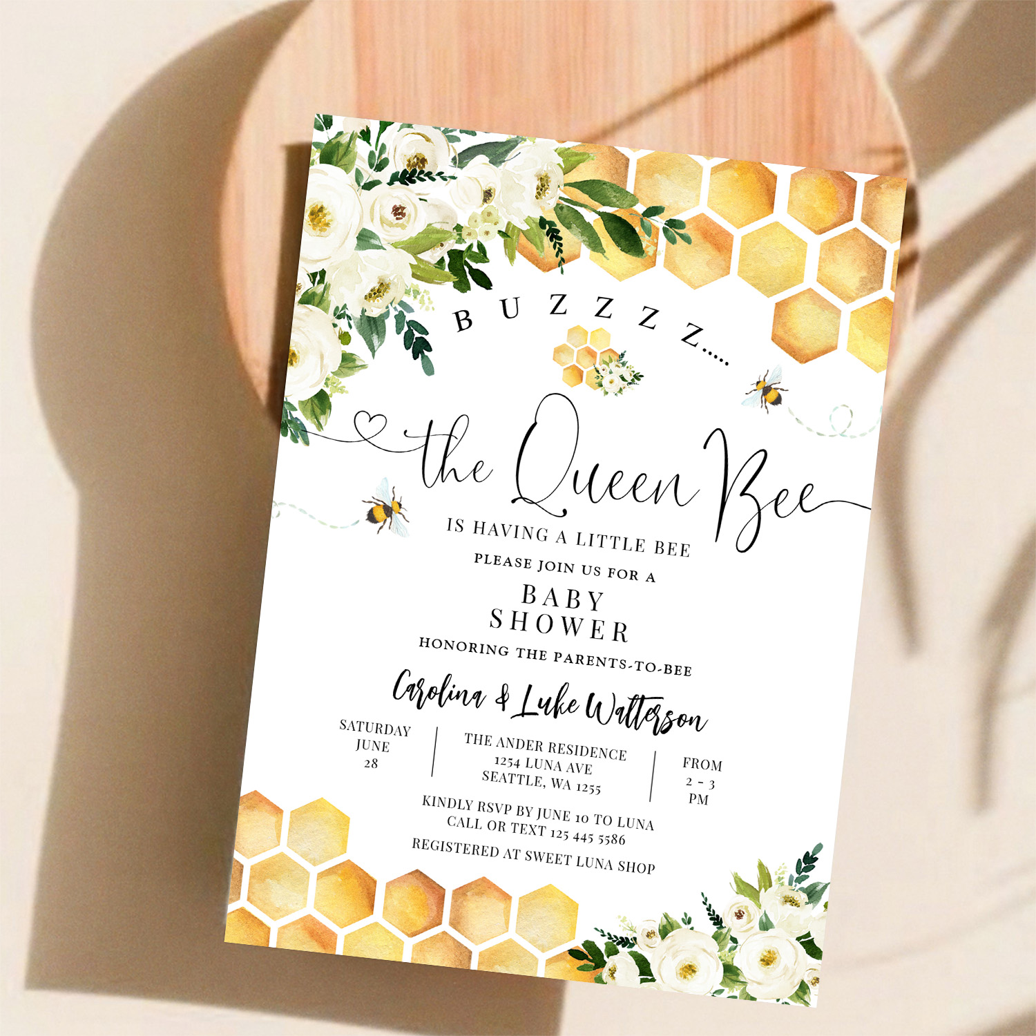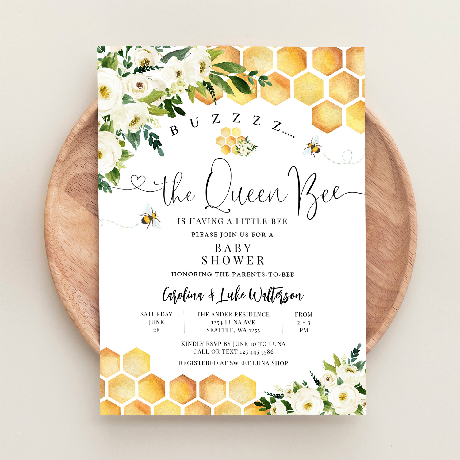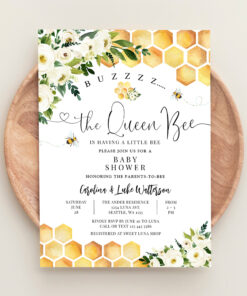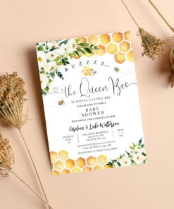 Queen Bee Gender Neutral Mama To Bee Baby Shower Invitation