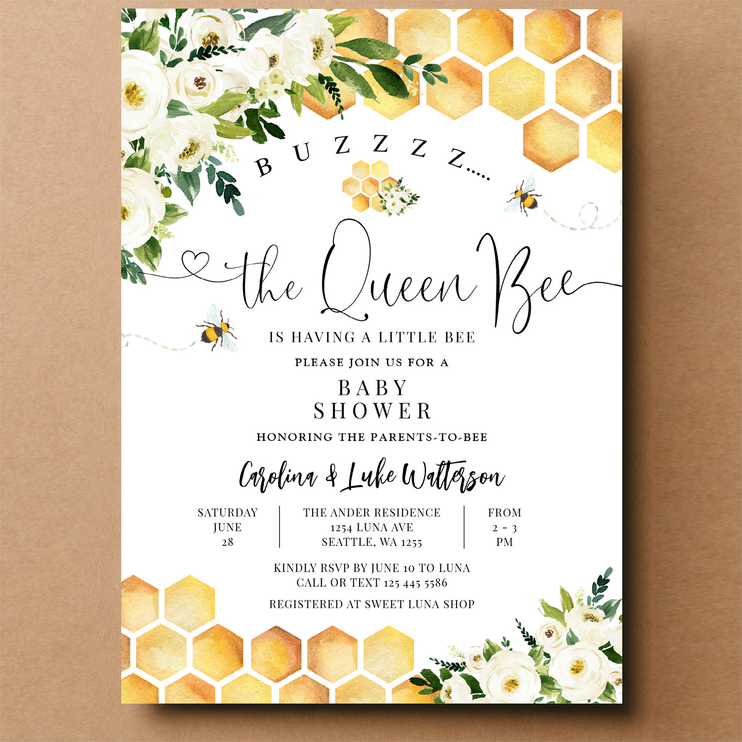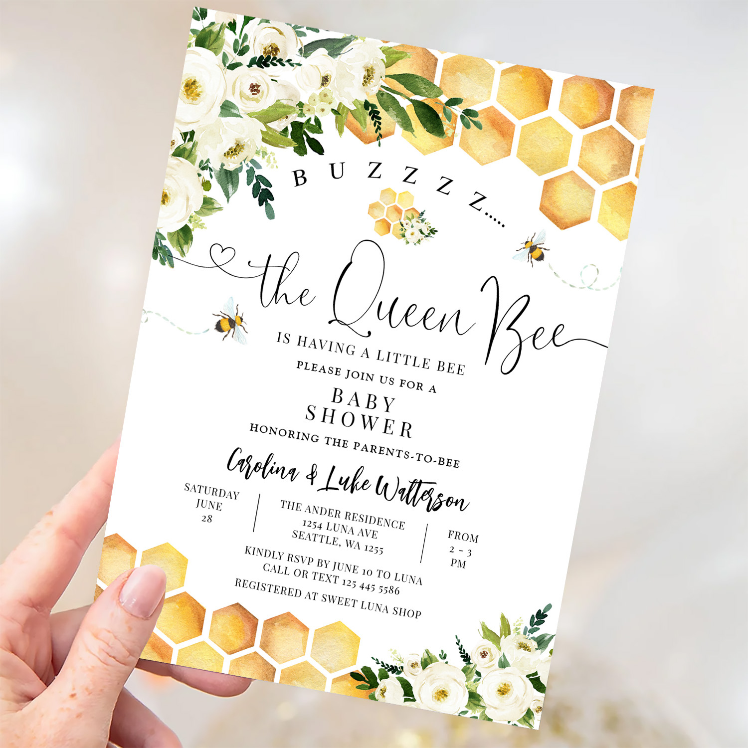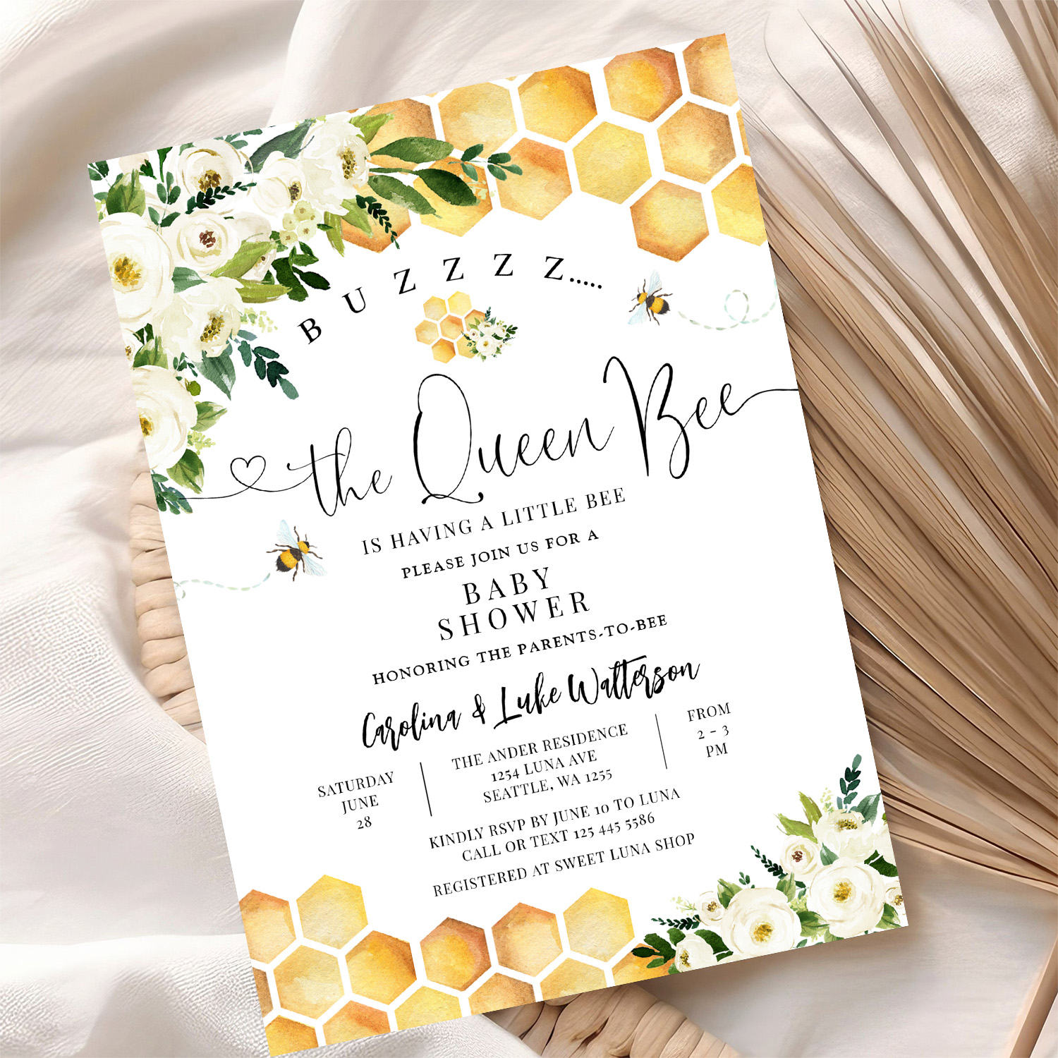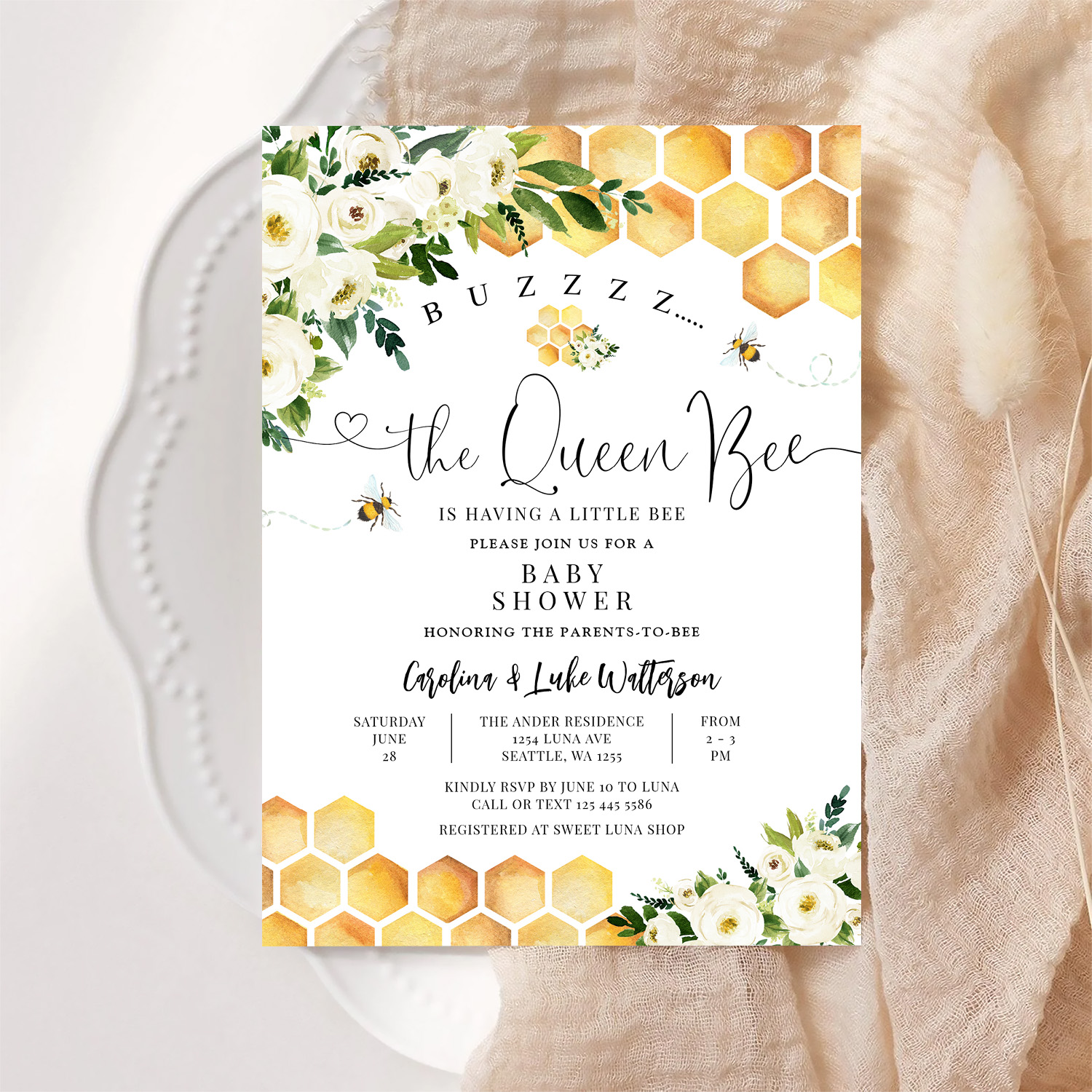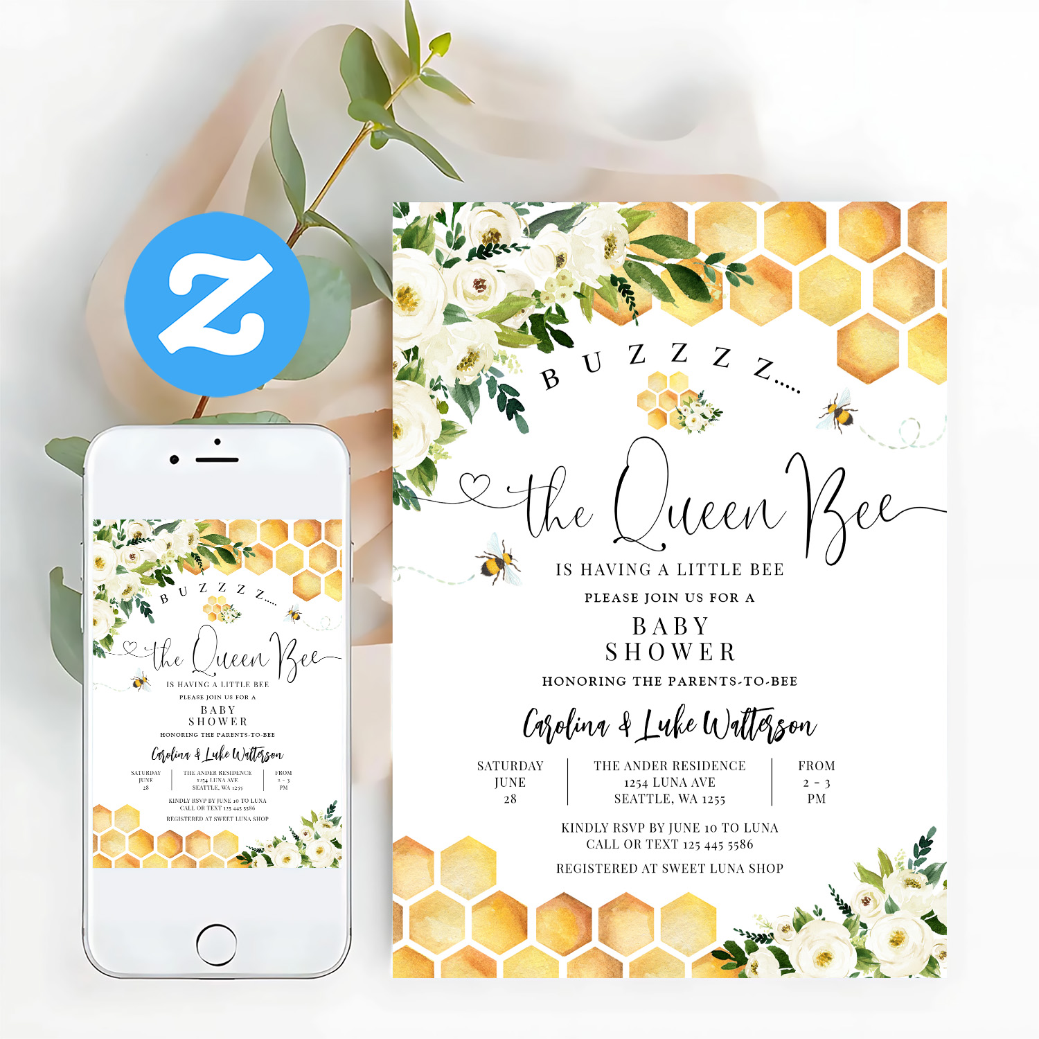 Queen Bee Gender Neutral Mama To Bee Baby Shower Invitation