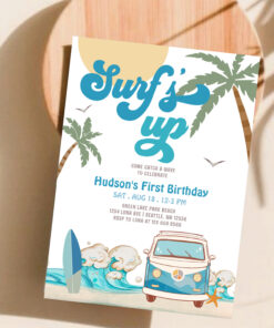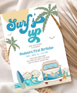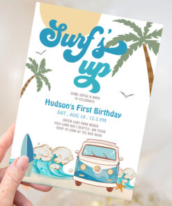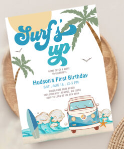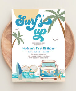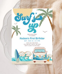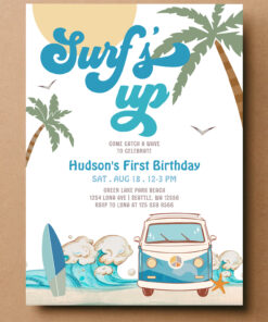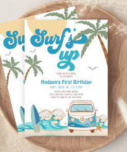 Retro Boy Any Age Surfs Up Surfing Birthday Party Invitation - Related products