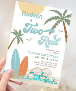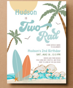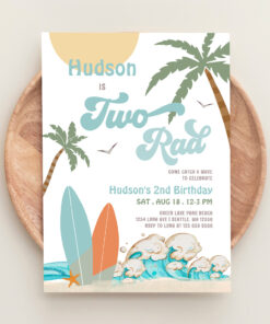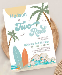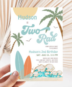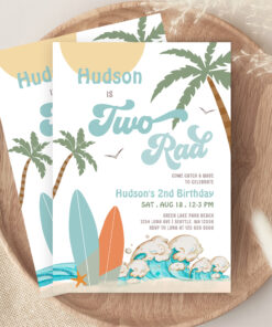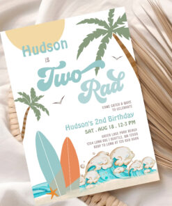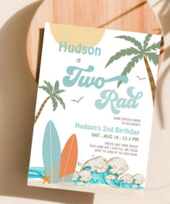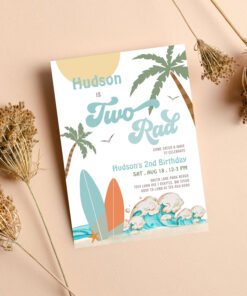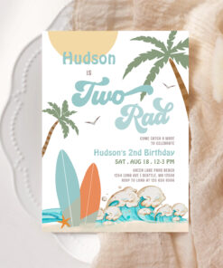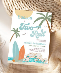 Retro Boy Surf Surfing 2nd Birthday Two Rad Party Invitation - Related products