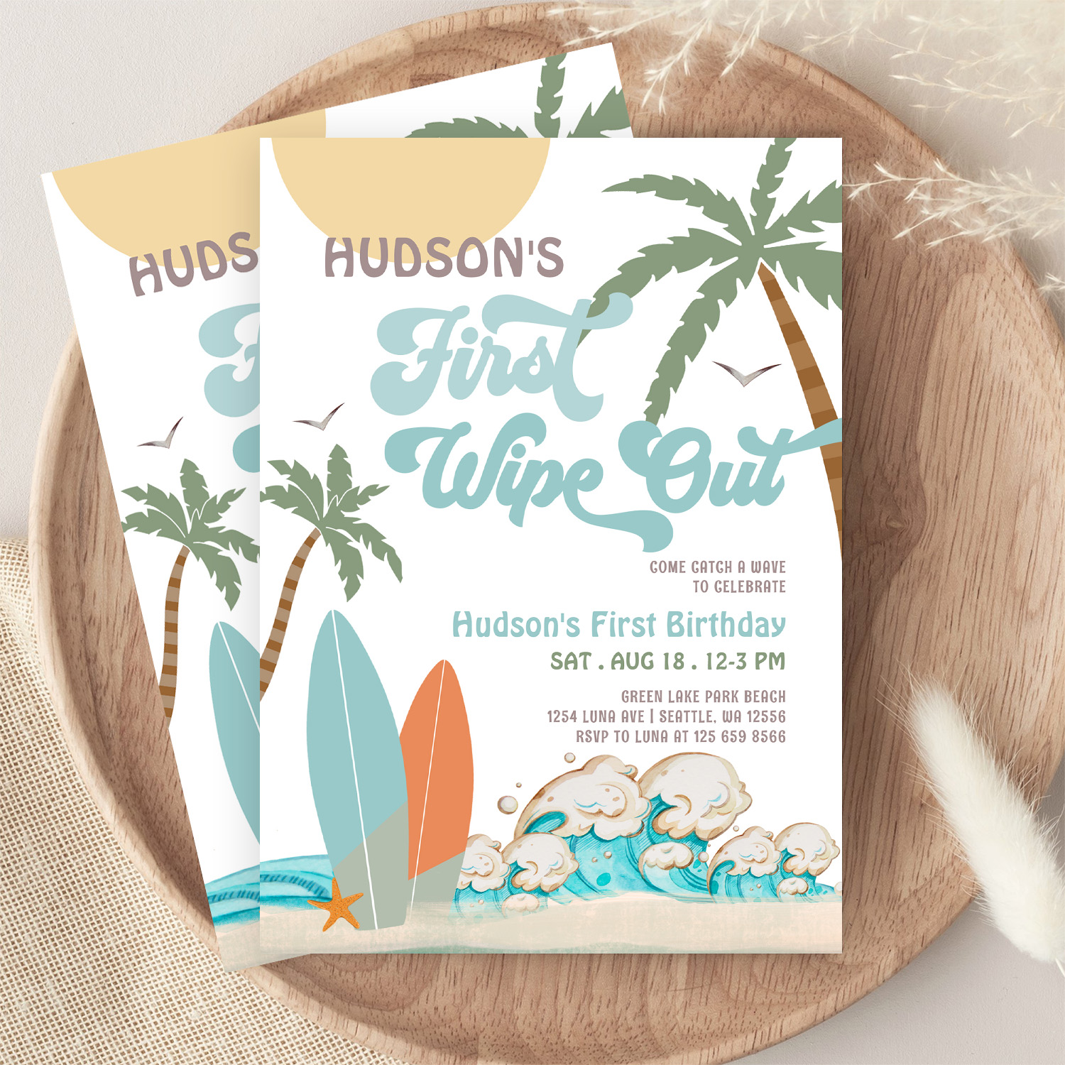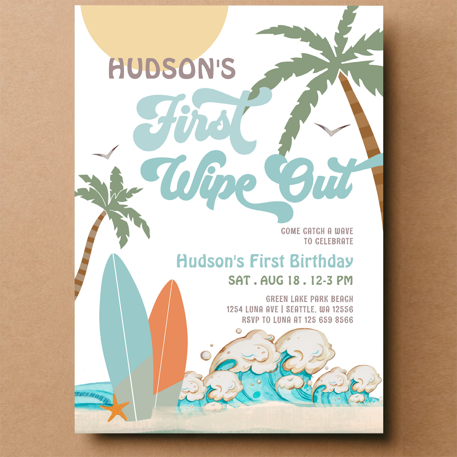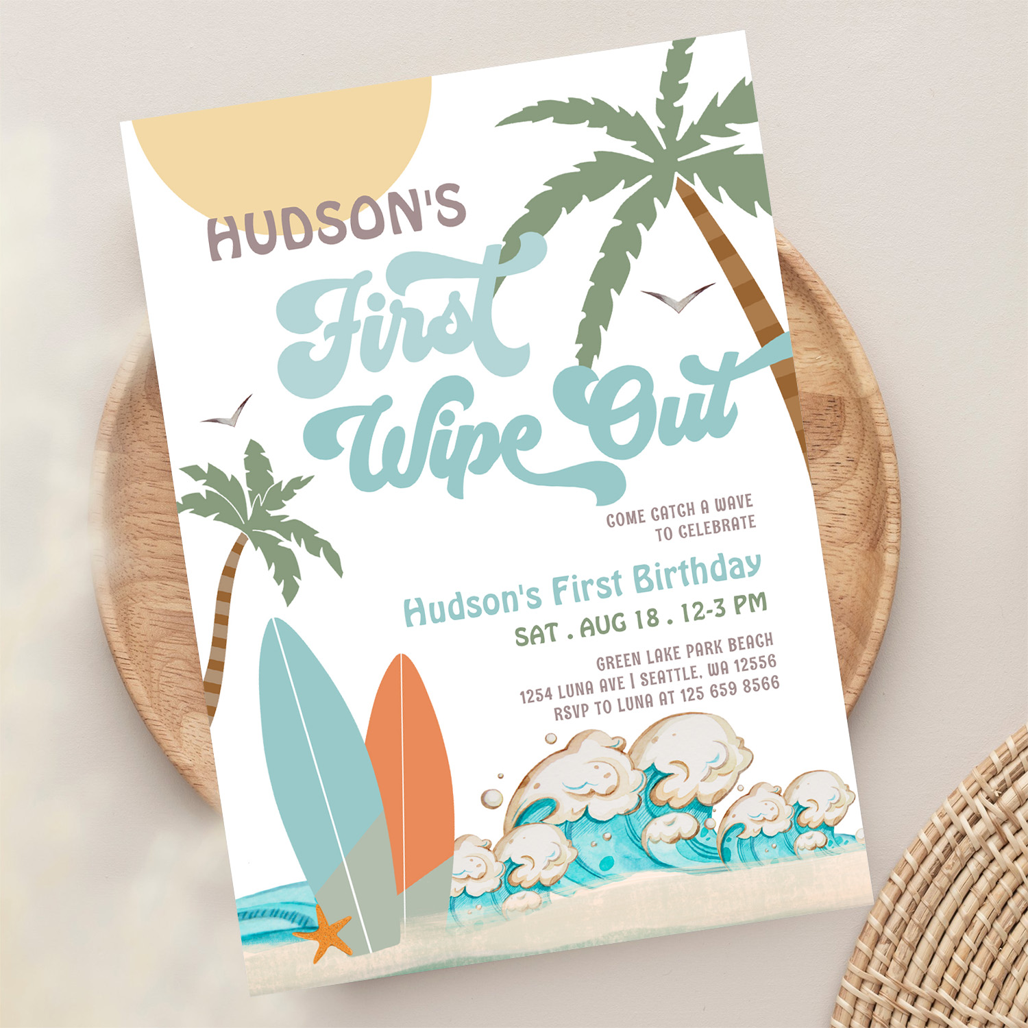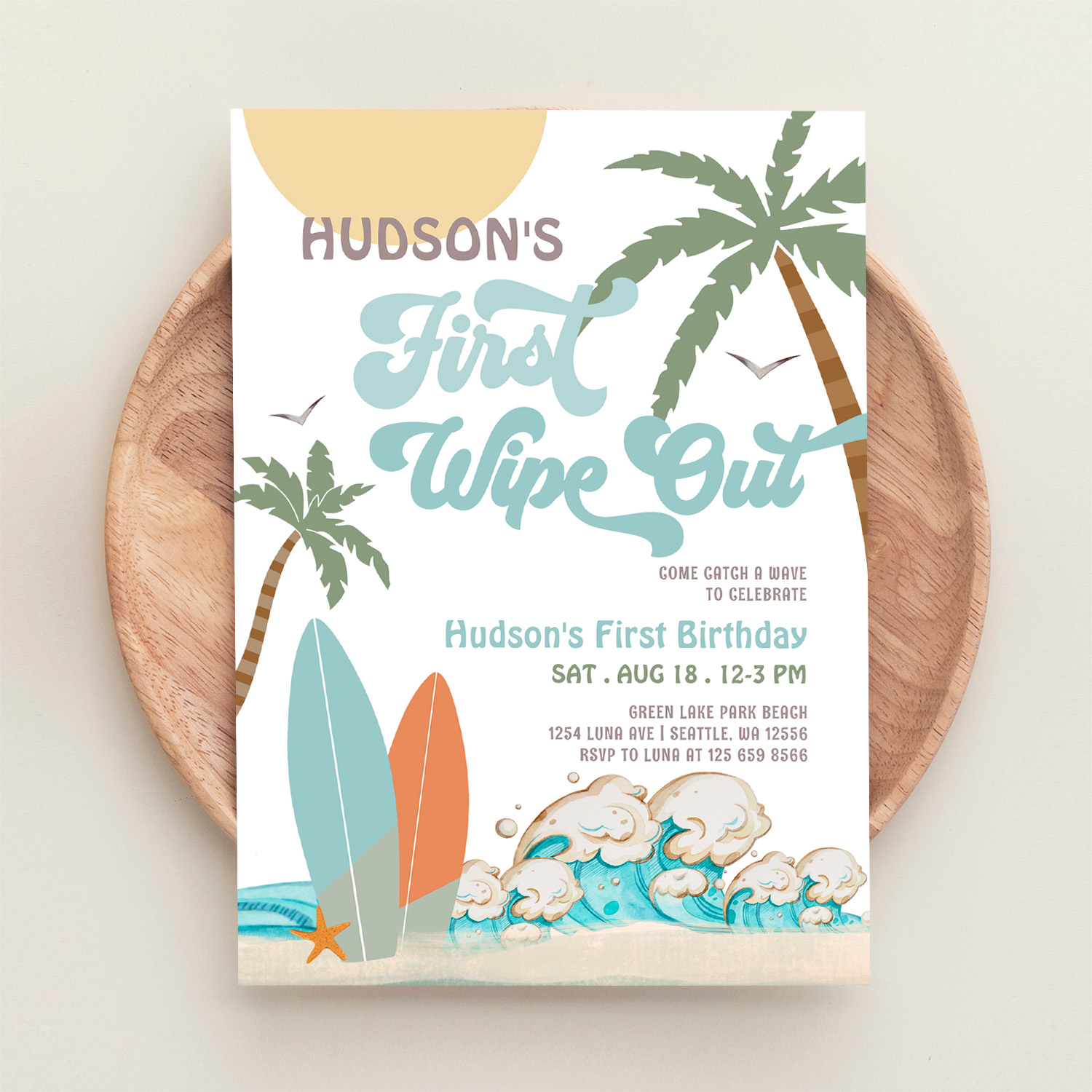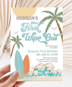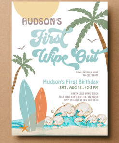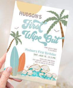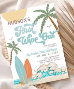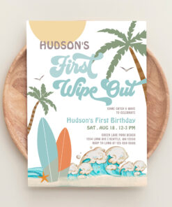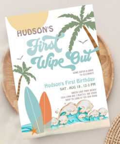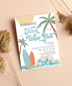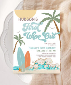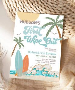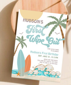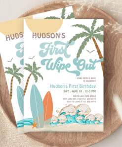 Retro First Wipe Out Surf Surfing 1st Birthday Invitation