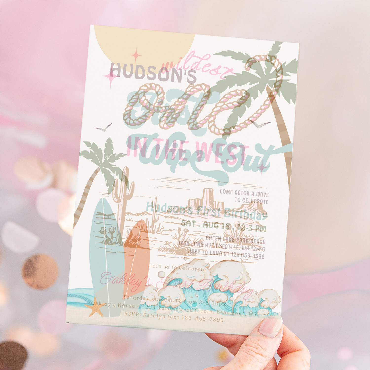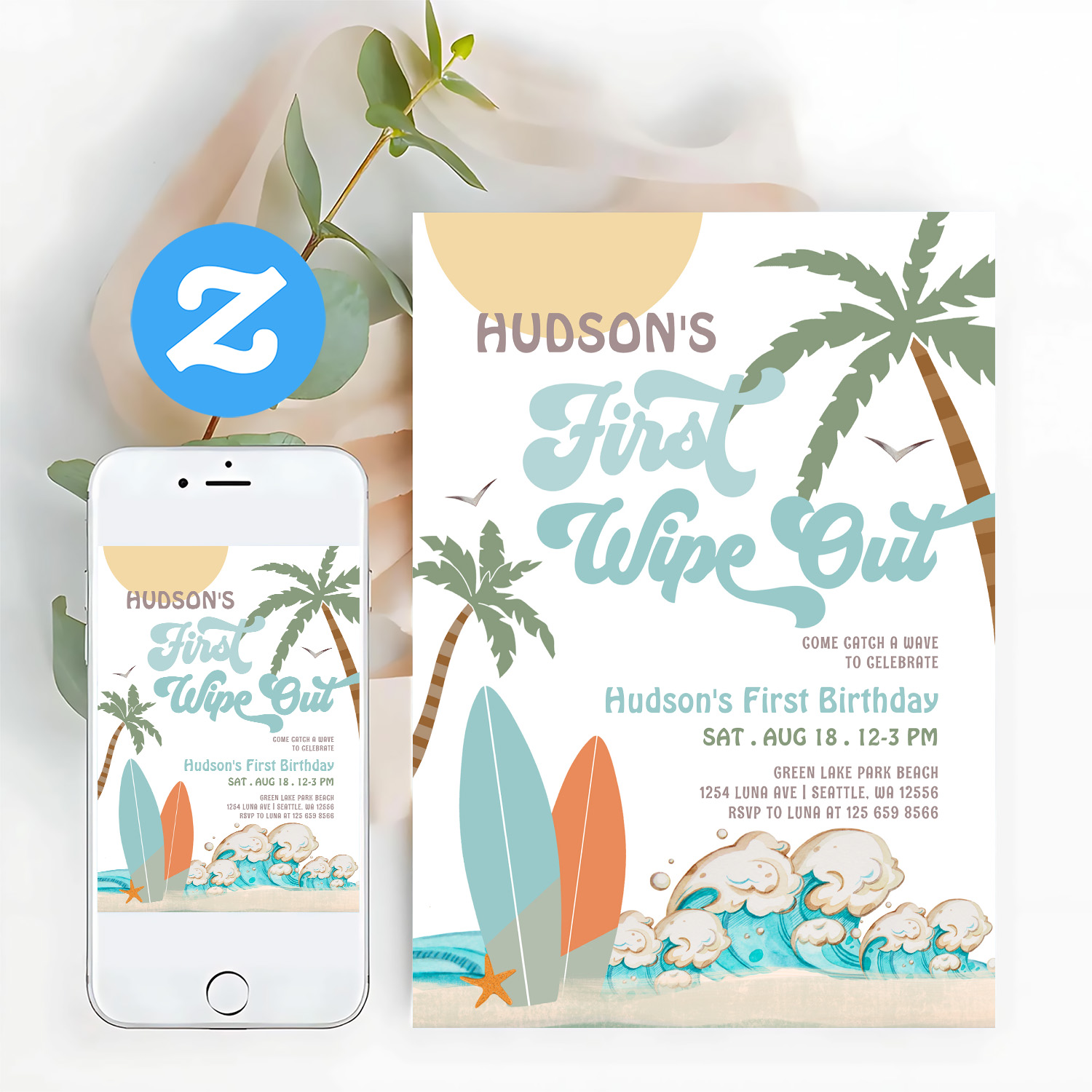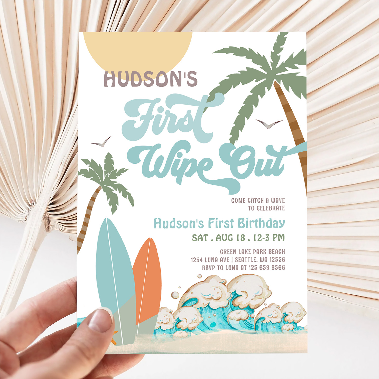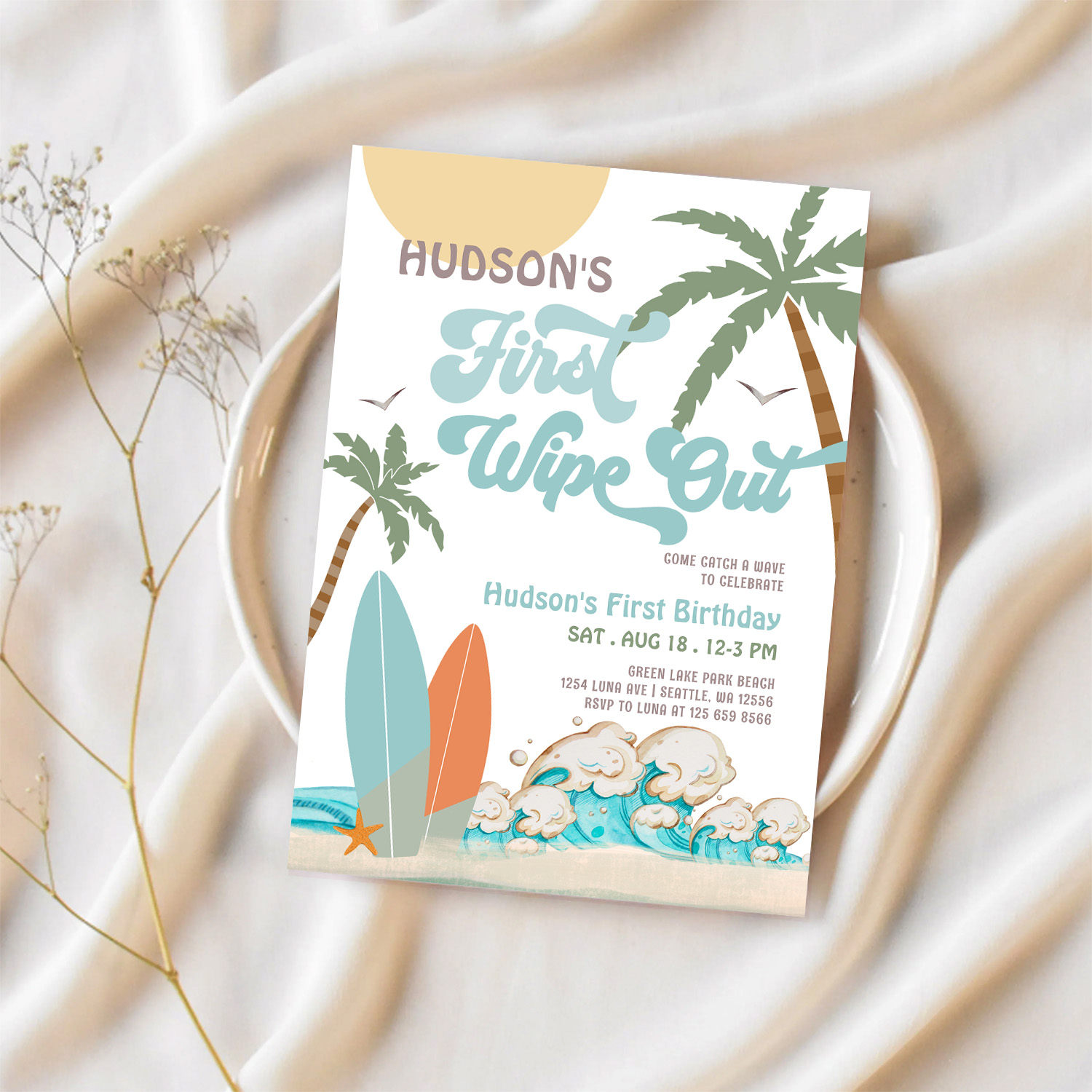 Retro First Wipe Out Surf Surfing 1st Birthday Invitation