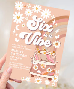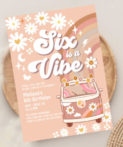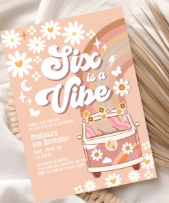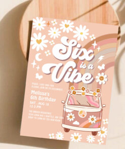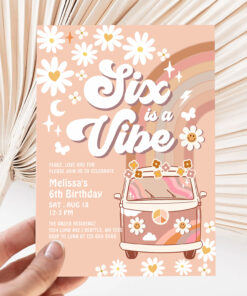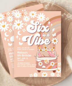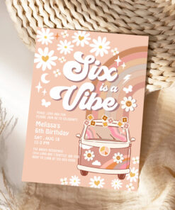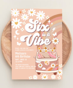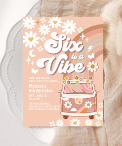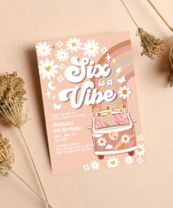 Six Is A Vibe Daisy Beige Cream 6th Birthday Invitation