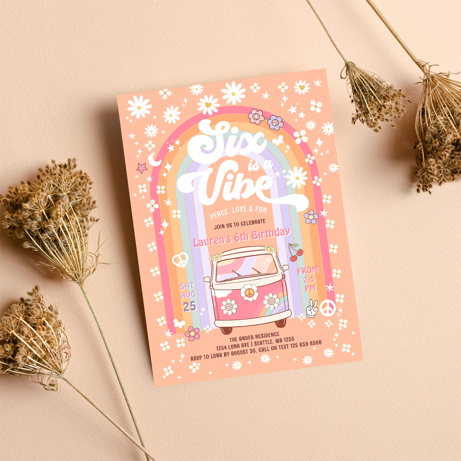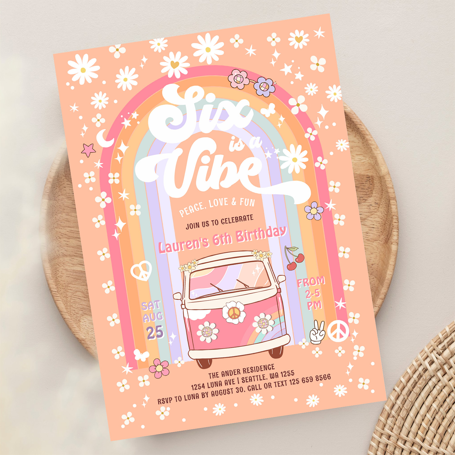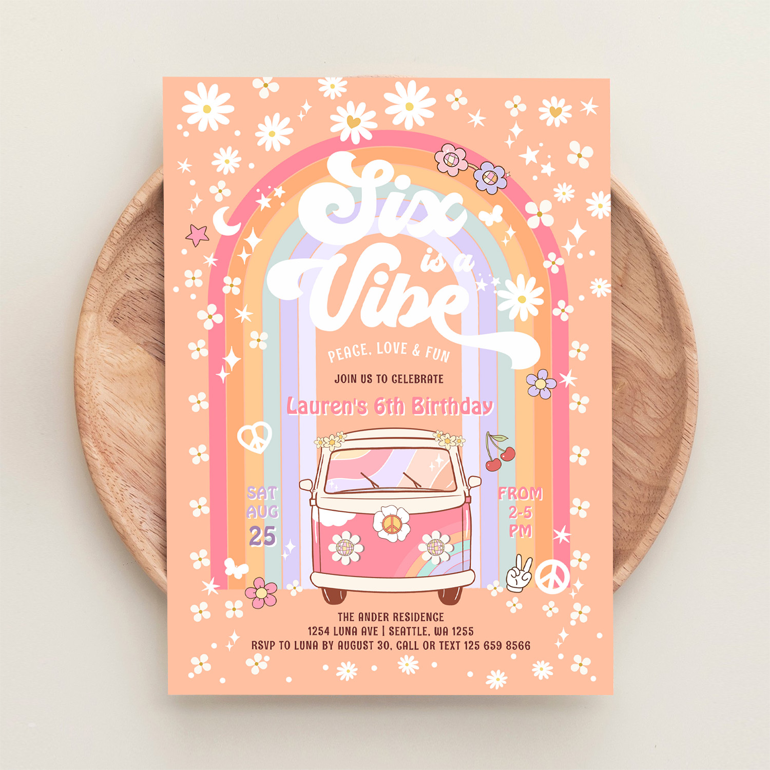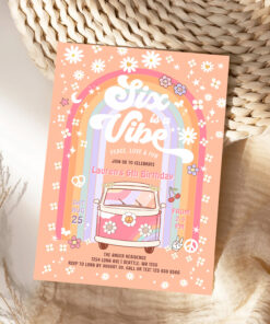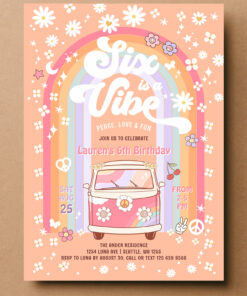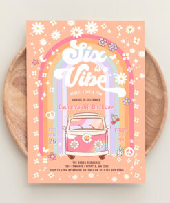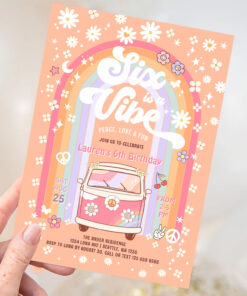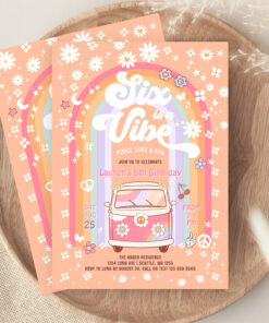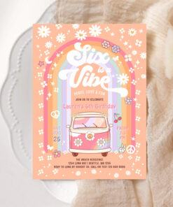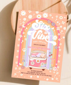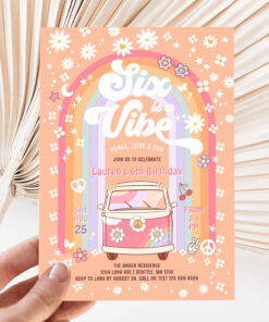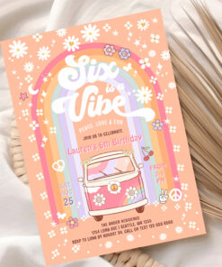 Six Is A Vibe Daisy Groovy Hippie 6th Birthday Invitation