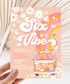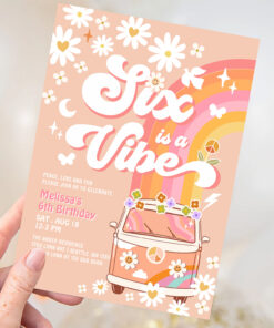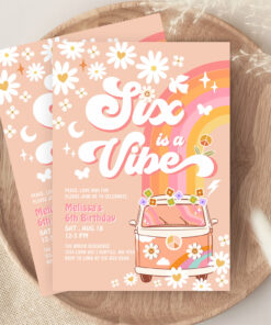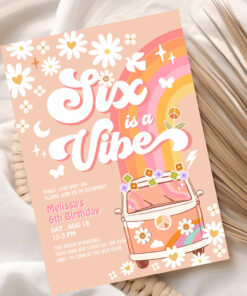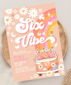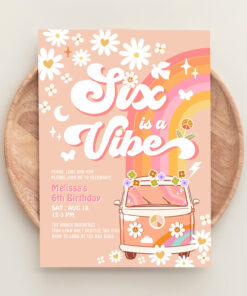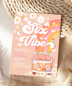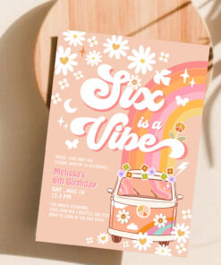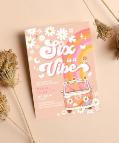 Six Is A Vibe Girl Pink Peach Daisy 6th Birthday Invitation - Related products