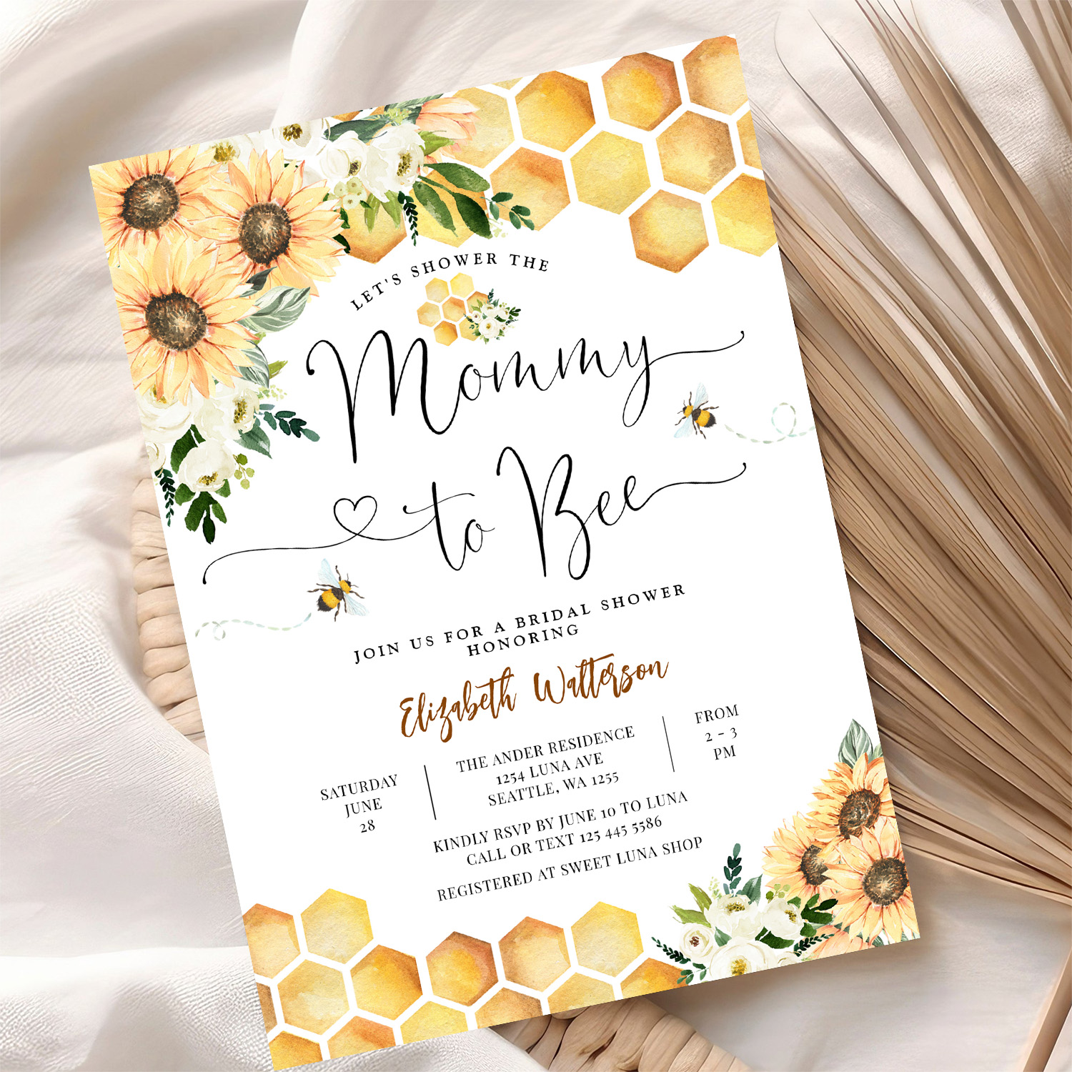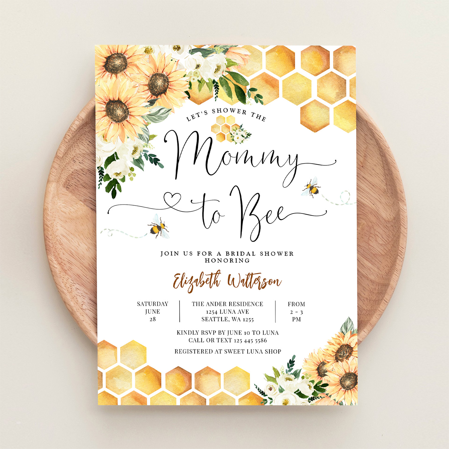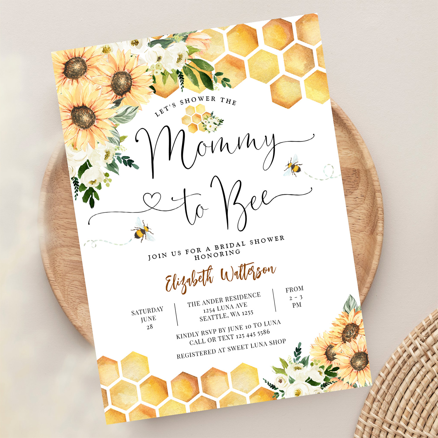 Sunflower Bee Mommy To Bee Baby Shower Invitation