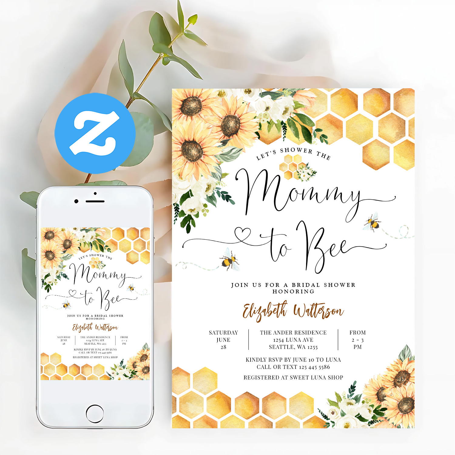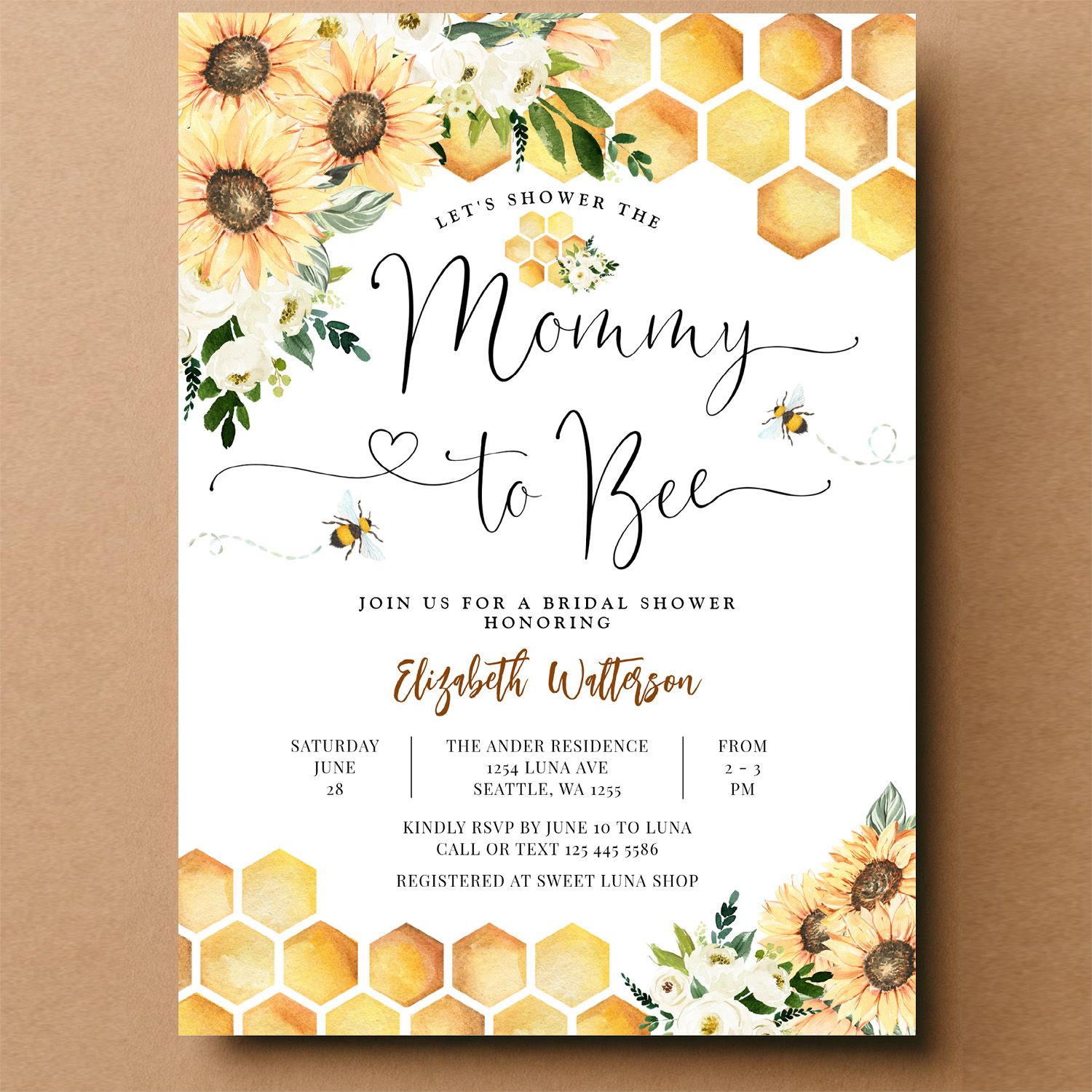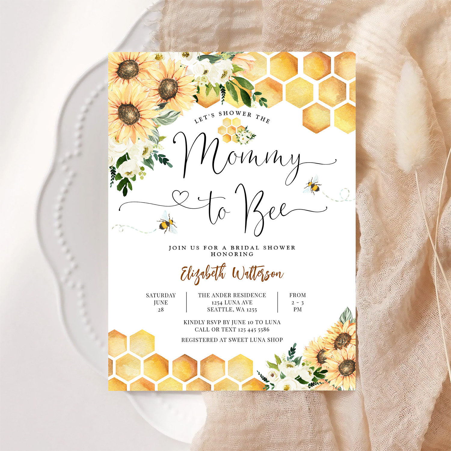 Sunflower Bee Mommy To Bee Baby Shower Invitation