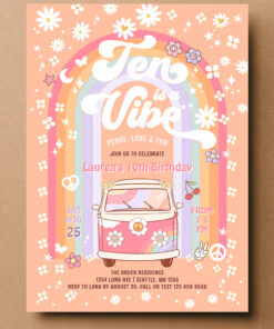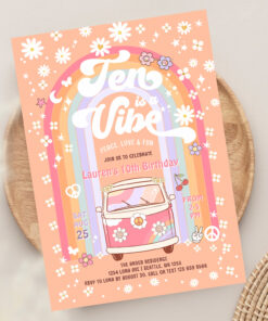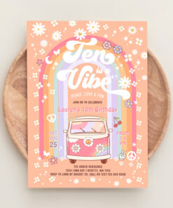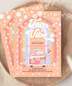 Ten Is A Vibe Daisy Groovy Van 10th Birthday Invitation - Related products