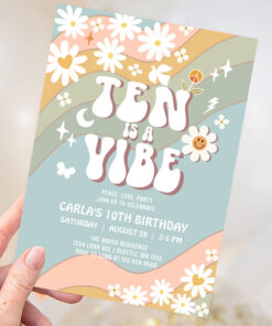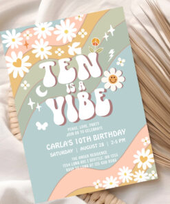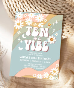 Ten Is A Vibe Daisy Hippie 70S Retro Birthday Invitation