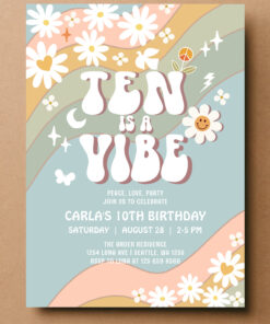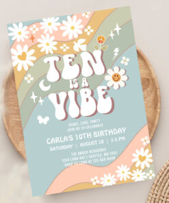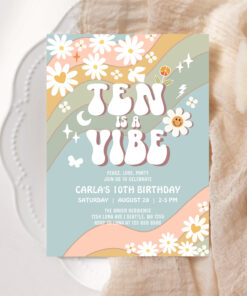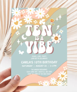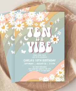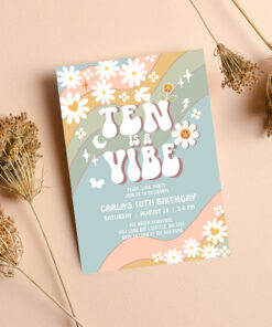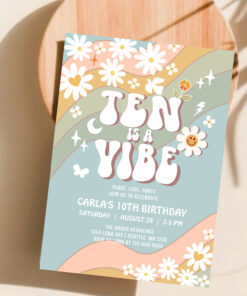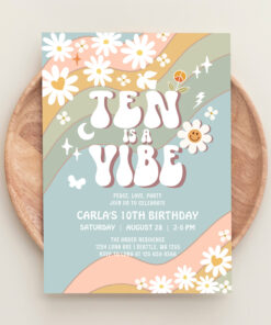 Ten Is A Vibe Daisy Hippie 70S Retro Birthday Invitation - Related products