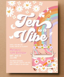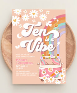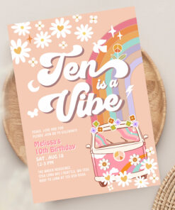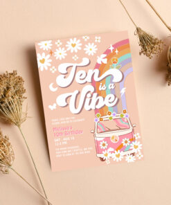 Ten Is A Vibe Groovy Daisy Rainbow 10th Birthday Invitation - Related products