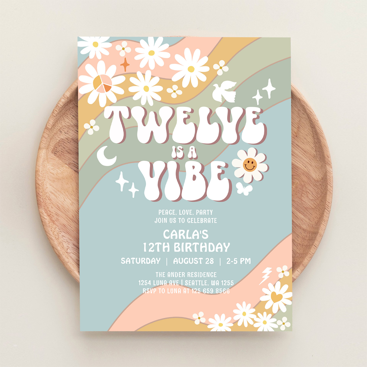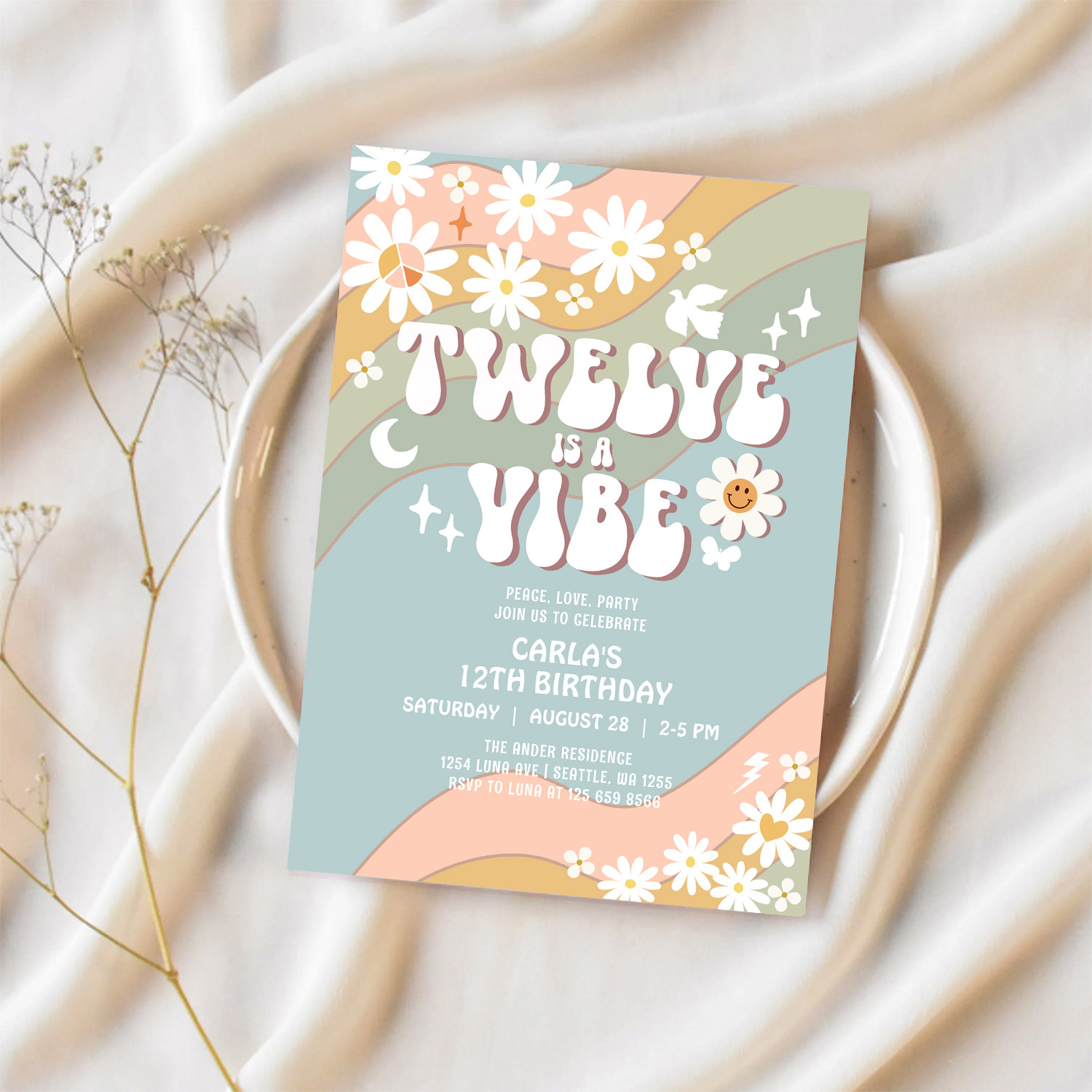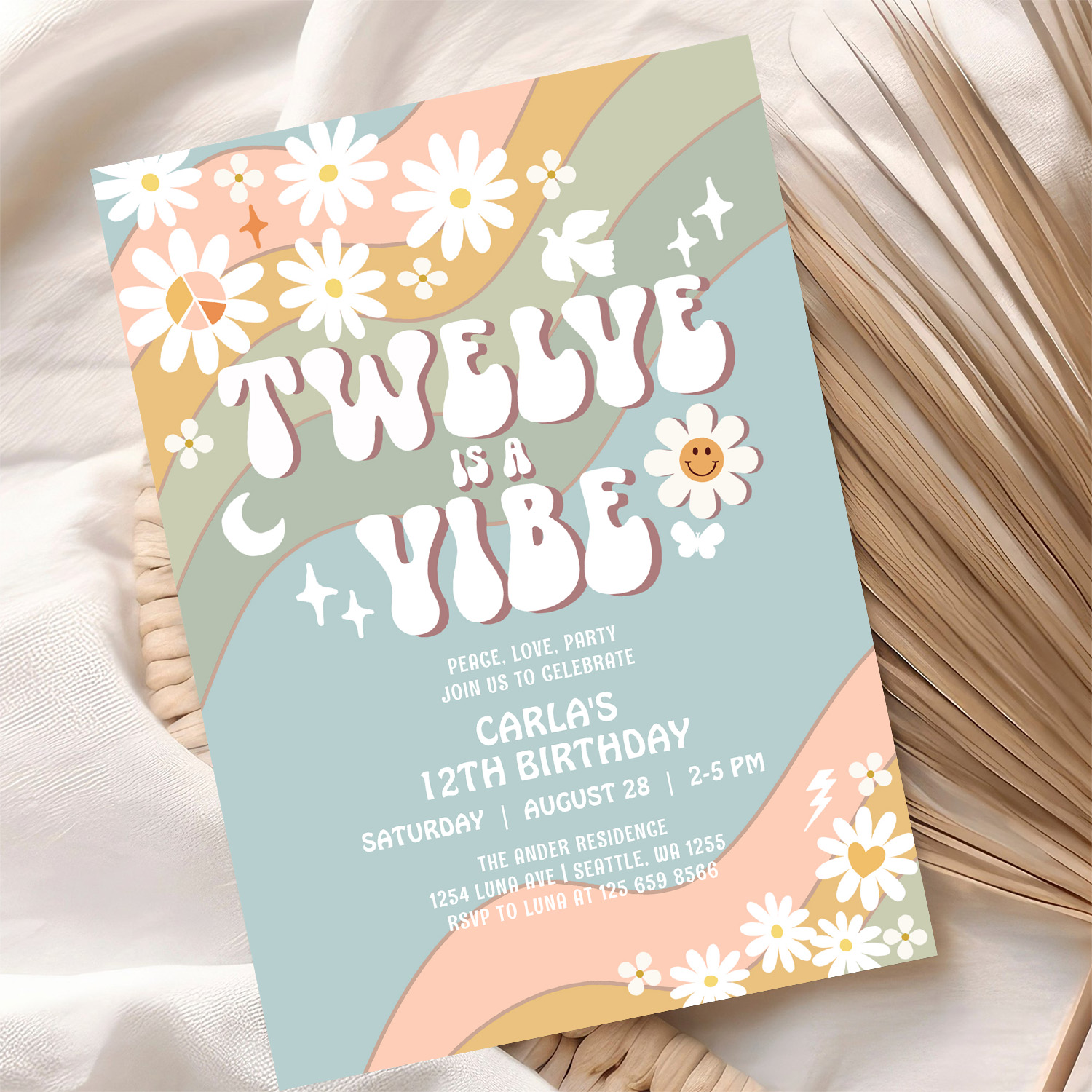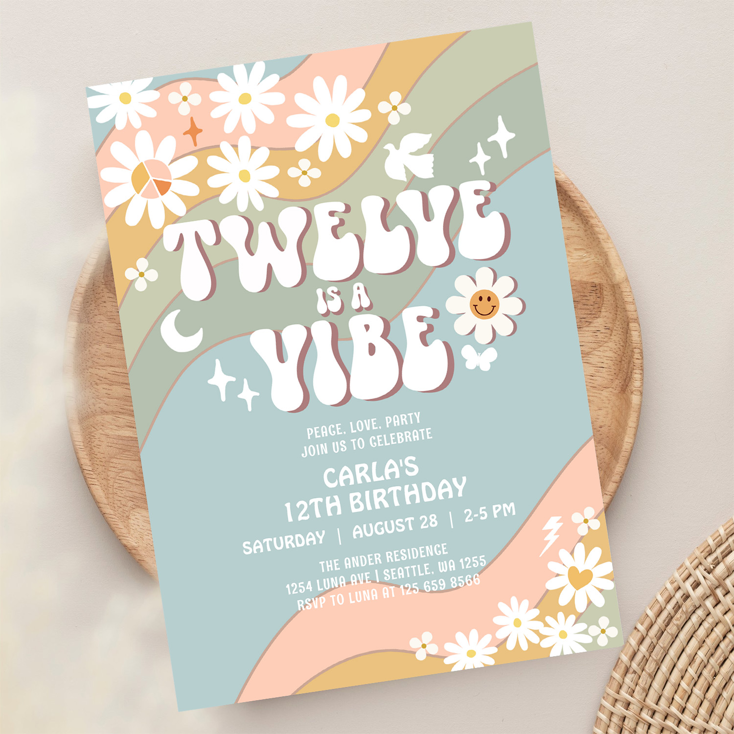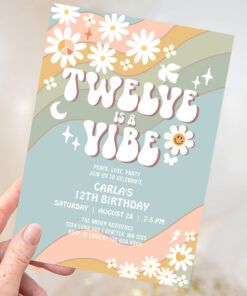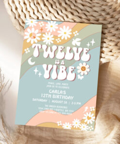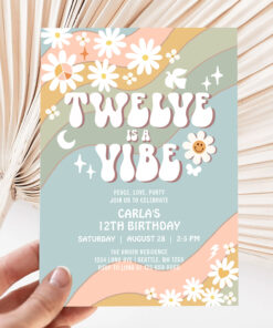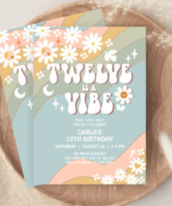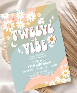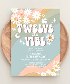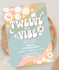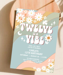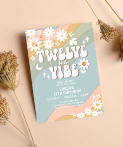 Twelve Is A Vibe Daisy Hippie 70S Retro Birthday Invitation