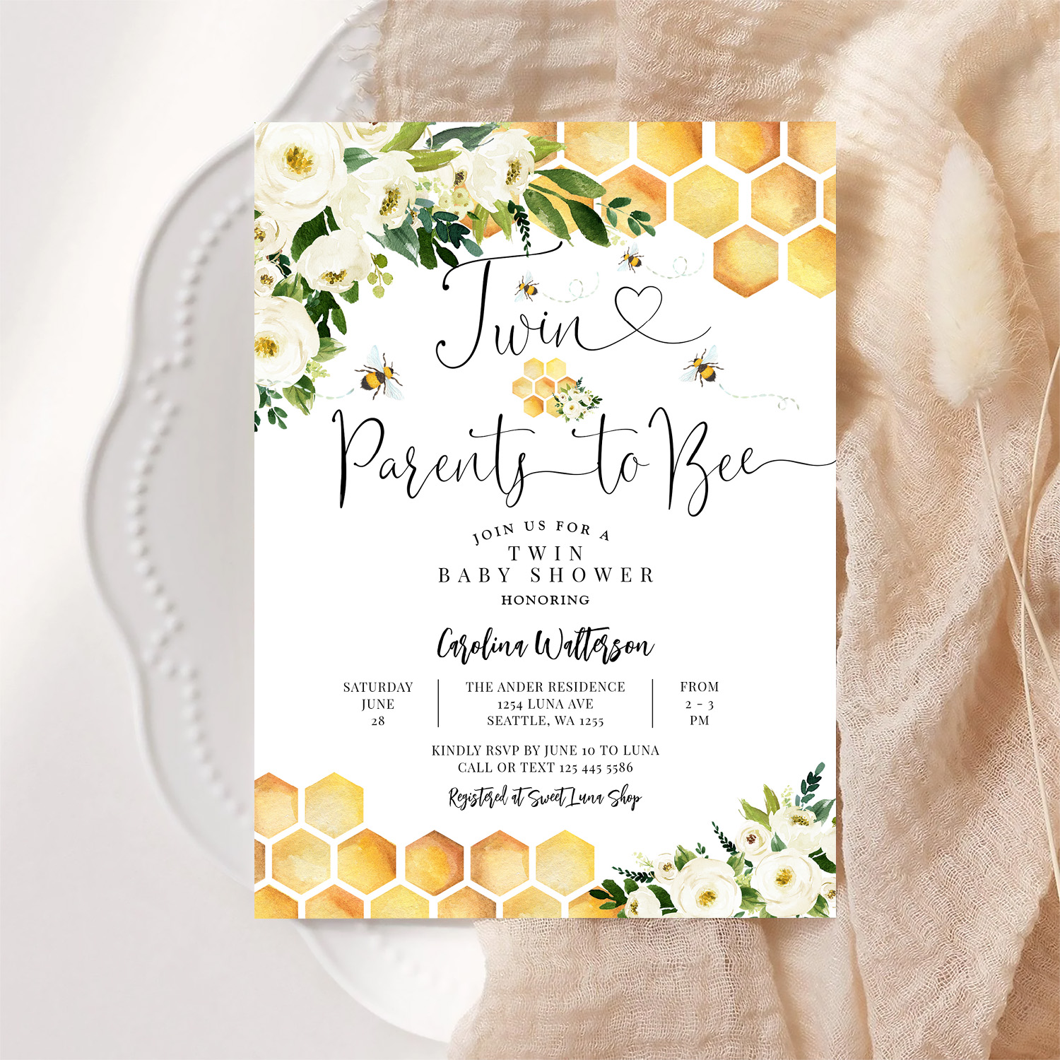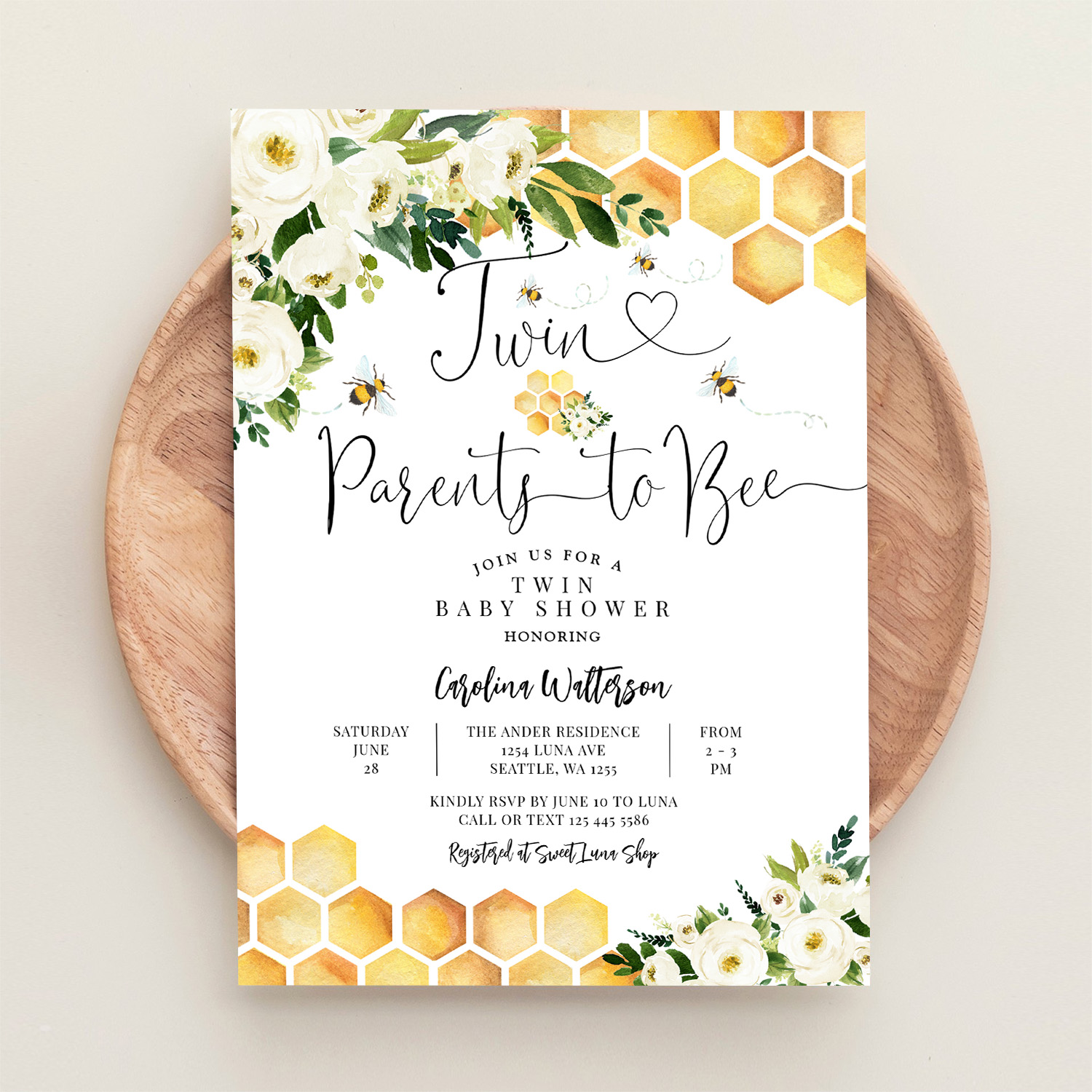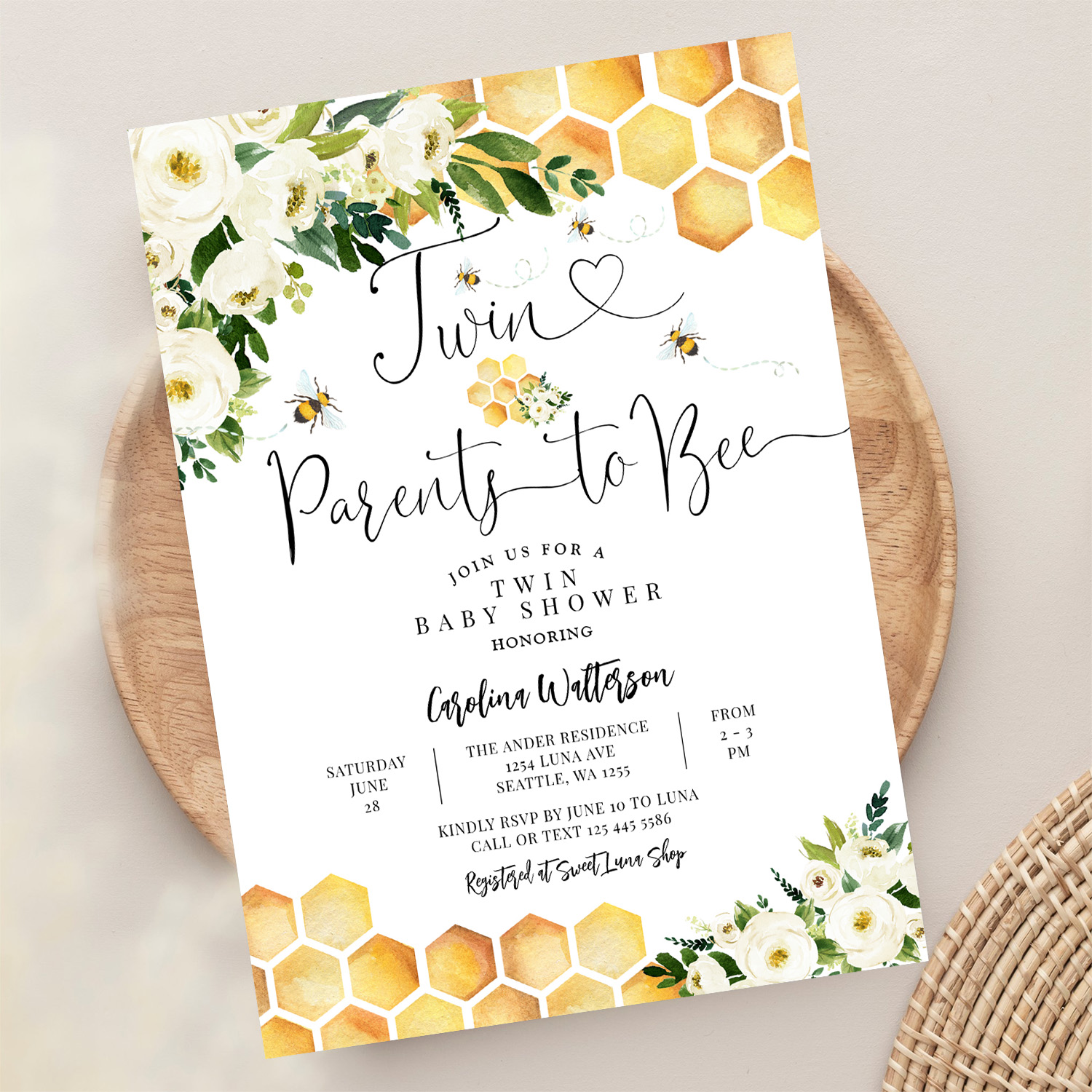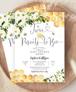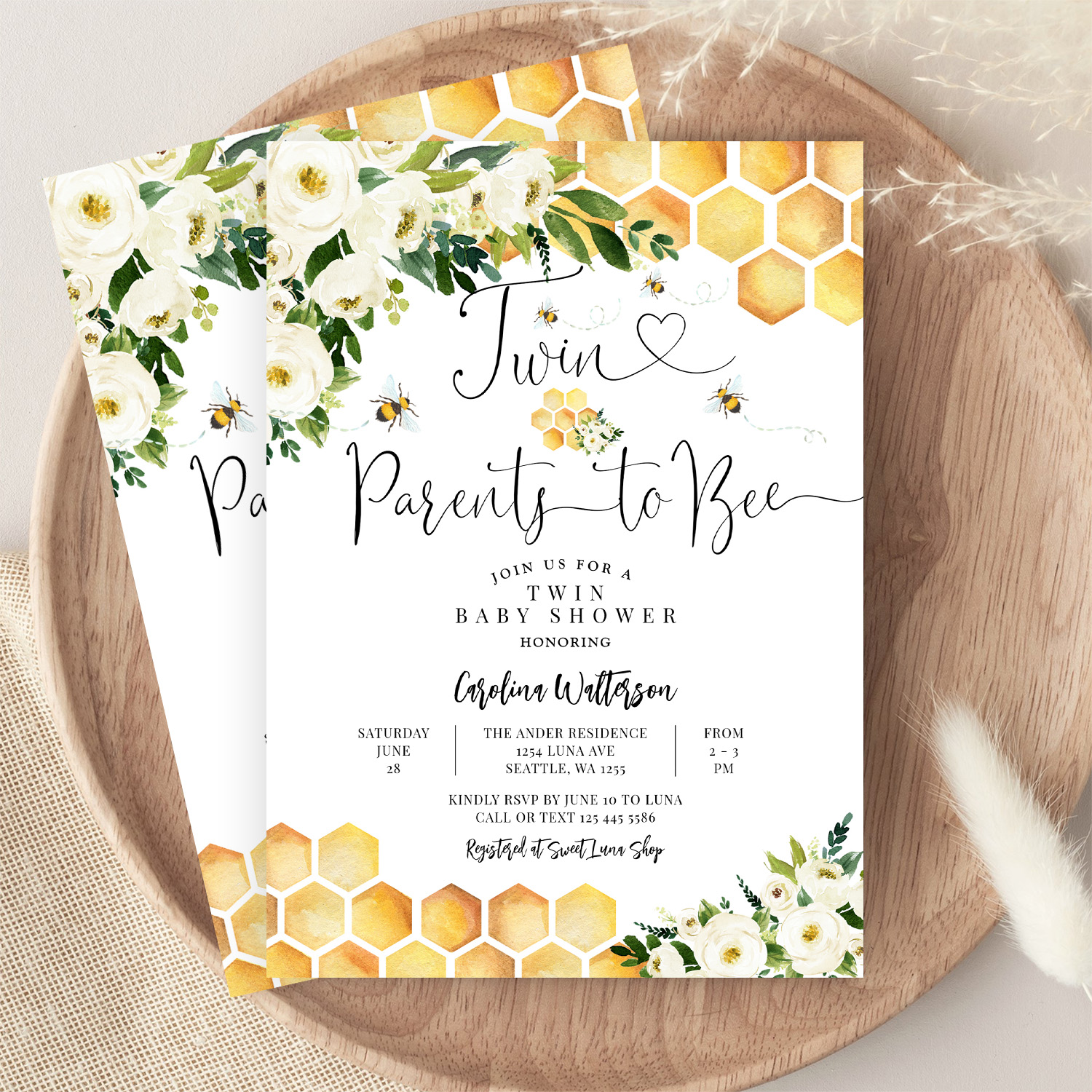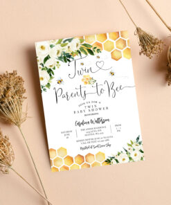 Twin Bee Parents To Gender Neutral Bee Baby Shower Invitation