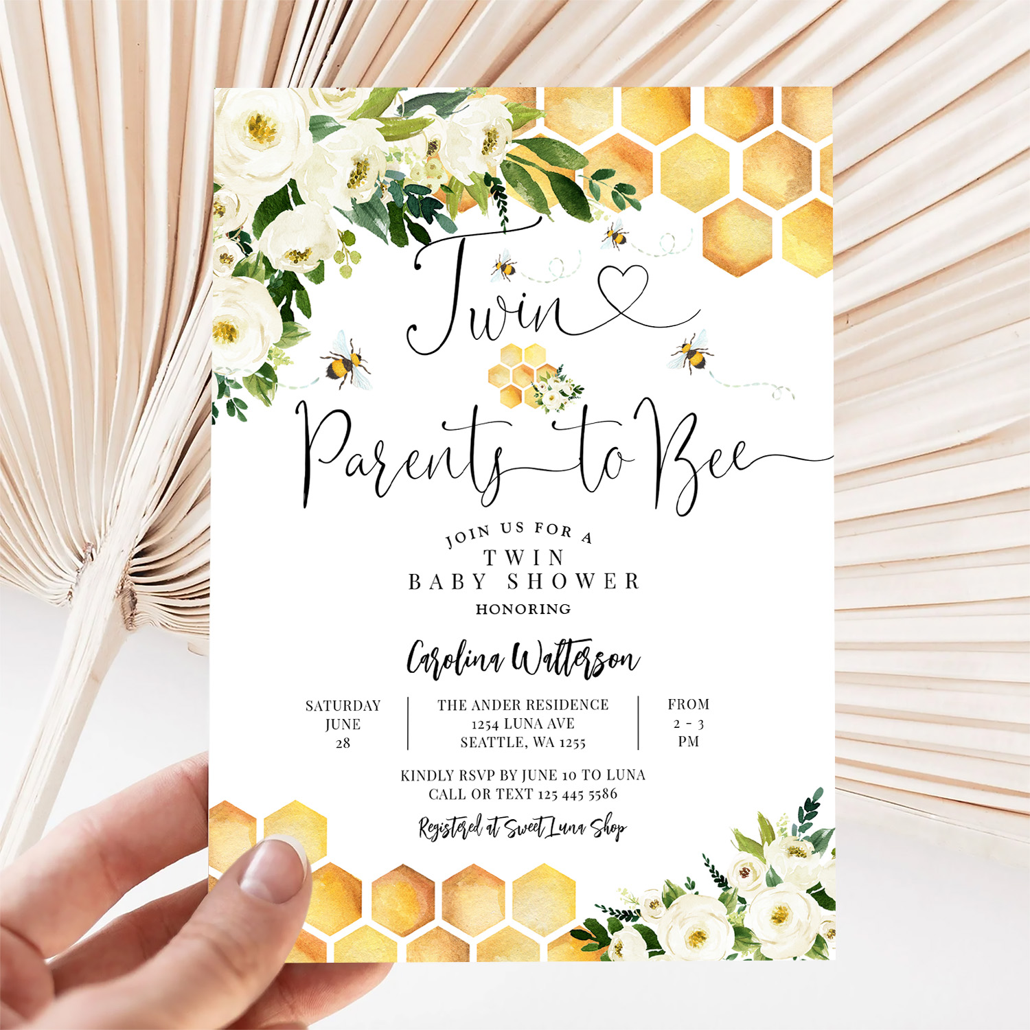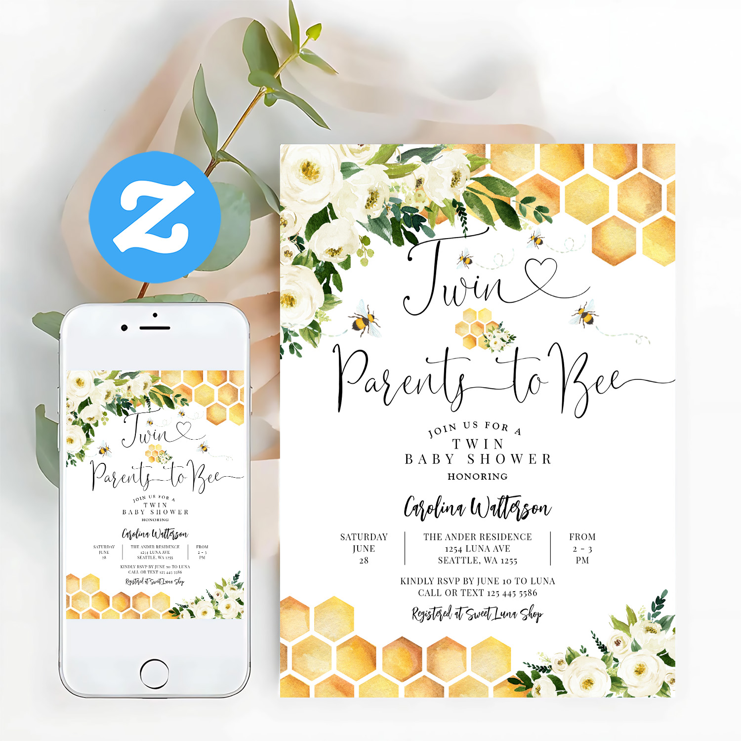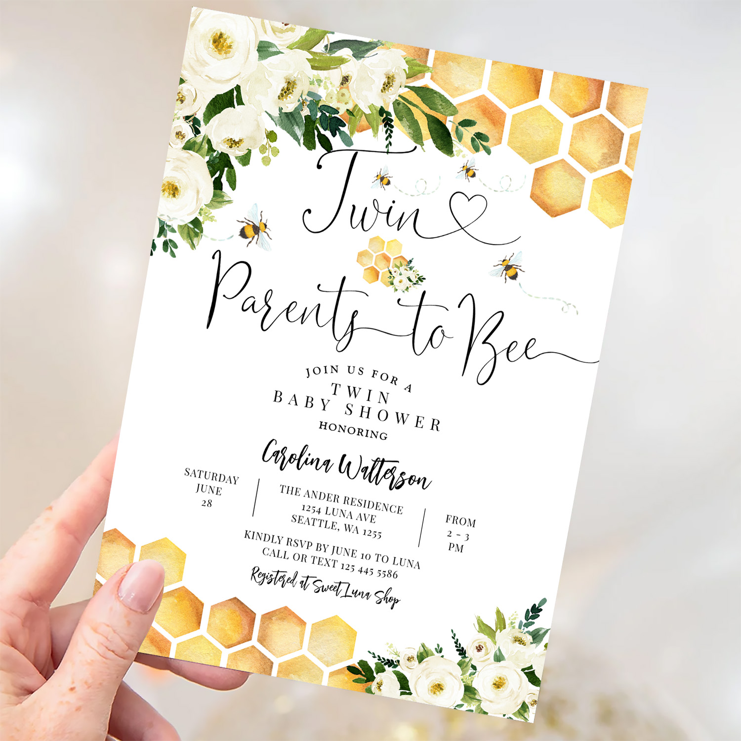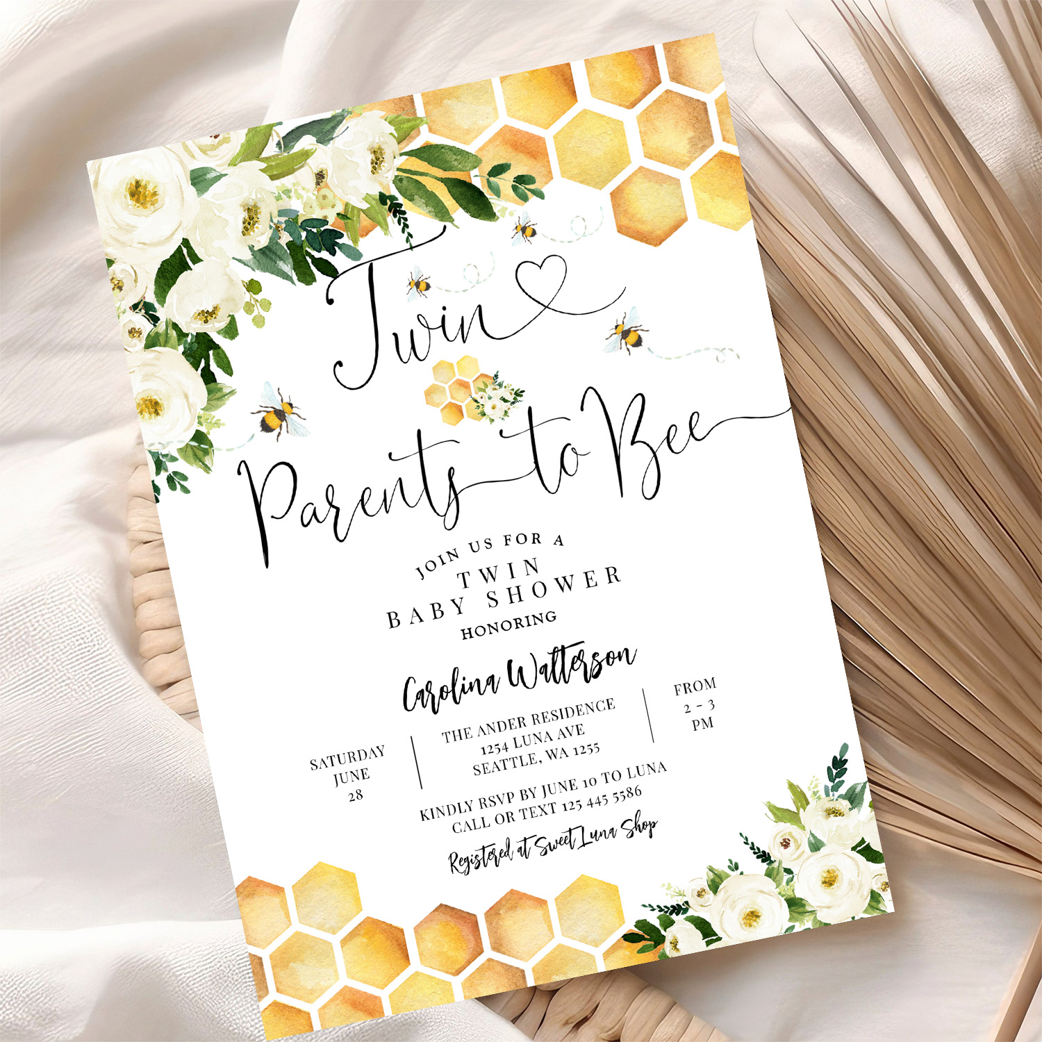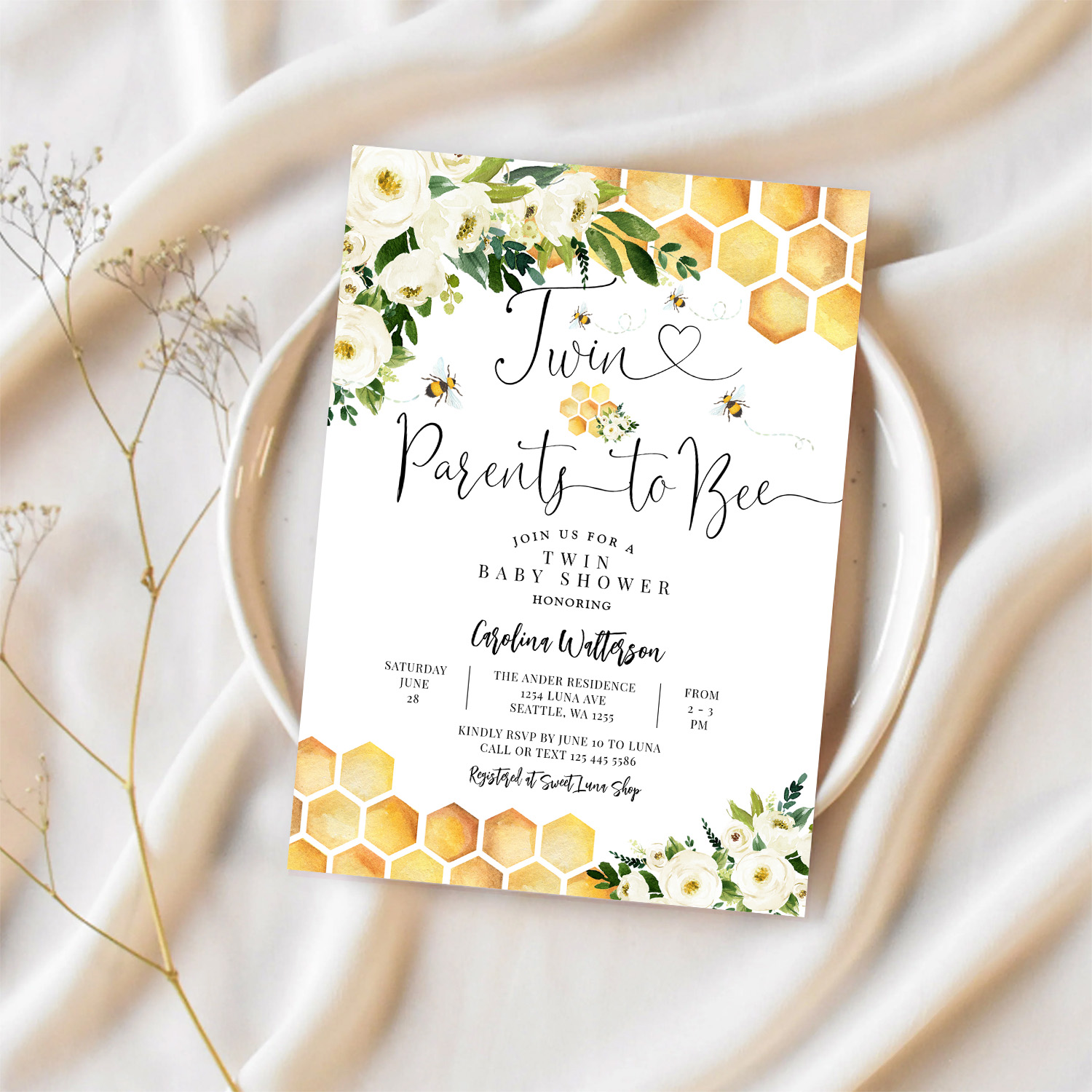 Twin Bee Parents To Gender Neutral Bee Baby Shower Invitation