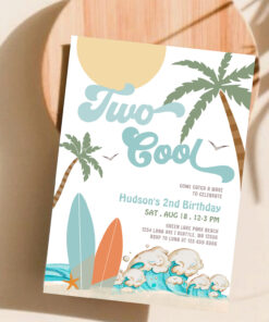 Two Cool Boy Surf Surfing 2nd Birthday Beach Party Invitation