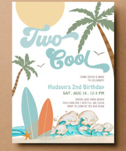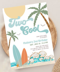 Two Cool Boy Surf Surfing 2nd Birthday Beach Party Invitation - Related products