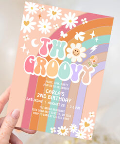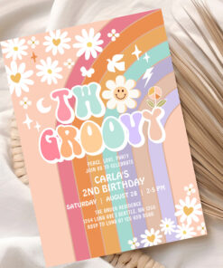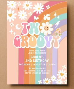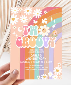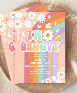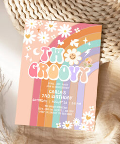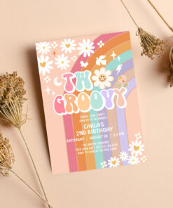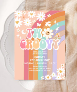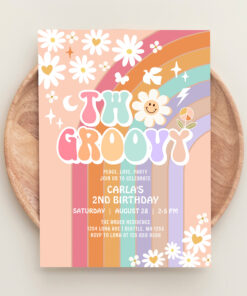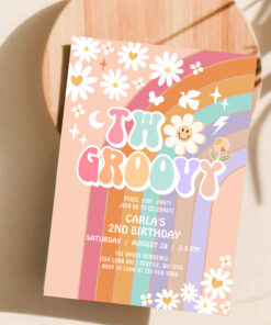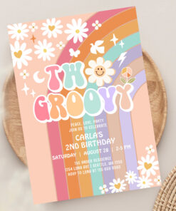 Two Groovy Daisy Hippie 70S Retro 1st Birthday Invitation - Related products