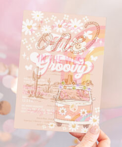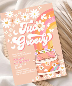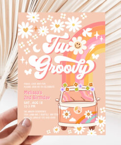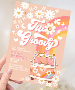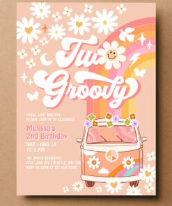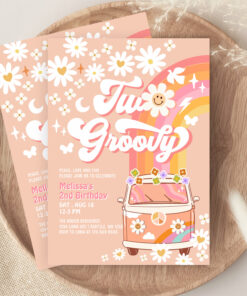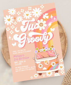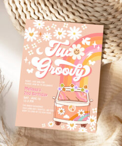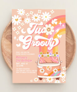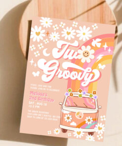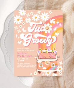 Two Groovy Girl Pink Peach Van Daisy 2nd Birthday Invitation - Related products