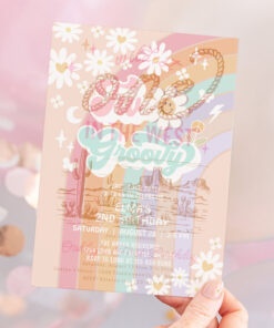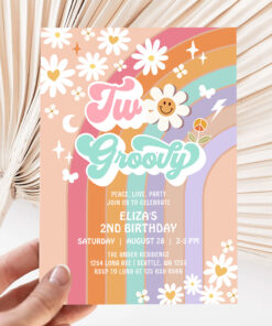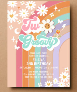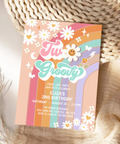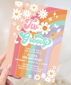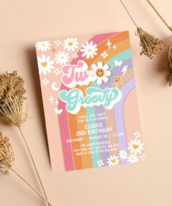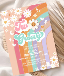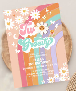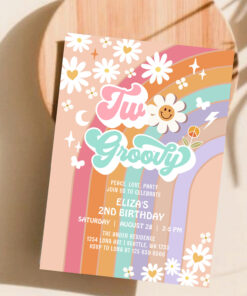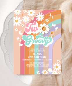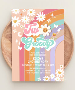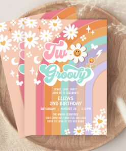 Two Groovy Hippie Daisy Rainbow 2nd Birthday Invitation - Related products