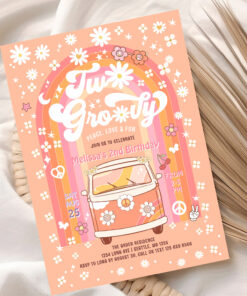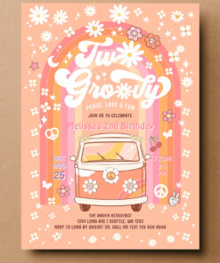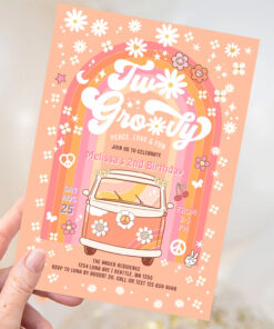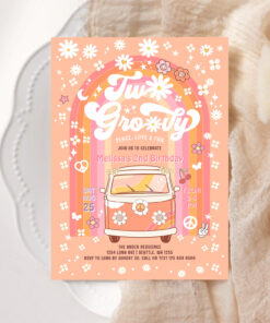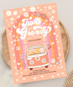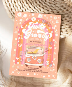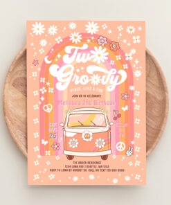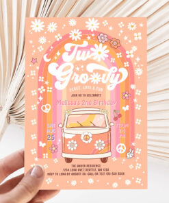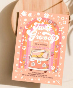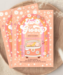 Two Groovy Van Daisy Hippie 70S 2nd Birthday Invitation