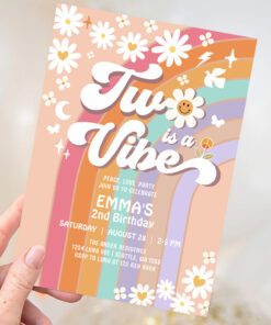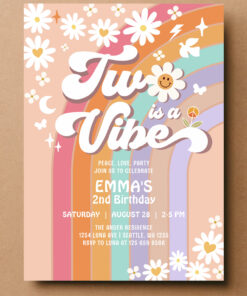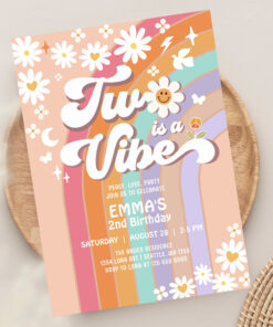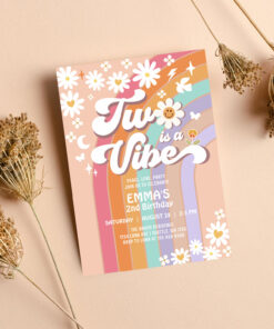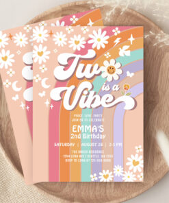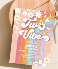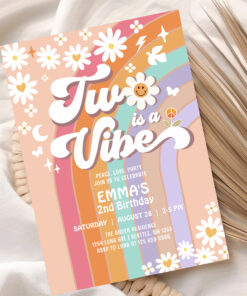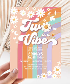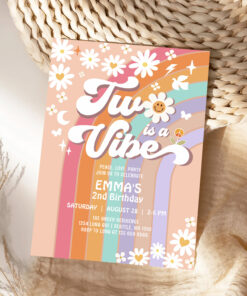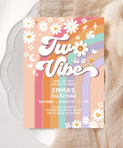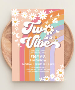 Two Is A Vibe 2nd Groovy Rainbow Birthday Invitation - Related products