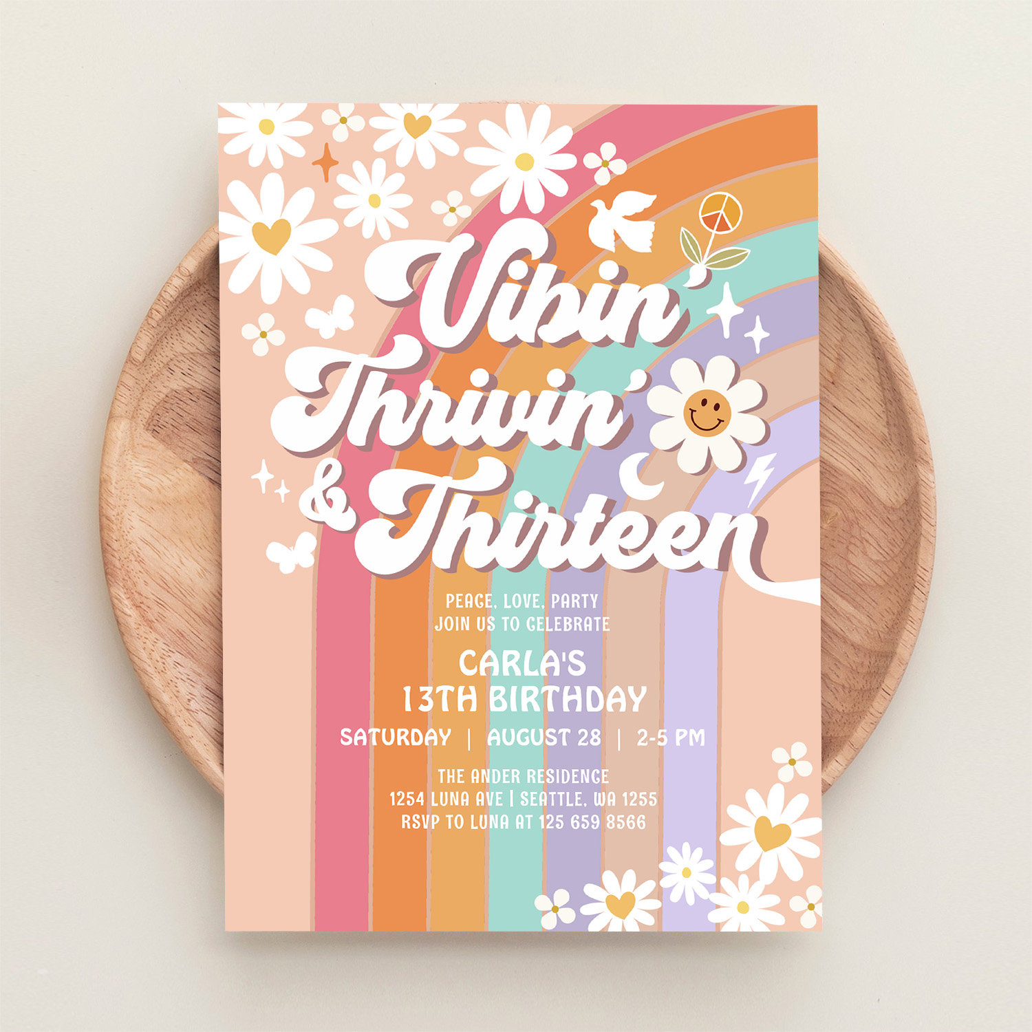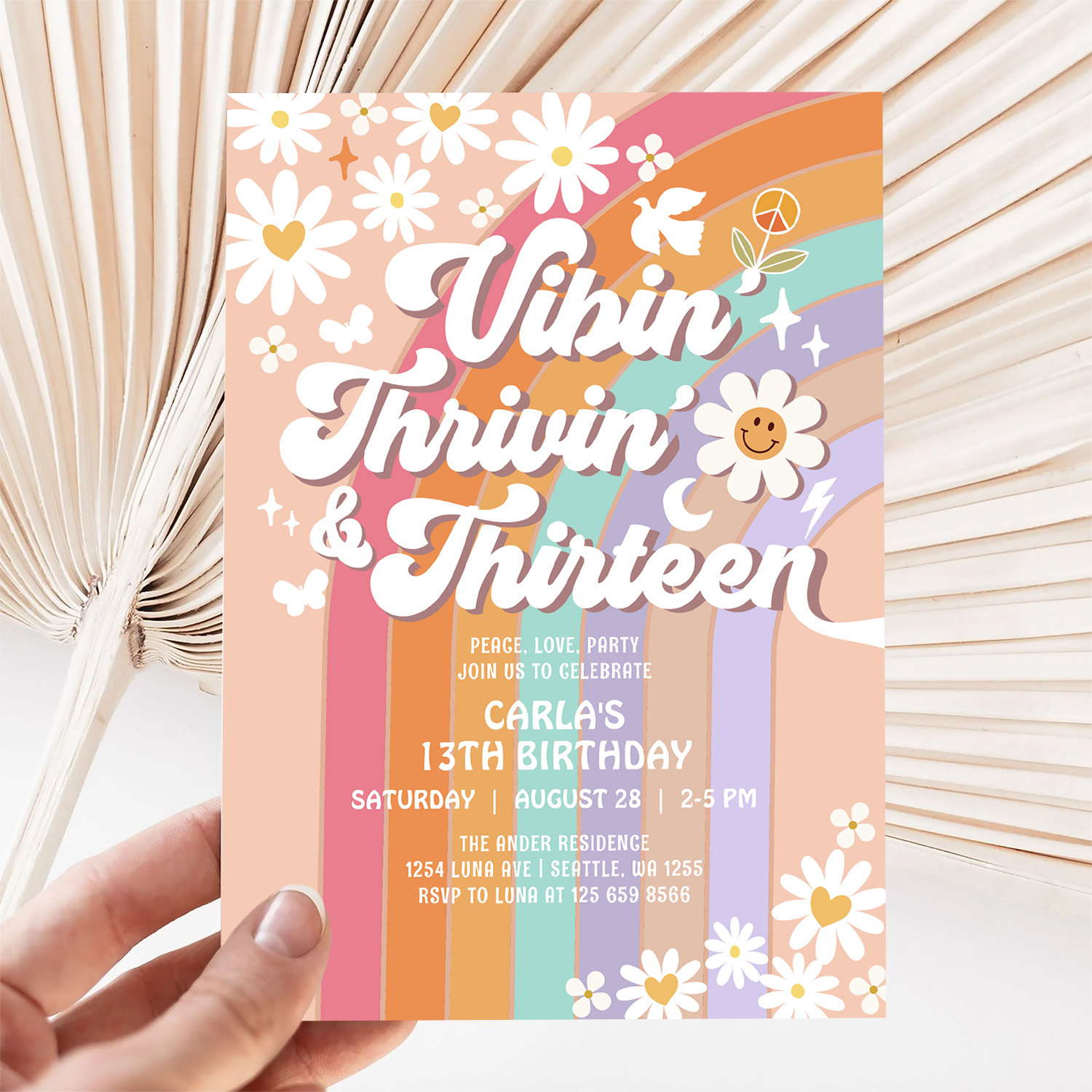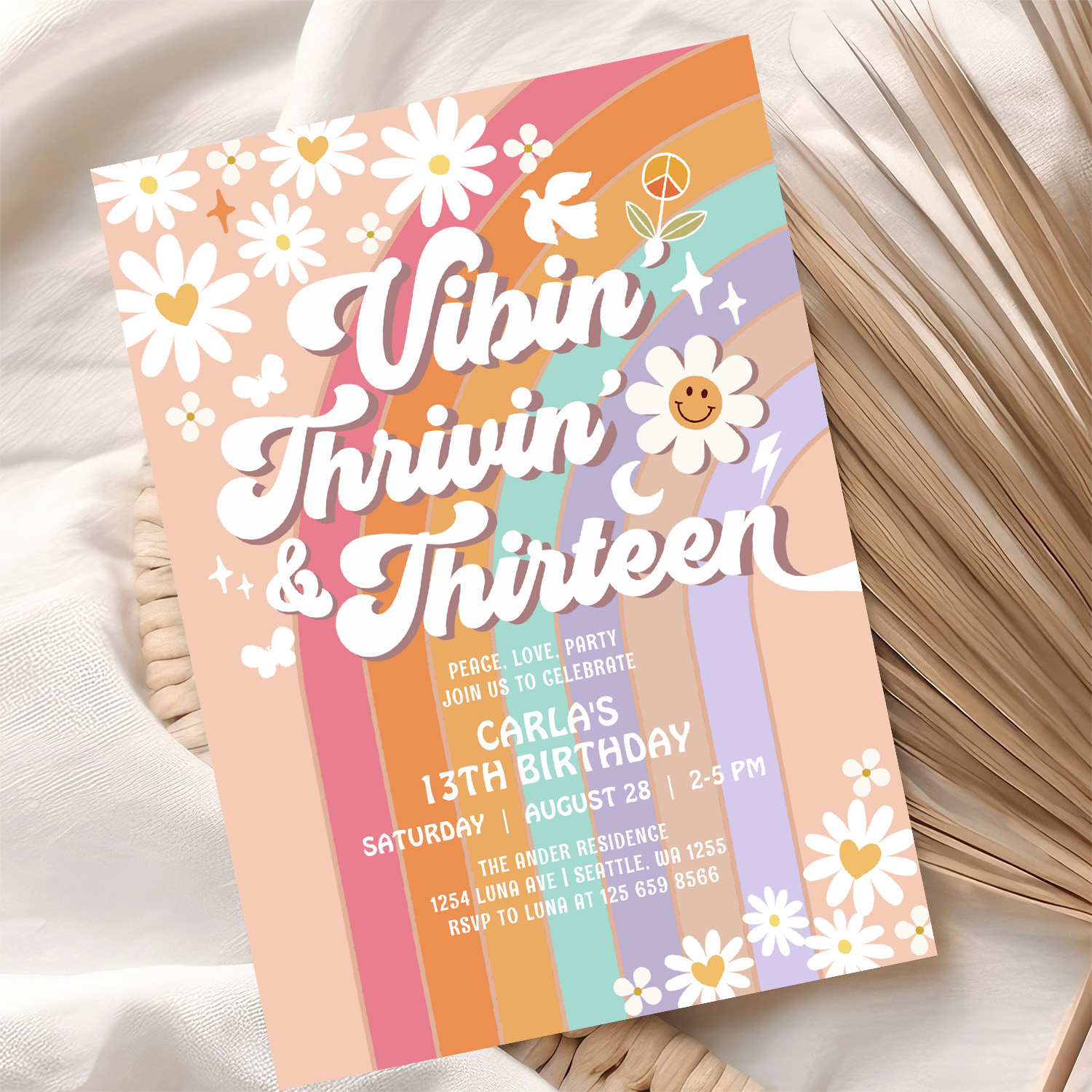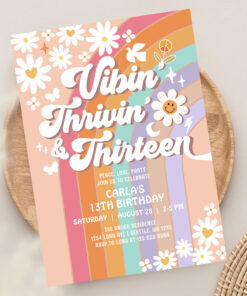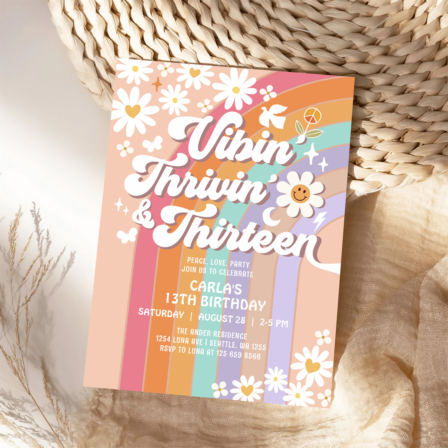 Vibin Thrivin And Thirteen Hippie 70S Birthday Invitation